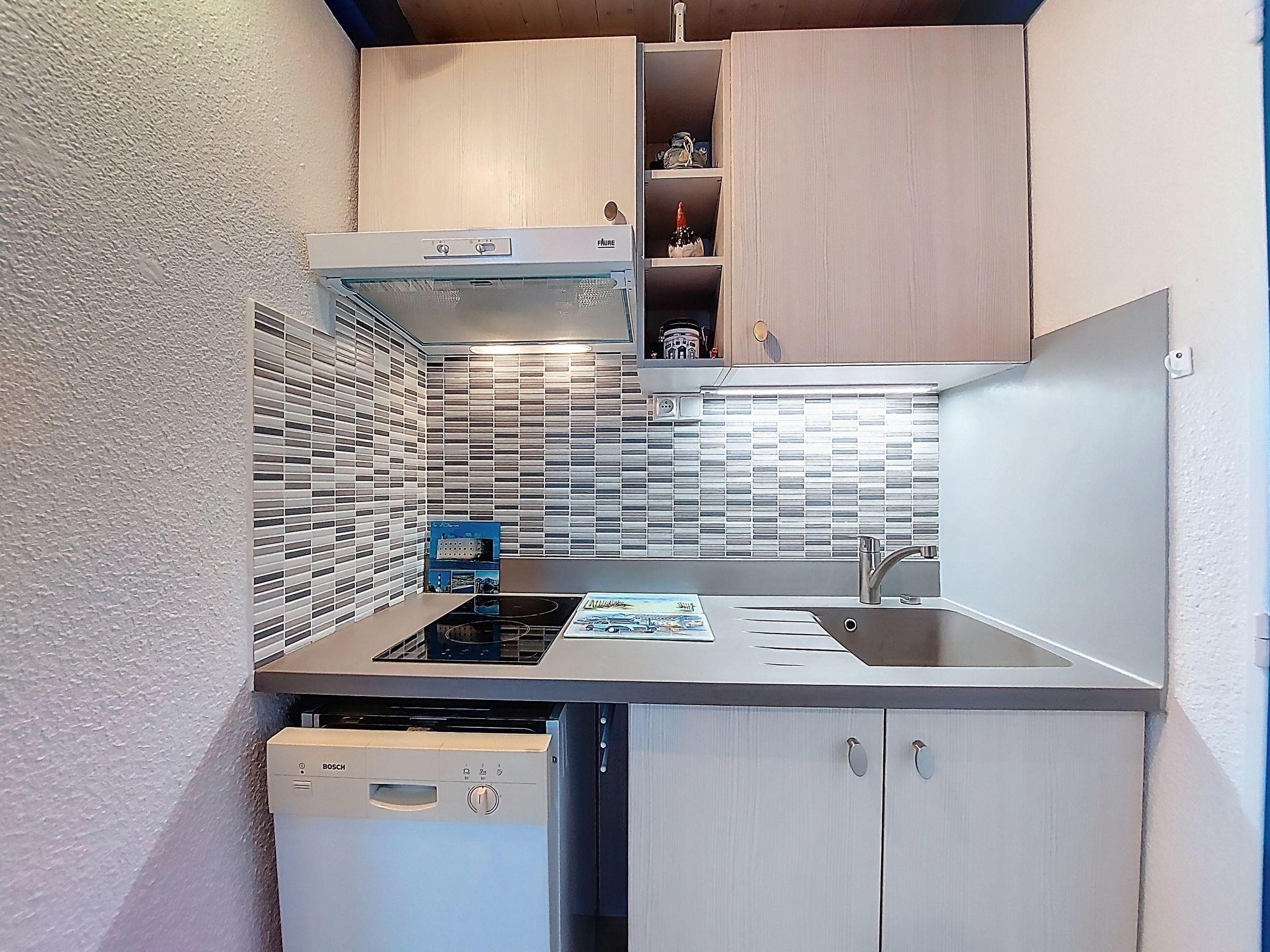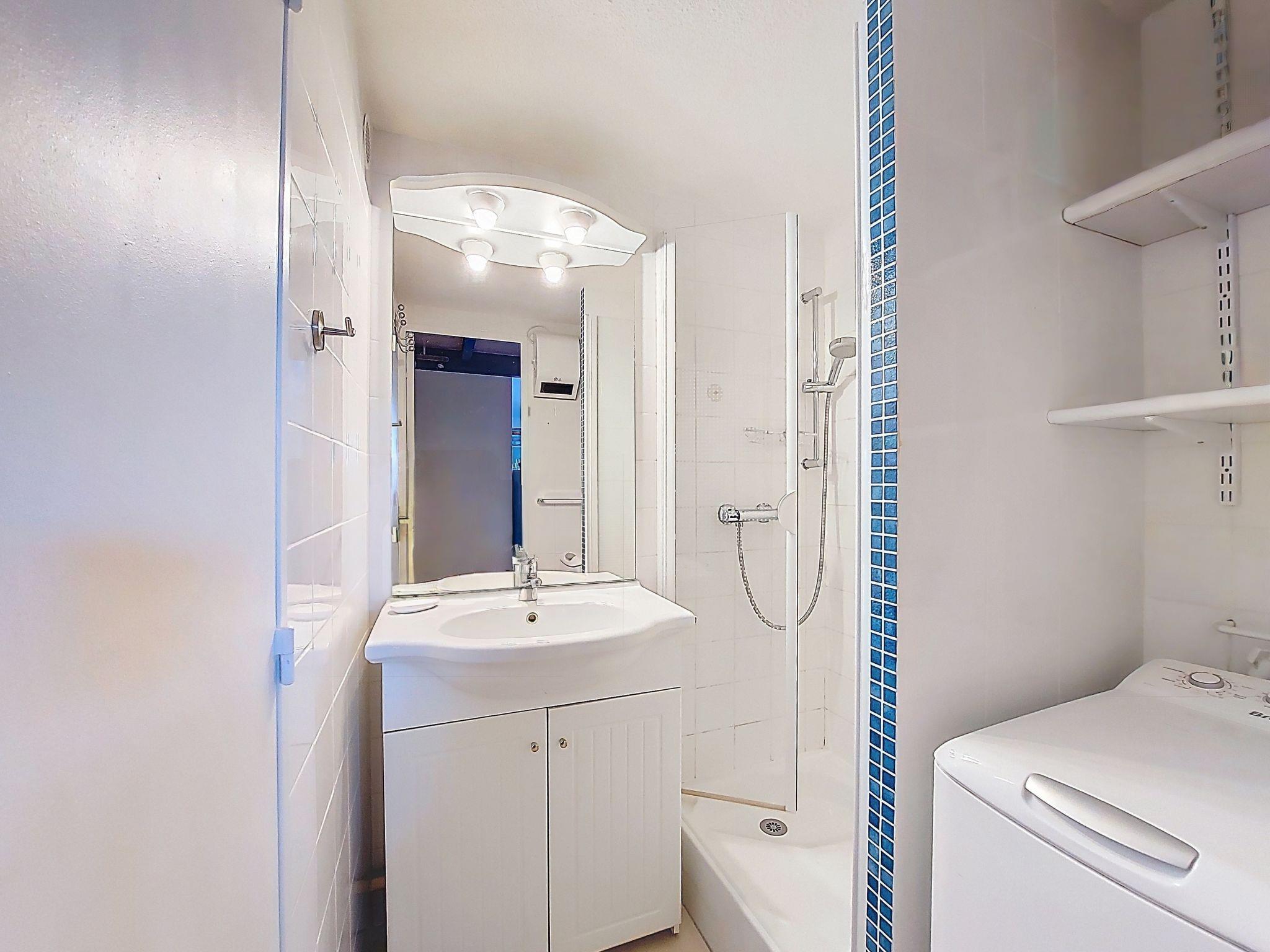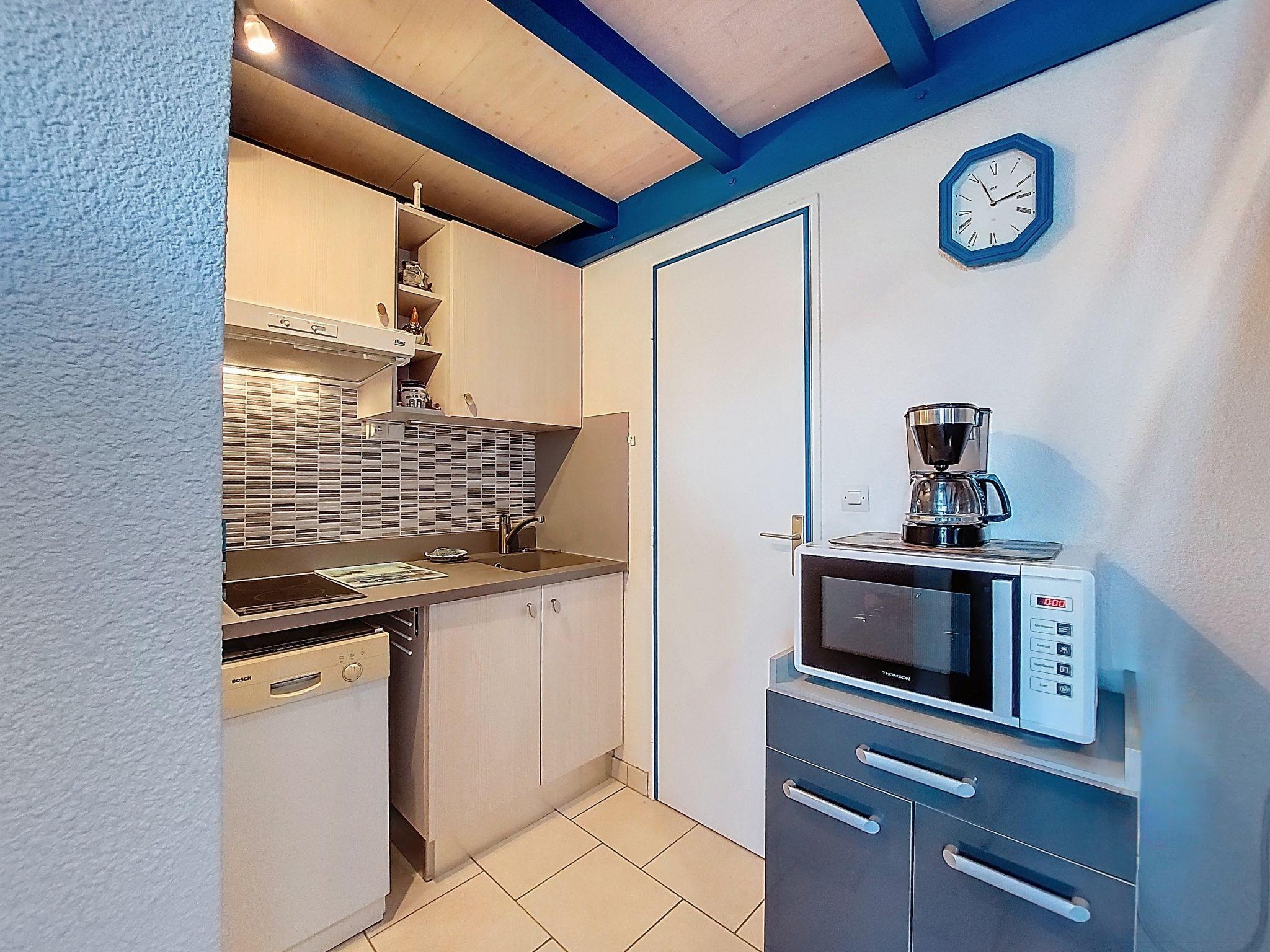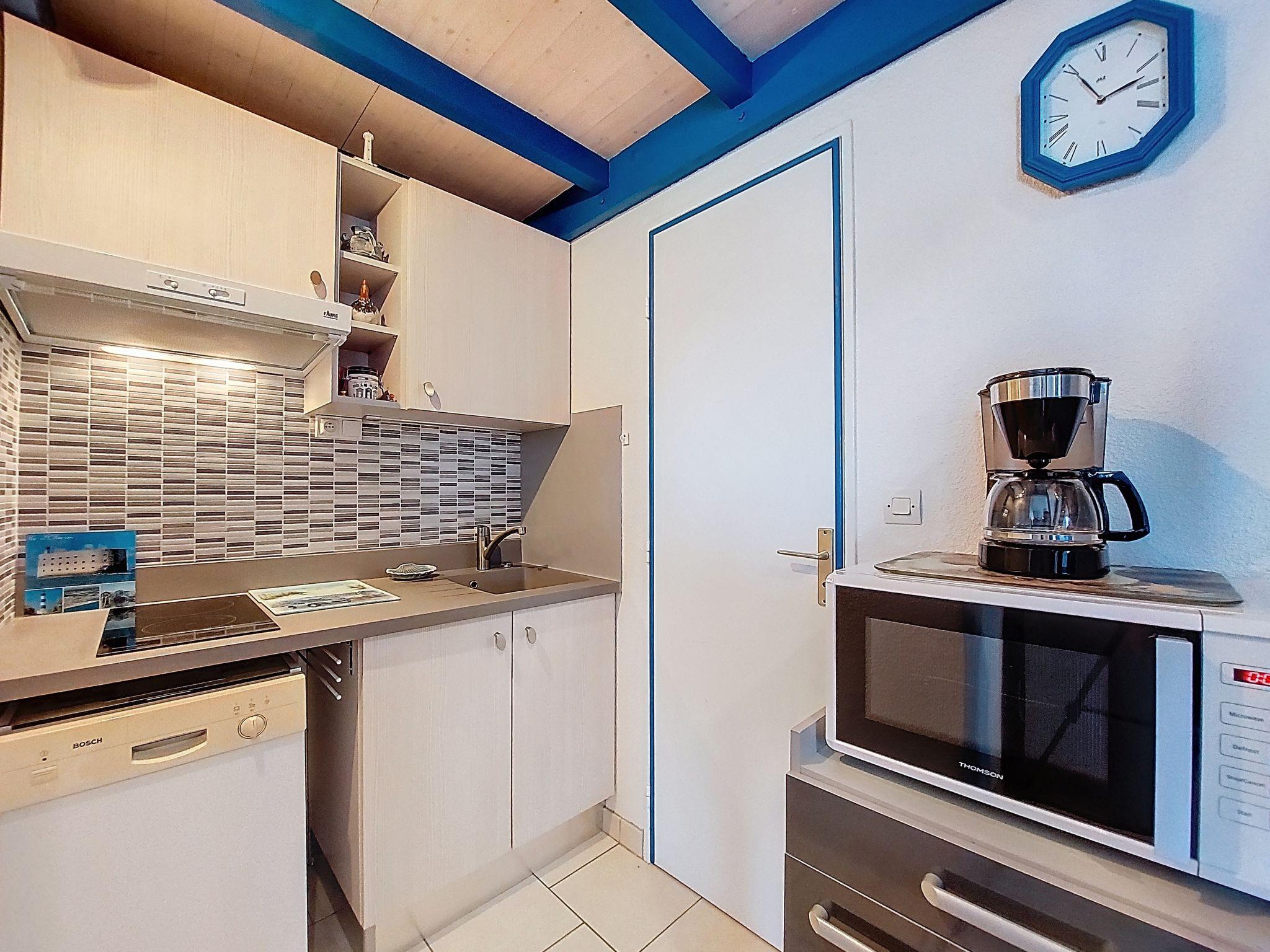 3-room terraced house 34 m2 on 2 levels. Living/dining room with dining nook and TV (flat screen). Exit to the terrace. 1 room with 1 french bed (1 x 140 cm, length 190 cm). Kitchenette (mini-oven, dishwasher, 2 ceramic glass hob hotplates, toaster, kettle, microwave, freezer, electric coffee machine). Shower/WC. Electric heating. Upper floor: gallery with sloping ceilings with 2 beds (90 cm, length 190 cm). 1 small room with sloping ceilings with rooflight with 1 bed (90 cm, length 190 cm). Large terrace 70 m2, south facing position and west facing position. Terrace furniture, barbecue electric barbecue. Facilities: washing machine, iron, hair dryer. Internet (WiFi, extra). Parking space n 139. Please note: smoke alarm. Offer by a private individual according to Art. 155, IV of CGI.