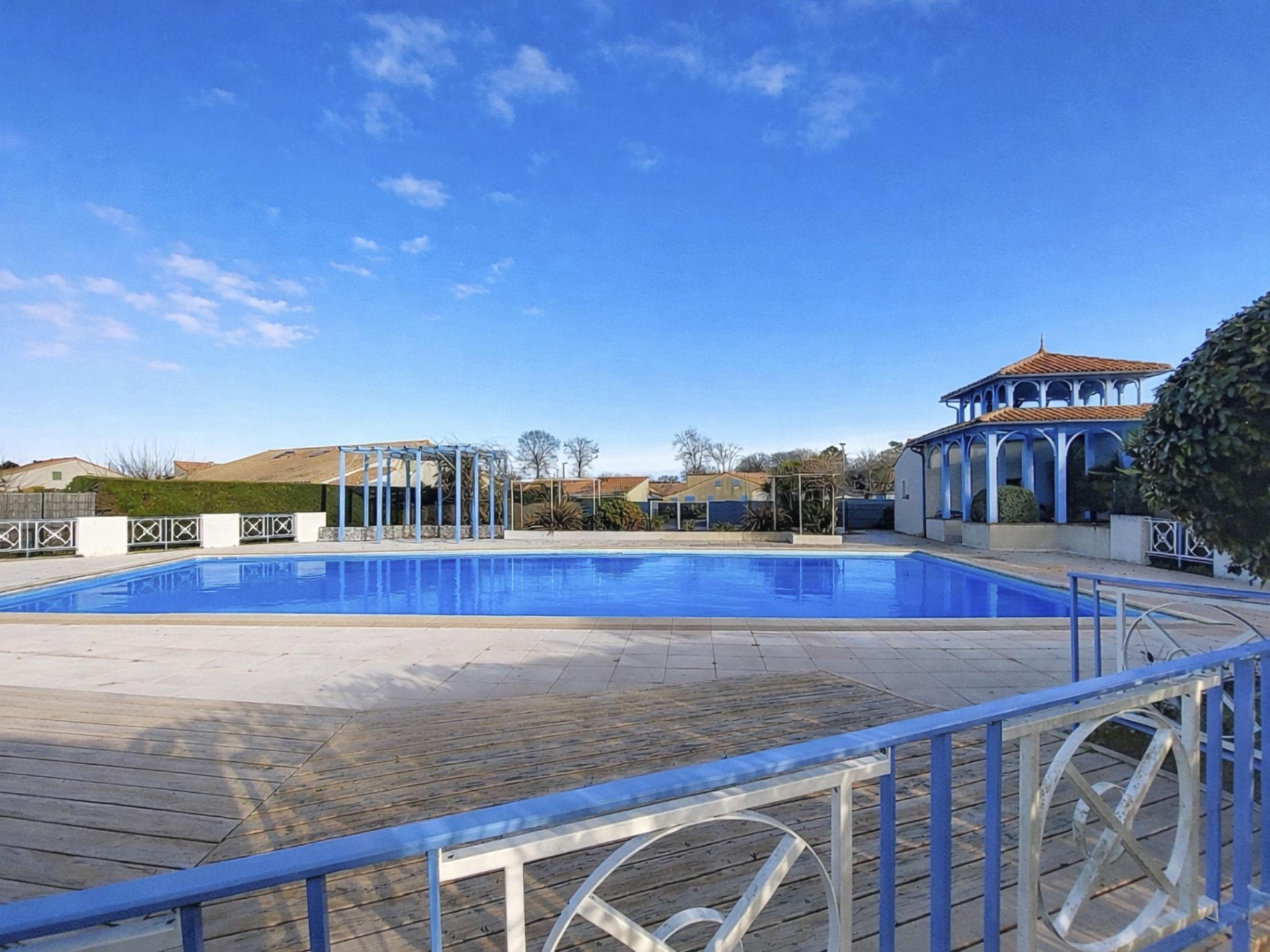 Les Mathes: Large residence "Le Clos des Chênes". 160 houses in the residence. On the outskirts, 1.6 km from the centre of Les Mathes, 4.5 km from the sea, 4.5 km from the beach. For shared use: property, trees, natural pond, swimming pool fenced (seasonal availability: 01.Jul. - 30.Aug.). Tennis, table tennis, boccia, volleyball, children's playground, parking (limited number of spaces). Shop 1.6 km, grocery 1.3 km, supermarket 1.3 km, restaurant 1.6 km, bakery 1.6 km, café 1.6 km, bicycle rental 1.1 km, bus stop "Montsouci" 50 m, railway station "Royan" 19 km, sandy beach "Plage de La Palmyre" 4.5 km, thermal baths "Thalassothérapie Thalazur Royan" 20 km. Sports harbour 4.5 km, golf course (9 hole) 6 km, surf school 3.5 km, riding stable 1.5 km, cycle lane 50 m. Nearby attractions: Centre Poney Découverte 300 m, Karting Les Mathes 1 km, Parc attractions LunaPark (Juillet-Août) 1.5 km, Zagal Cabaret équestre 1.5 km, Hippodrome Royan Atlantique - La Palmyre 4 km, Zoo de La Palmyre 4.5 km. The keys‘ handover takes place by the agency Interhome in La Palmyre, 4 km.
