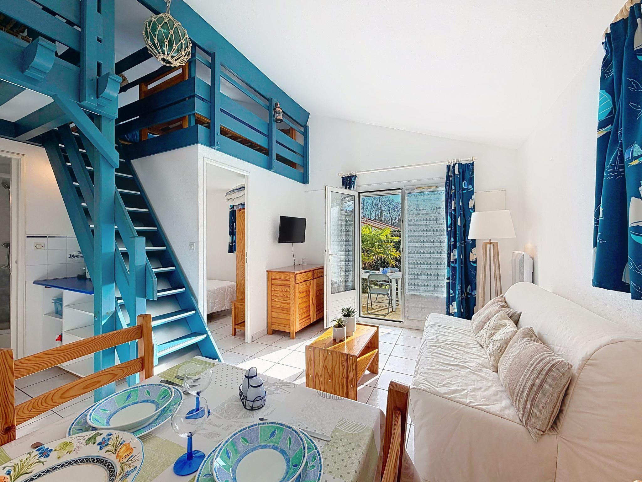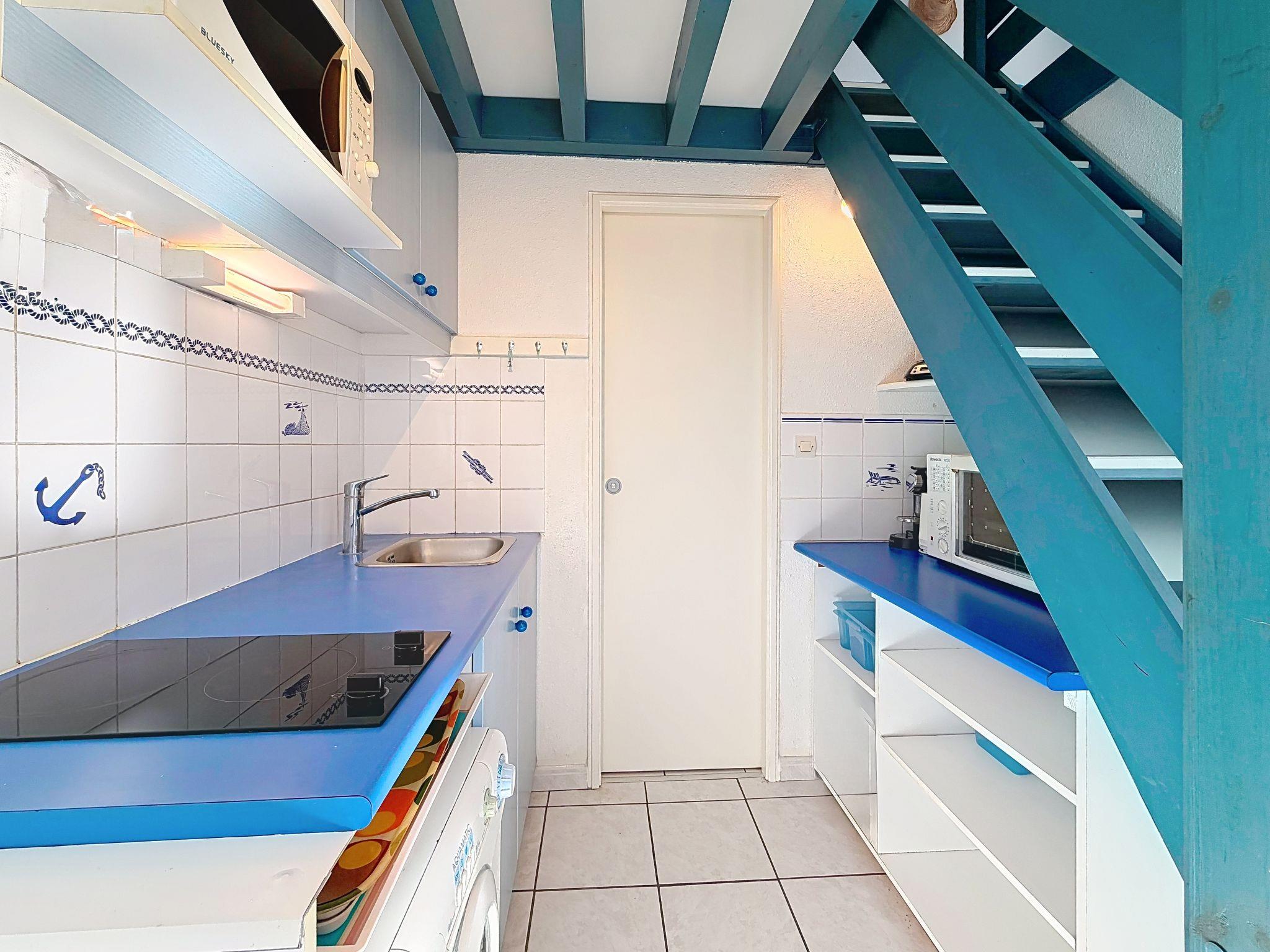 2-room terraced house 34 m2 on 2 levels, south-east facing position. Living/dining room with TV (flat screen), fan. Exit to the garden. 1 room with 1 french bed (1 x 140 cm, length 190 cm). Kitchenette (2 hot plates, toaster, kettle, freezer, electric coffee machine, combination microwave). Shower/WC. Electric heating. Upper floor: 1 open room with sloping ceilings with 2 beds (90 cm, length 190 cm). Patio 45 m2, south facing position and, east facing position. Terrace furniture, box-room. Facilities: Internet (WiFi, extra). Parking space n 118 (1 car). Please note: maximum 1 pet/ dog allowed. Smoke alarm. Offer by a private individual according to Art. 155, IV of CGI.