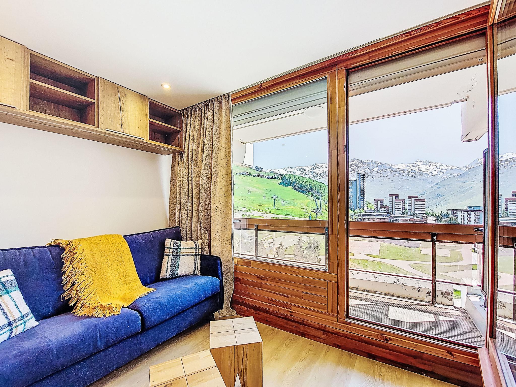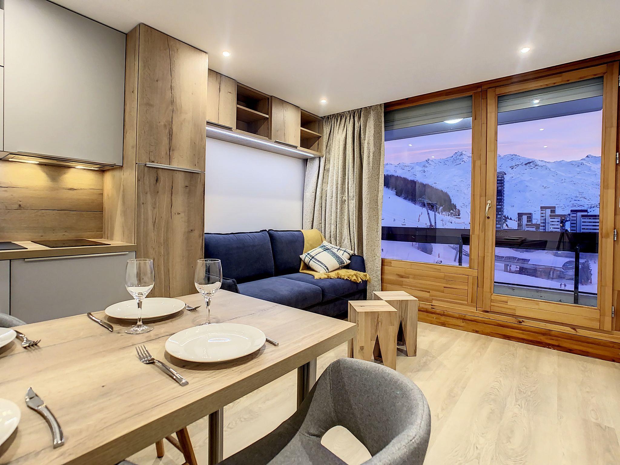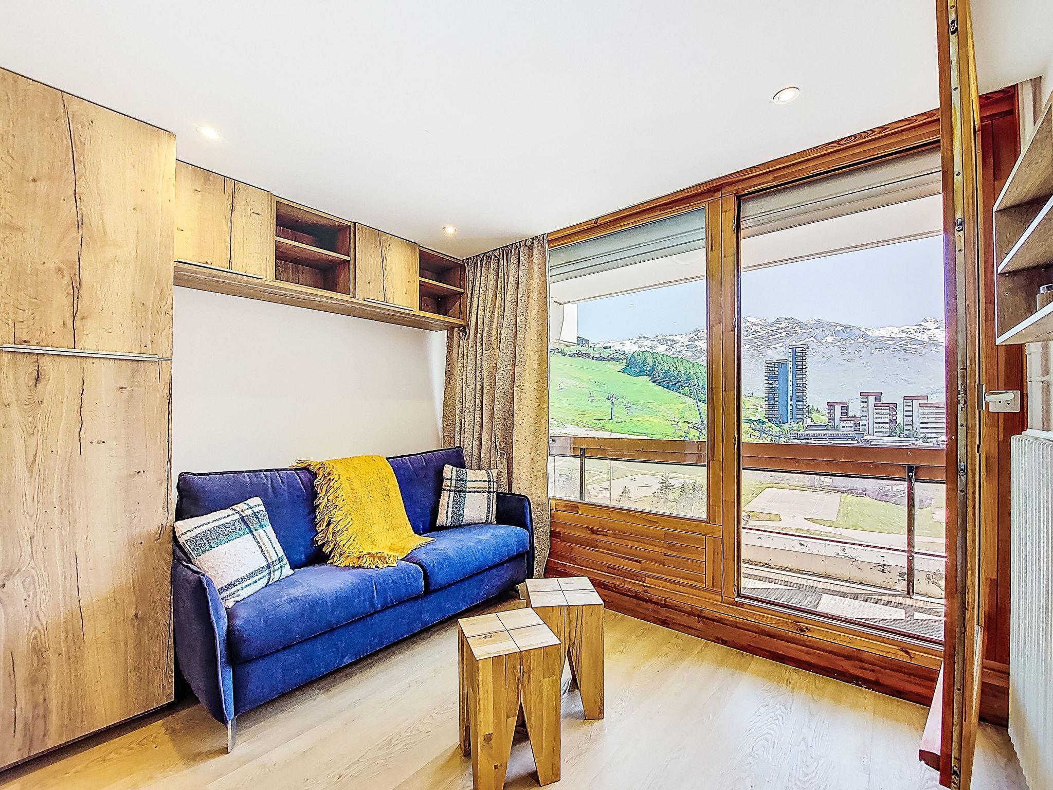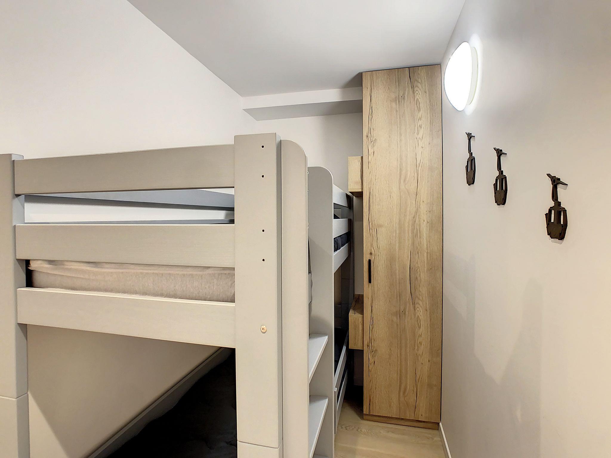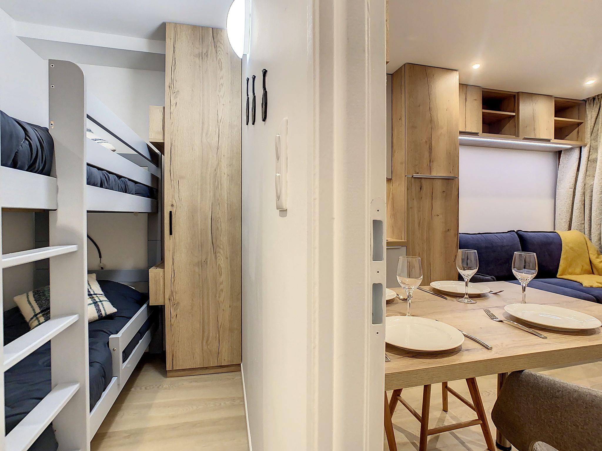 "Chavière 716", 1-room apartment 24 m2 on 7th floor, south facing position. Fully renovated in 2022, beautiful and modern furnishings: living/dining room with 1 double sofabed (140 cm, length 190 cm), TV (flat screen). Exit to the balcony. Sleeping alcove with 1 x 2 bunk beds (80 cm, length 190 cm). Kitchenette (mini-oven, dishwasher, 2 induction hot plates, toaster, kettle, electric coffee machine, raclette grill). Shower, sep. WC. Heating. Very beautiful view of the mountains. Facilities: hair dryer. Internet (WiFi, extra). Please note: non-smokers only. Smoke alarm. Instead of an enclosed bedroom, some sleeping areas are located in an open-plan area (gallery, alcove, etc.). Offer by a private individual according to Art. 155, IV of CGI. 73257005232AK