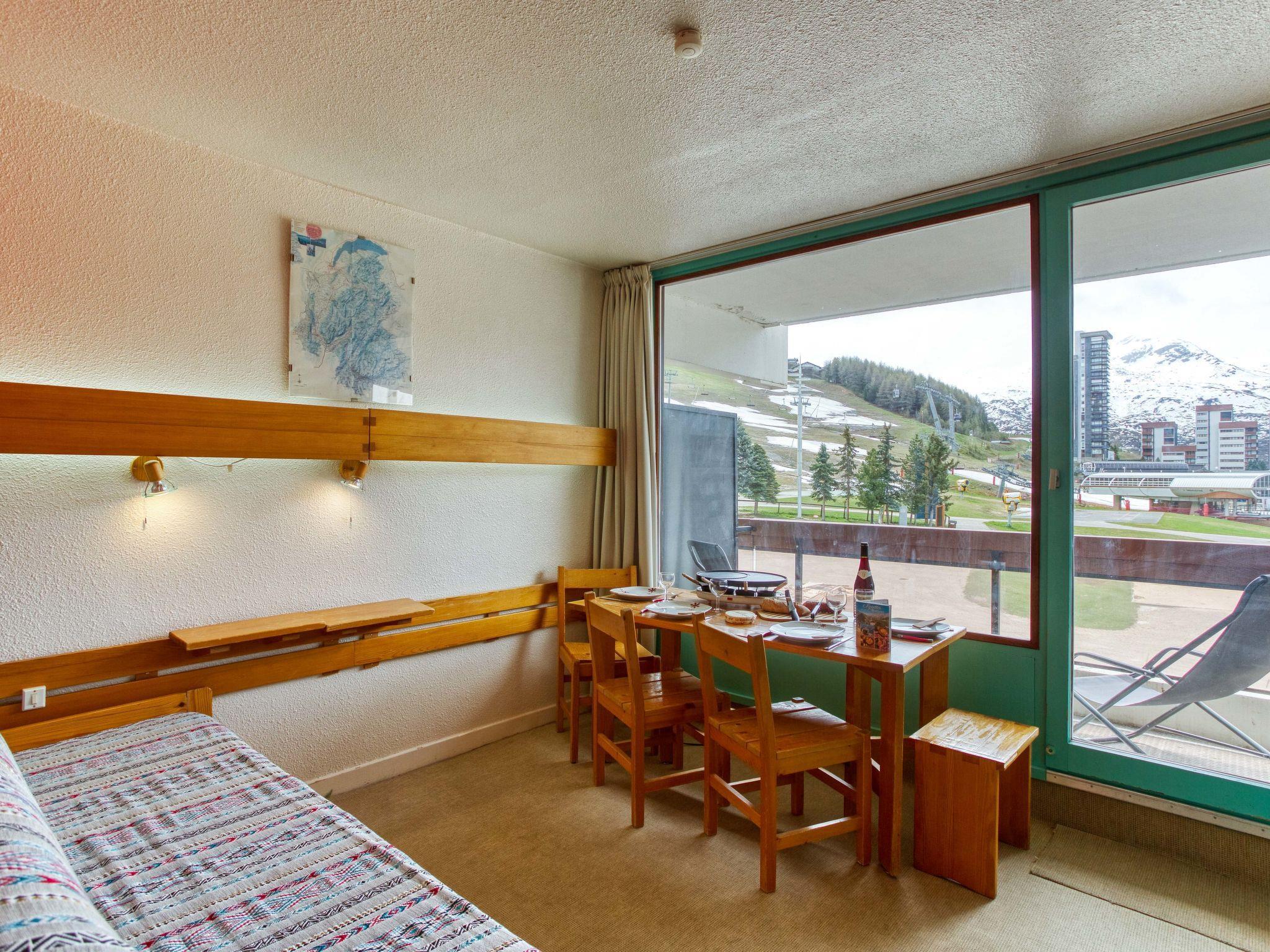 "Chavière 116", 1-room studio 24 m2 on 1st floor, south facing position. Living/dining room with 1 pull-out bed (2 pers. 2 x 80 cm, length 190 cm), TV (flat screen). Exit to the balcony, south facing position. Alcove with 1 x 2 bunk beds (80 cm, length 190 cm). Kitchenette (2 hot plates, oven, dishwasher, toaster, kettle, microwave, electric coffee machine). Bathroom, sep. WC. Heating. Very beautiful view of the mountains and the ski run. Facilities: Internet (WiFi, extra). Please note: non-smokers only. Smoke alarm. Instead of an enclosed bedroom, some sleeping areas are located in an open-plan area (gallery, alcove, etc.). Offer by a private individual according to Art. 155, IV of CGI. 73257005177WF