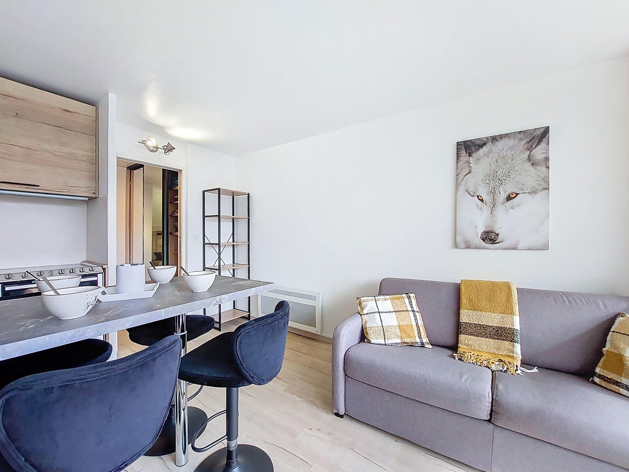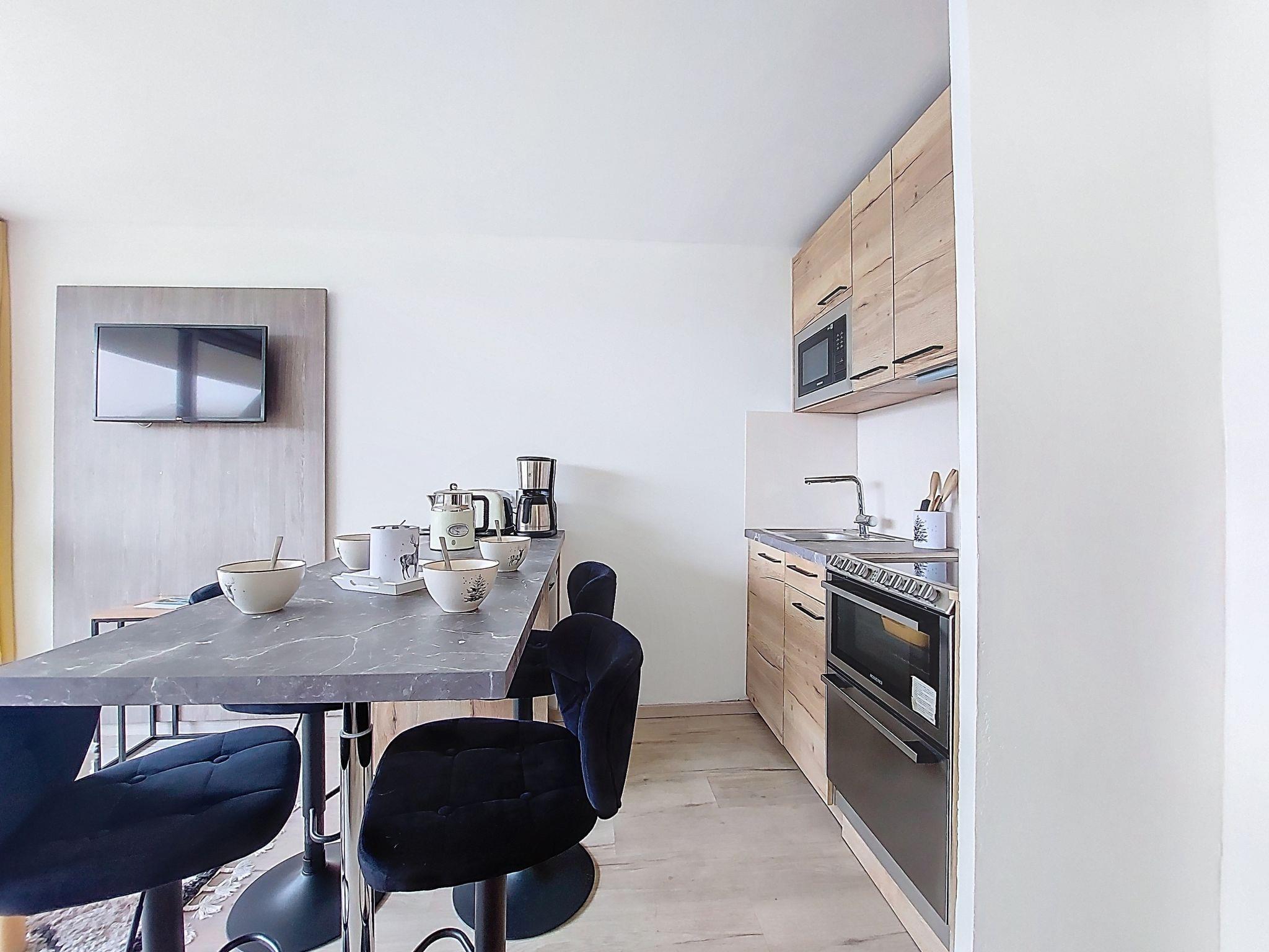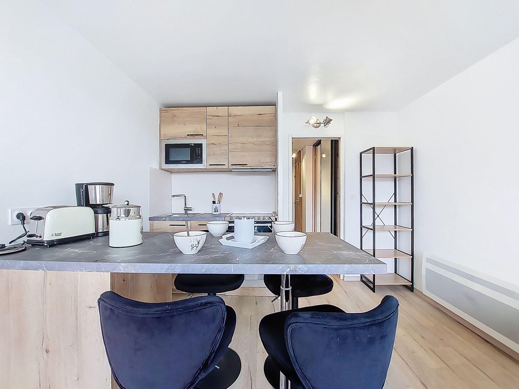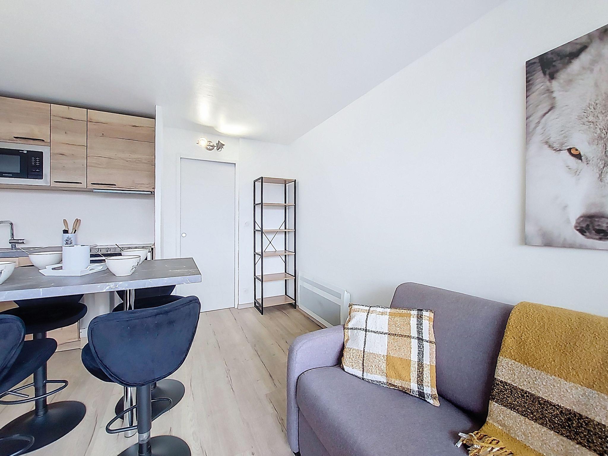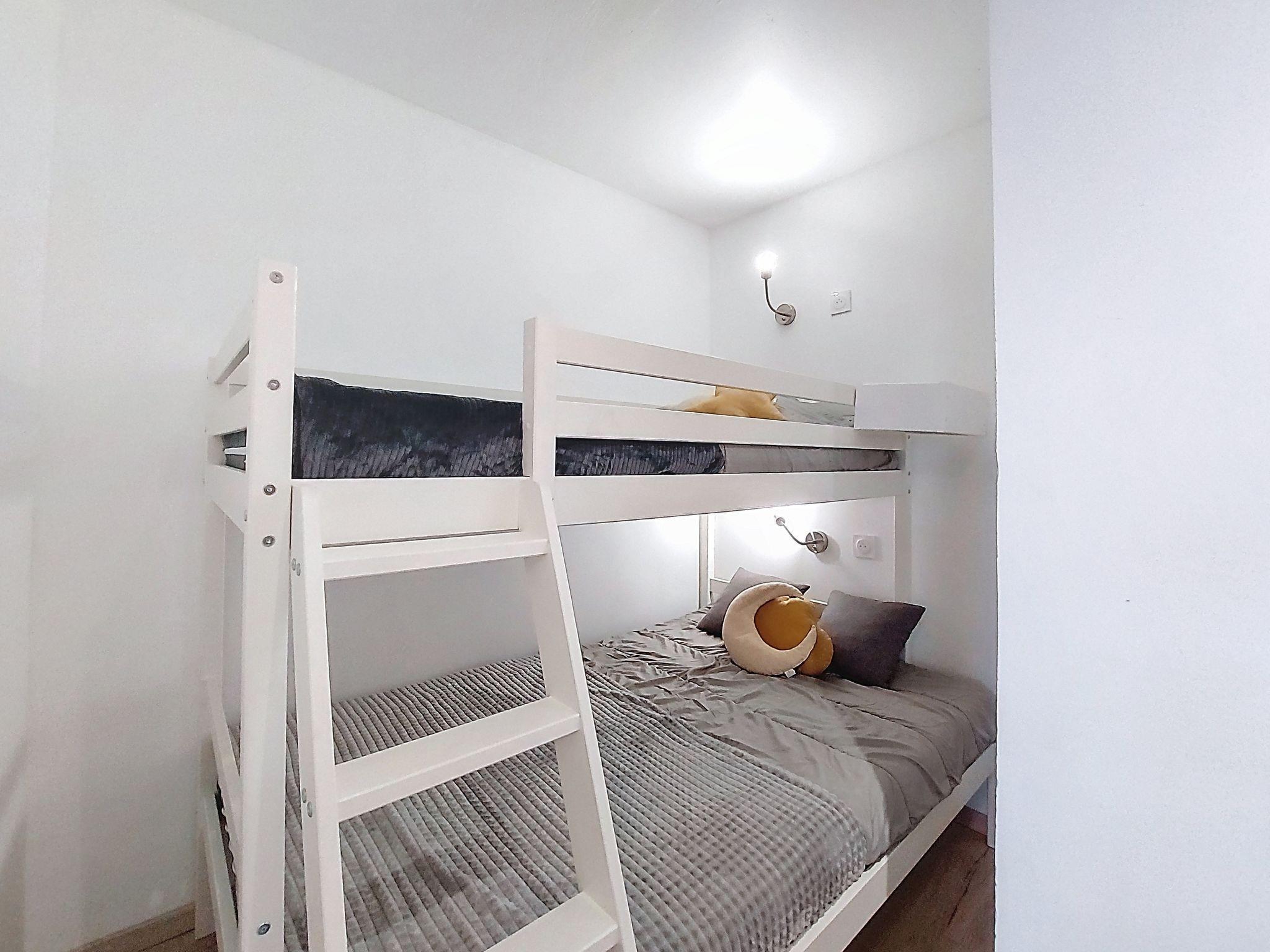 "317 Les Trois Marches", 2-room apartment 24 m2 on 3rd floor, south facing position. Beautiful and modern furnishings: living/dining room with 1 double sofabed (140 cm, length 190 cm), dining table and TV (flat screen). Exit to the balcony, south facing position. 1 open small room with 1 x 2 bunk beds (90 cm, length 190 cm). Kitchenette (oven, dishwasher, 4 ceramic glass hob hotplates, toaster, kettle, microwave, electric coffee machine, raclette grill, fondue Set (cheese)). Bath/WC. Electric heating. Very beautiful panoramic view of the mountains and the ski run. Facilities: Internet (WiFi, extra). Please note: non-smokers only. Smoke alarm. Offer by a private individual according to Art. 155, IV of CGI.