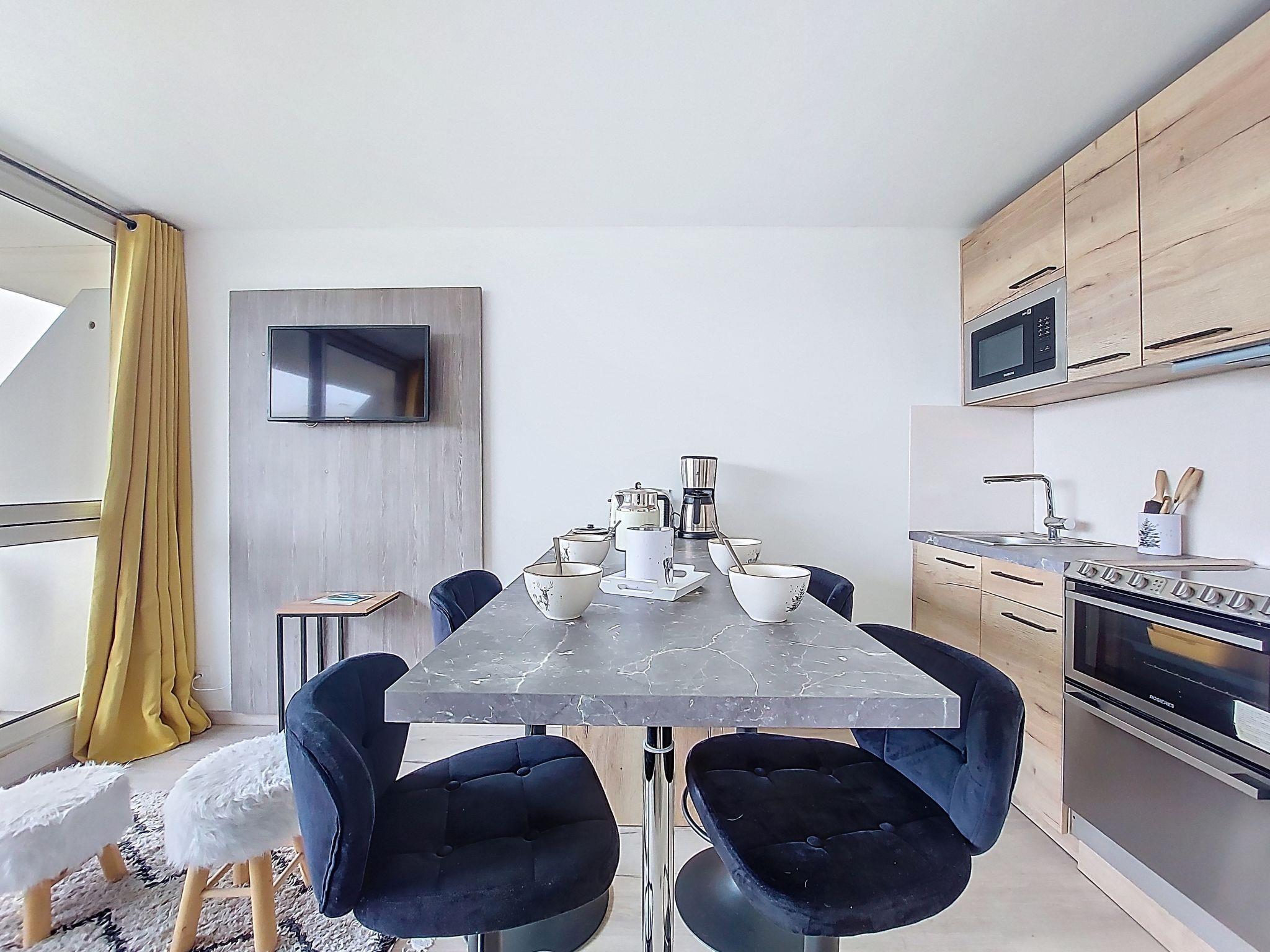 The residence Brelin is linked to the centre "La Croisette" by a public free lift 24/7 residence "Brelin". In an elevated position, directly by the skiing area. In the complex: restaurant, shopping facilities, lift, storage room for skis. In Winter: please take snow chains. Public parking. Grocery 20 m, shopping centre, restaurant 250 m, bus stop "Gare routière Les Menuires" 1 km. Sports centre 500 m, skisport facilities 50 m, slopes 20 m. Well-known ski regions can easily be reached: 3 Vallées. The owner does not accept any youth groups. Please note: Additional accommodations can be booked.