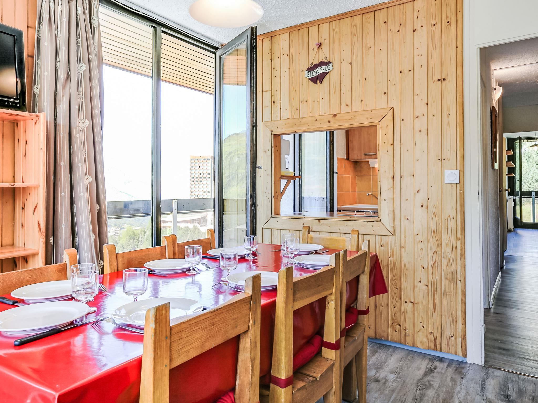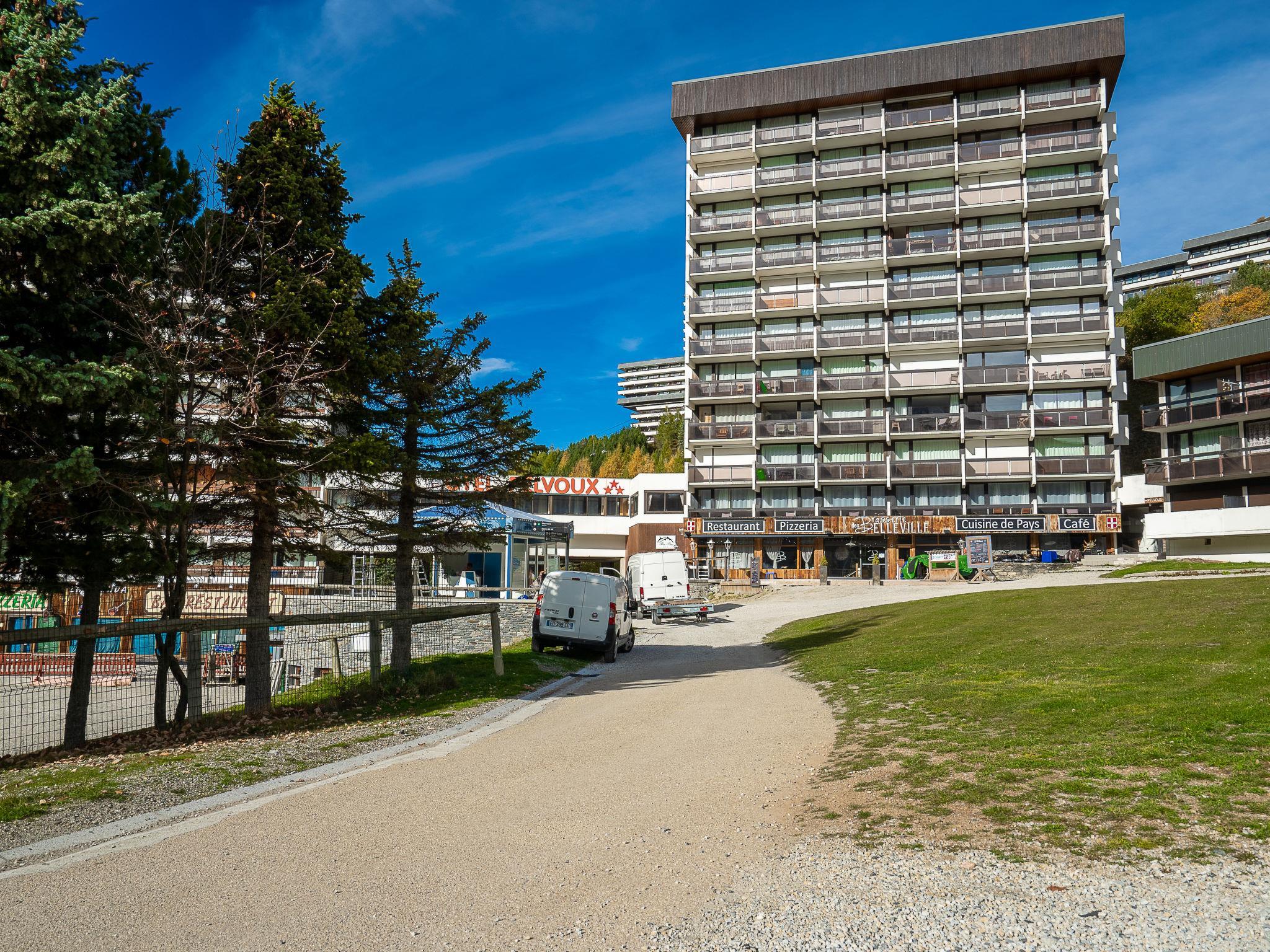 Apartment block "Pelvoux", 10 storeys. In the centre of La Croisette, directly by the skiing area. In the house: lift, storage room for skis, central heating system. Public parking 20 m. Supermarket, shopping centre, restaurant 50 m, bus stop "Gare routière Les Menuires" 100 m. Sports centre 100 m, skisport facilities, slopes 20 m, ski rental 20 m, ski school 50 m. Well-known ski regions can easily be reached: 3 Vallées. Please note: lift to 9th floor. The photograph shows a typical example. Additional accommodations can be booked.