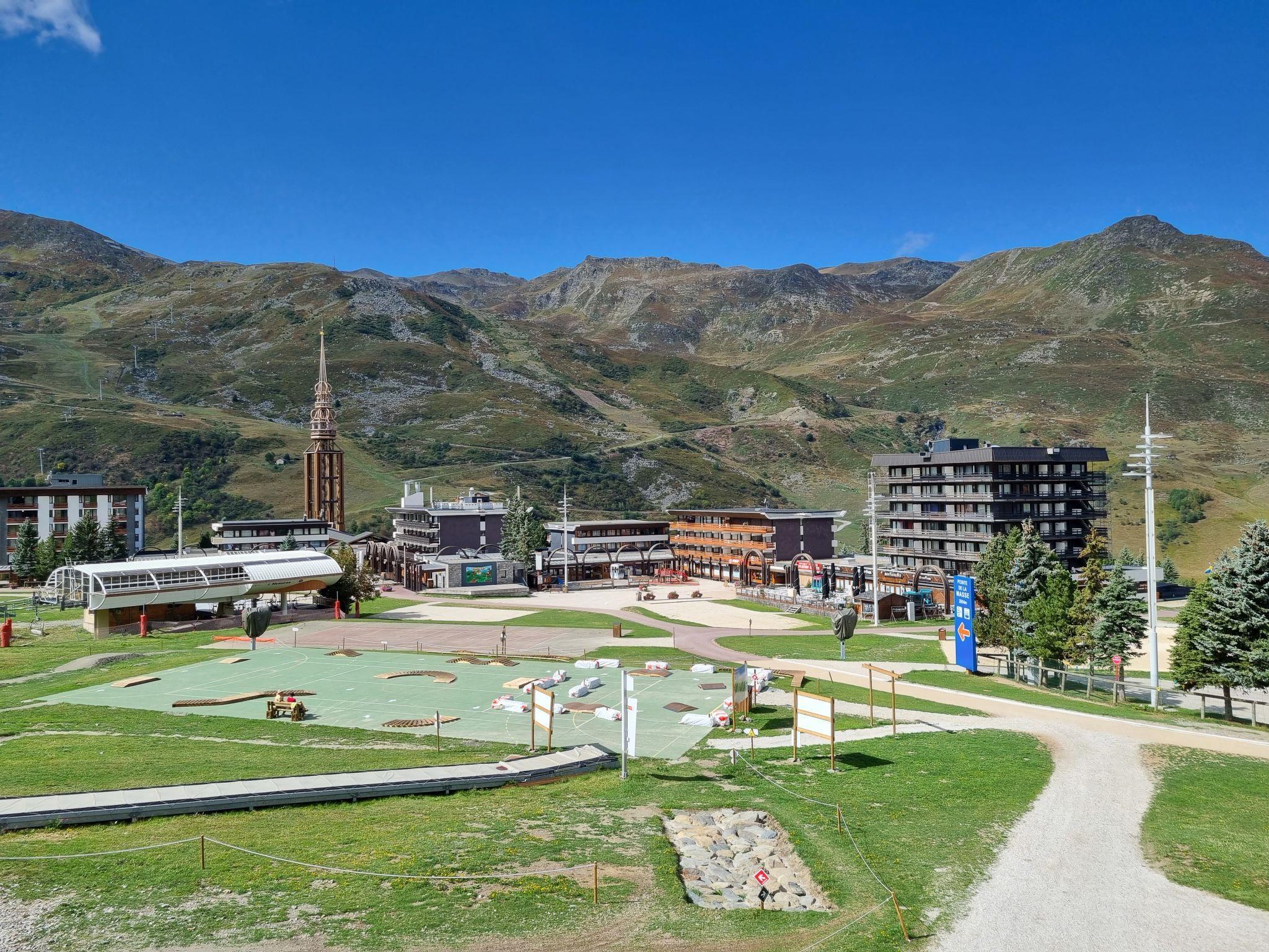 "Pelvoux 102", 1-room apartment 22 m2 on 10th floor. Beautiful furnishings: living/dining room with 1 sofabed (80 cm, length 190 cm), 1 double sofabed (140 cm, length 190 cm), TV (flat screen). Exit to the balcony. Kitchenette in the entrance (2 hot plates, dishwasher, kettle, microwave, electric coffee machine). Bath/WC. Balcony, south facing position. Very beautiful view of the mountains and the ski run. Facilities: Internet (WiFi, extra). Please note: maximum 1 pet/ dog allowed. Smoke alarm. 73257007202HT