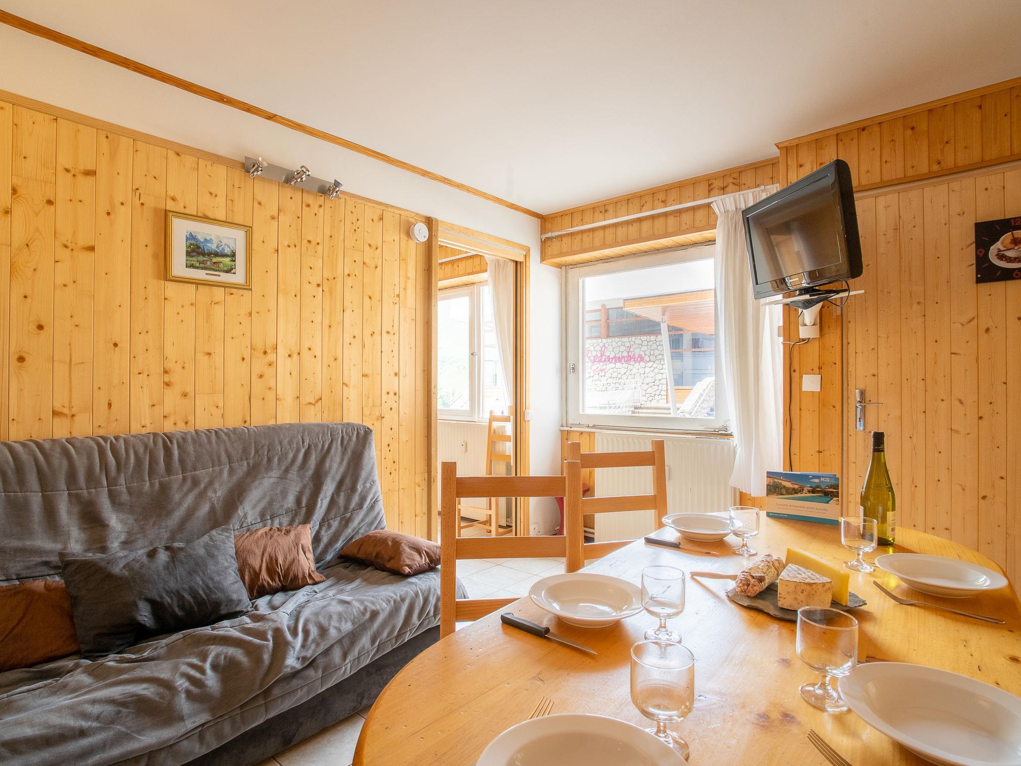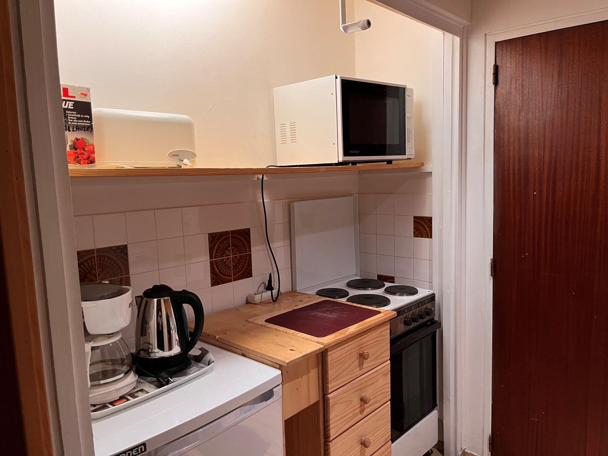 "Les Lauzes A1", 2-room apartment 31 m2, west facing position. Living/dining room with 1 double sofabed (140 cm, length 190 cm), TV (flat screen). 1 room with 1 bed (90 cm, length 190 cm), 1 x 2 bunk beds (90 cm, length 190 cm), shower/WC. Kitchenette in the entrance (4 hot plates, dishwasher, microwave, electric coffee machine, raclette grill, fondue Set (cheese)). Facilities: Internet (WiFi, extra). Please note: maximum 1 pet/ dog allowed. Smoke alarm. 73257002055MX