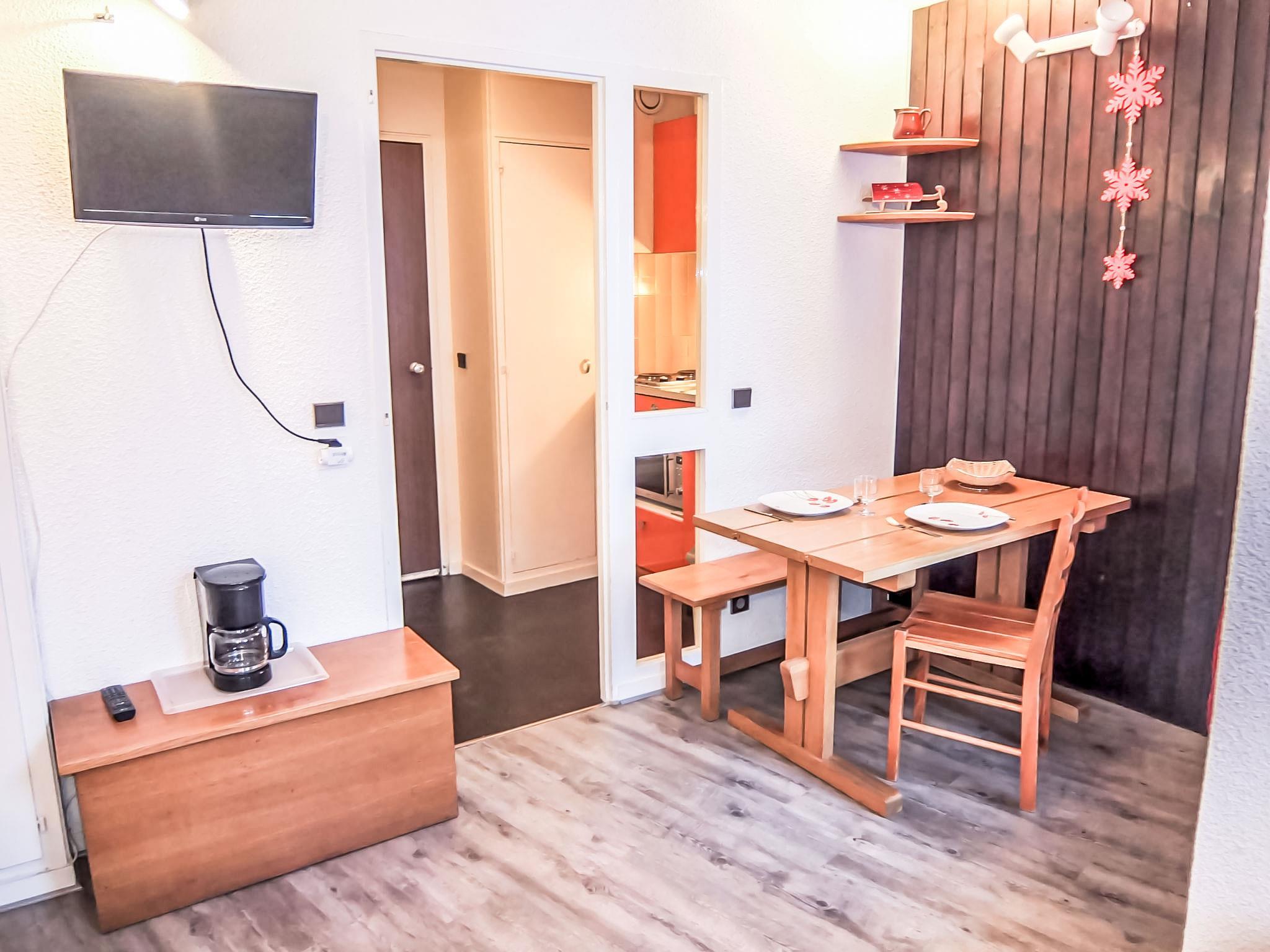 "Armoise 51", 1-room apartment 18 m2 on 4th floor. Comfortable and beautiful furnishings: living/dining room with 1 pull-out bed (2 pers. 2 x 80 cm), TV (flat screen). Exit to the balcony. Kitchenette in the entrance (2 hot plates, kettle, microwave, electric coffee machine). Shower/WC. Heating. Balcony, north-east facing position. Facilities: Internet (WiFi, extra). Please note: non-smokers only. Smoke alarm. 73257008073MX