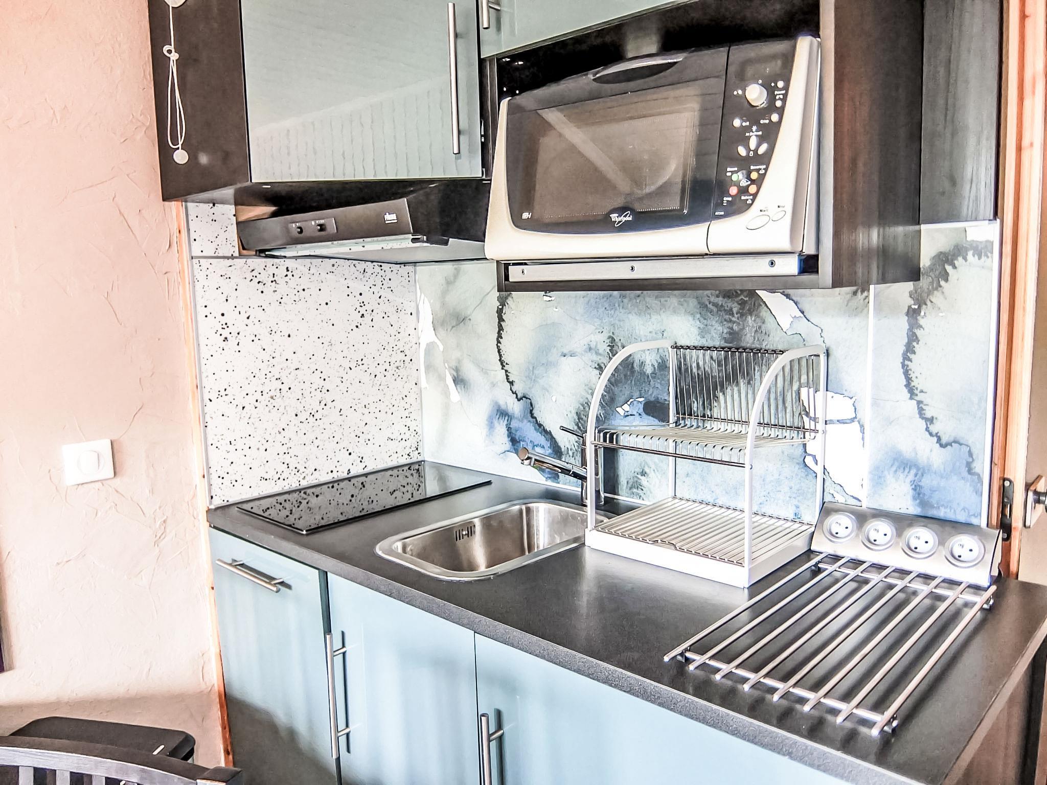 "Villaret 604", 1-room apartment 22 m2 on 6th floor. Renovated, beautiful furnishings: living/dining room with 1 double sofabed (160 cm, length 190 cm), TV (flat screen). Exit to the balcony. Sleeping alcove with Dressing room with 1 x 2 bunk beds (80 cm, length 190 cm). Kitchenette (dishwasher, 2 ceramic glass hob hotplates, toaster, kettle, electric coffee machine, combination microwave). Bathroom, sep. WC. Heating. Balcony, west facing position. Beautiful view of the mountains. Facilities: Internet (WiFi, extra). Please note: maximum 1 pet/ dog allowed. Smoke alarm. Instead of an enclosed bedroom, some sleeping areas are located in an open-plan area (gallery, alcove, etc.). 73257002305DP