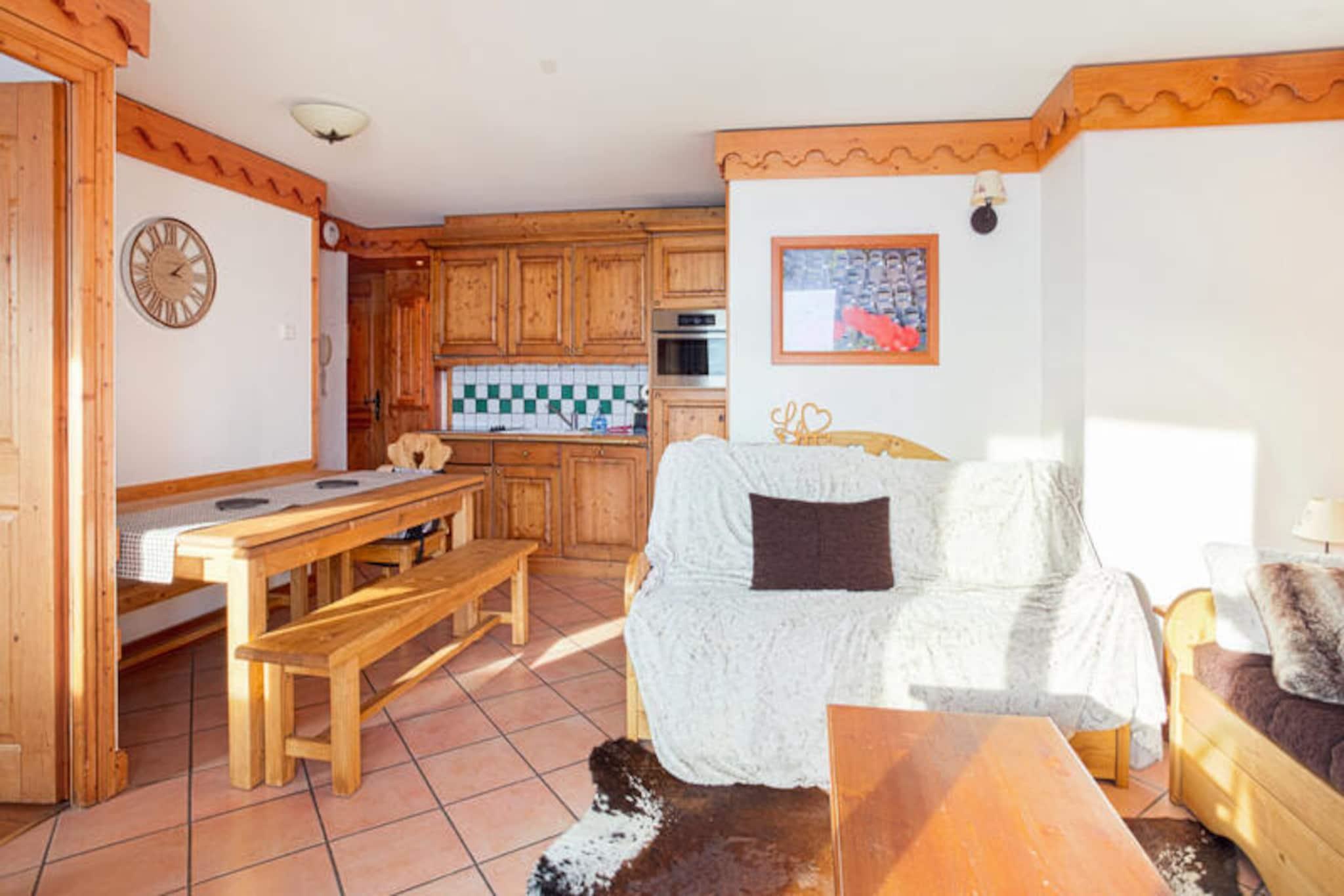 Denne charmerende lejlighed på 50 m² i Les Menuires tilbyder et hyggeligt og veludstyret ophold med 2 soveværelser, rummelig stue med sovesofa og 2 badeværelser. Det første soveværelse har en dobbeltseng med direkte adgang til et badeværelse, mens det andet soveværelse er indrettet med 4 enkelt køjesenge, perfekt til familier eller grupper. Lejligheden omfatter også et køkkenområde, en sydvendt balkon med udsigt over bjergene og trådløs internetadgang (mod et ekstra gebyr). Kæledyr er tilladt, og ejendommen tilbyder også en privat parkeringsplads for ekstra bekvemmelighed. Beliggende i hjertet af 3 Vallées-området er denne bolig perfekt til udendørsentusiaster. Med direkte adgang til skiløjperne og Snow Guaranteed-mærket er det en ideel base for vandreture og skiløb. Blot 1,5 km fra butikker og lokale faciliteter har du også hurtig adgang til Walibi Gliss og BK Park, som er fantastiske for familier. Nærliggende attraktioner omfatter også den betagende omgivende natur i Savoie-bjergene, der giver muligheder for afslapning og eventyr. Yderligere faciliteter inkluderer en opvarmet swimmingpool, sauna, fitnessrum og et skiskab. Deep Nature Spa tilbyder behandlinger og massage mod et tillægsgebyr. For familier med små børn er et babysæt tilgængeligt efter anmodning. Lejligheden giver også adgang til en direkte elevator til swimmingpoolen og en overdækket parkeringsplads (tilgængelig mod et ekstra gebyr). Med sine nylige renoveringer er denne bolig perfekt til både afslapning og eventyr.