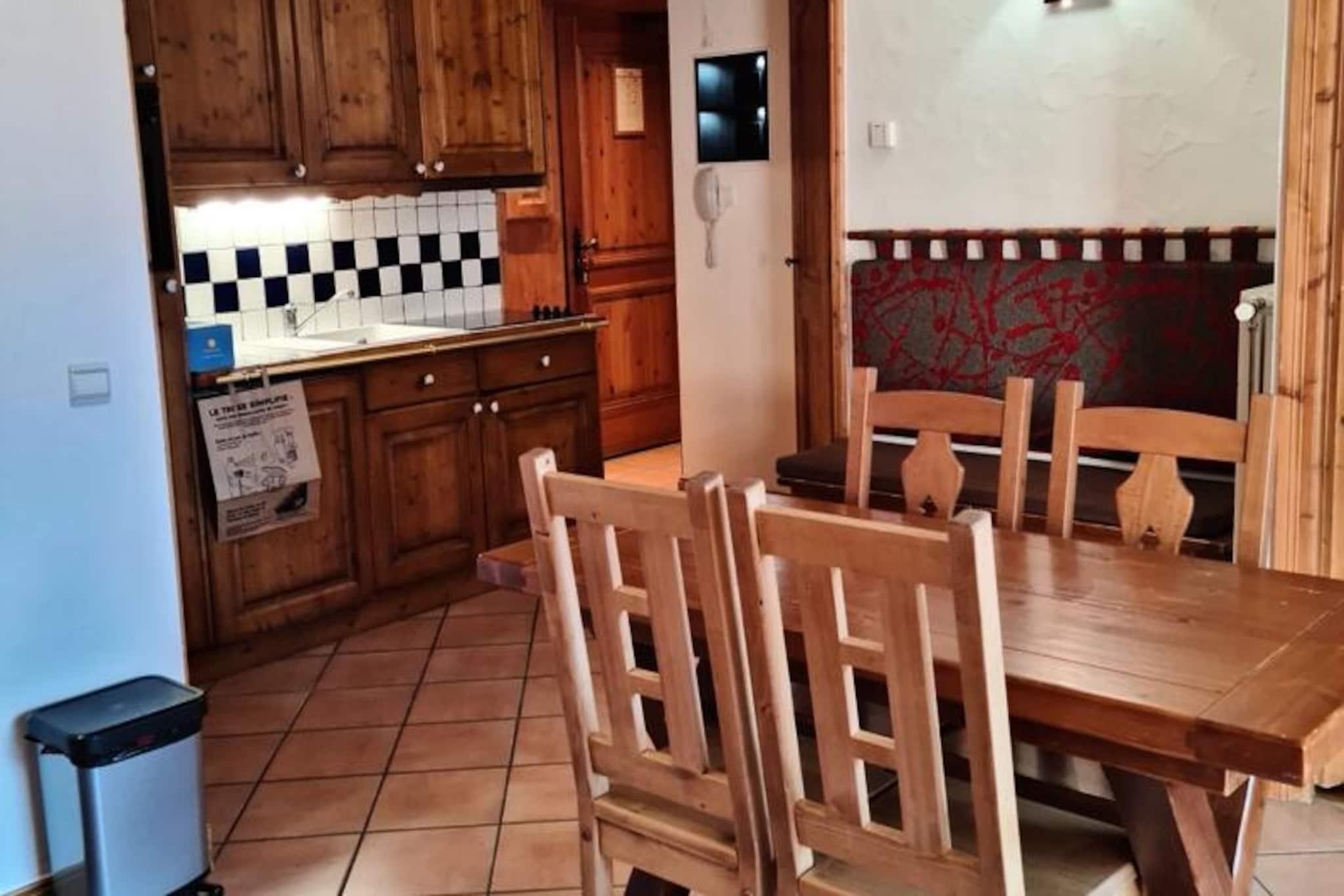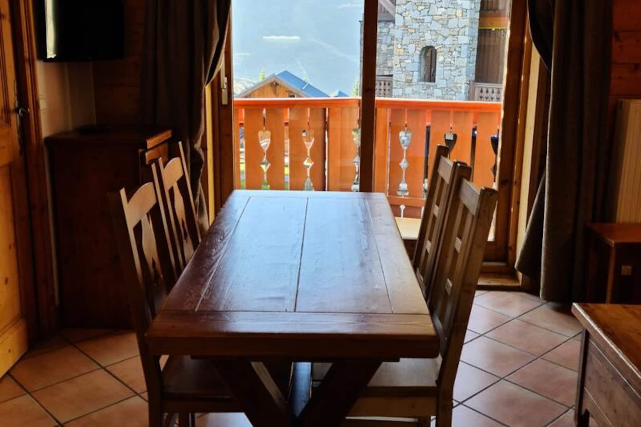 Denne charmerende lejlighed tilbyder et hyggeligt oase med to komfortable soveværelser, det ene med en queensize seng og det andet med to enkeltsenge. I stuen er der en sovesofa til yderligere gæster, et sofabord og et opholdsområde til to. Ejendommen er kæledyrsvenlig mod et tillægsgebyr, hvilket sikrer, at du kan tage dine lodne ledsagere med. Nyd bekvemmeligheden med gratis varme, elektricitet og inkluderet linned og håndklæder. Lejligheden ligger i det maleriske feriested Les Menuires og giver direkte adgang til pisterne og skiområdet 3 Vallées. Det er kun 1,5 km fra lokale butikker, caféer og markeder. Familier vil sætte pris på nærliggende attraktioner såsom Walibi Gliss og BK Park, mens de omkringliggende bjerge byder på masser af vandre- og udendørsaktiviteter. Til afslapning er Deep Nature Spa med sauna, hammam og opvarmet swimmingpool tilgængelig. Lejligheden er veludstyret med et halvåbent køkken, to badeværelser - det ene med badekar og det andet med bruser - og en privat balkon med udsigt over bjergene. Yderligere faciliteter omfatter en privat parkeringsplads, tv og et babysæt (efter anmodning). Beliggenheden og faciliteterne gør denne lejlighed perfekt til familier eller grupper, der søger en fredelig ferie i bjergene.