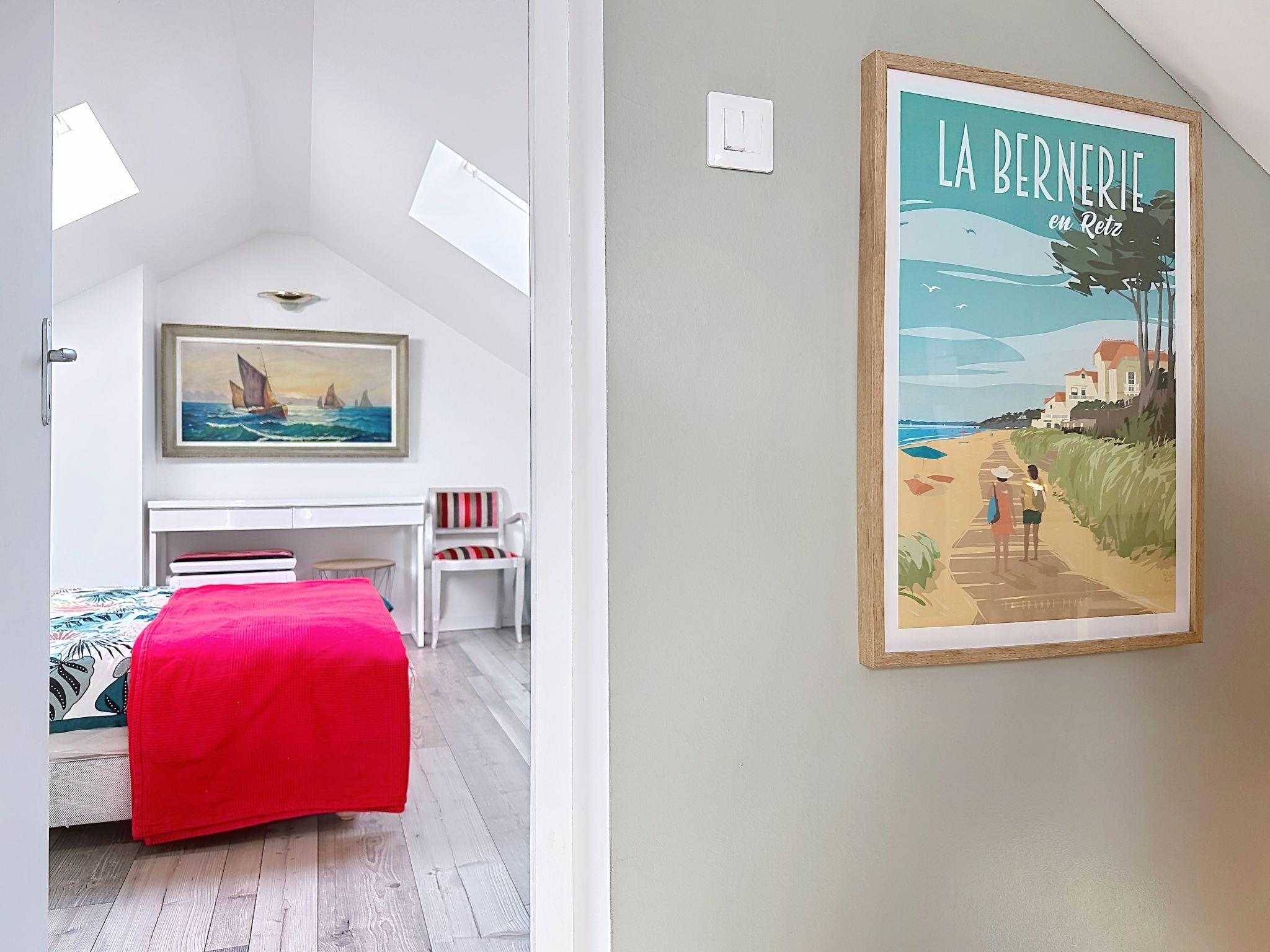 Beautiful single-family house "Les Rainettes", 2 storeys. In a quiet, sunny position, 650 m from the sea, 650 m from the beach, south-west facing position. Private: property 700 m2 (fenced), beautiful, well-kept garden (fenced) with lawn. Terrace, garden furniture, barbecue, parking. Restaurant, bar, bakery, café 550 m, 10 minute walk to the centre, bus stop "Les Moutiers en Retz" 550 m, railway station "Les Moutiers en Retz" 750 m, sandy beach "Plage du Pré-Vincent" 600 m, thermal baths "Alliance Pornic Thalasso & Spa" 11 km. Sports harbour 10 km, golf course (18 hole) 13 km, sailing school 600 m, minigolf 13 km, walking paths from the house 600 m. Nearby attractions: La Bernerie en Retz 3 km, Port du Collet 10 km, Port de Pornic 10 km, Les Machines de l'ile de Nantes 45 km, Ile de Noirmoutier 52 km, La Baule 52 km. Well-known lakes can easily be reached: Lac de Saint Viaud 29 km. Neighbourhood highly sensitive to noise. Quietness and good behaviour expected.