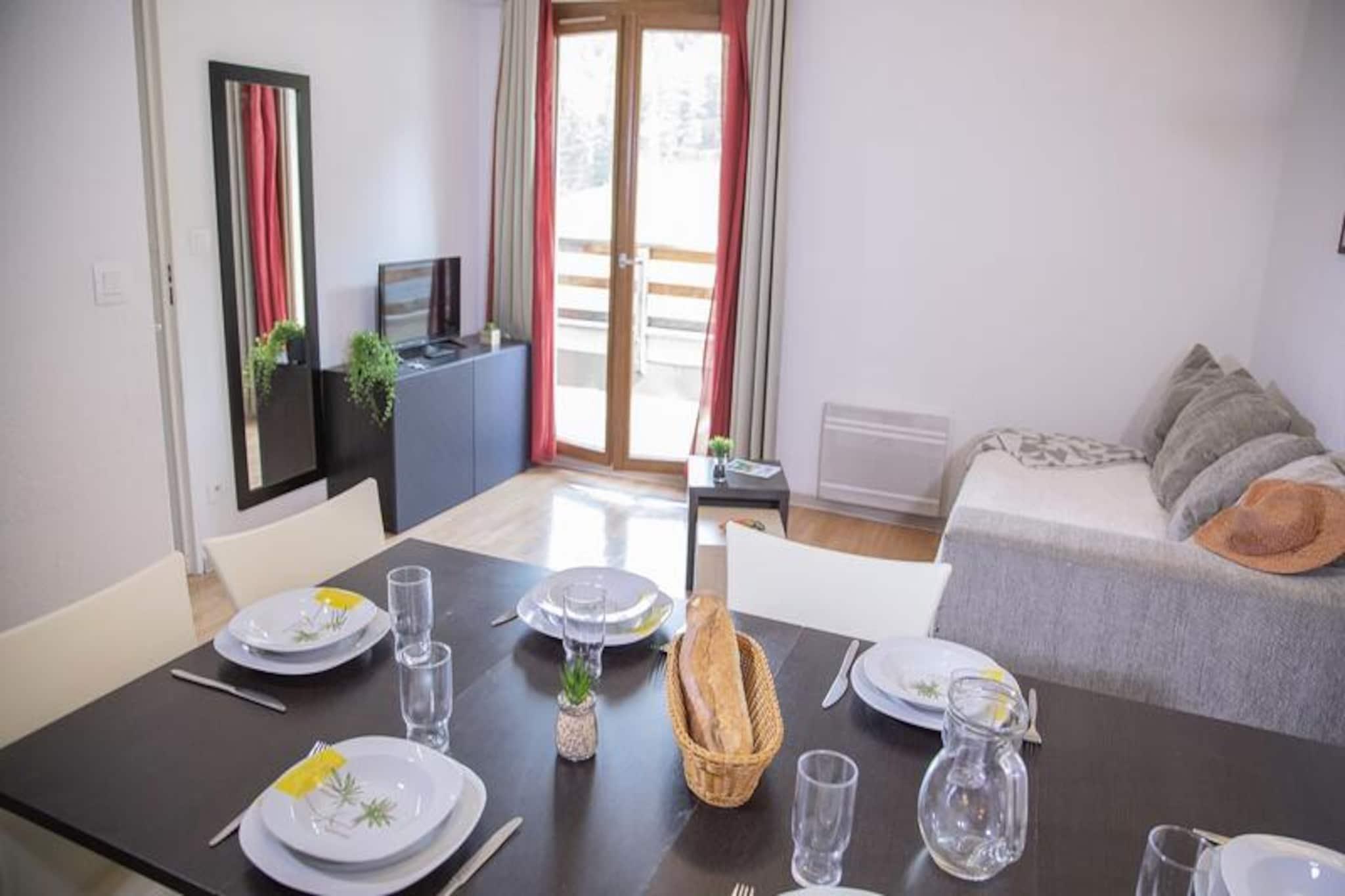 Forestil dig at vågne op til den friske bjergluft og træde ud på din altan for at beundre den betagende udsigt over Alperne. Beliggende i den charmerende landsby Bois Méan tilbyder Residence Les Terrasses du Soleil d'Or det perfekte tilflugtssted for både familier og eventyrere. Med sin uovertrufne beliggenhed lige ved pisterne begynder din bjergferie i det øjeblik, du træder udenfor. Uanset om du er her for at stå på ski, gå på snesko eller blot nyde den fredfyldte skønhed i Les Orres, lover denne bolig et uforglemmeligt ophold. Lejligheden er designet med komfort og bekvemmelighed for øje og har en hyggelig stue med en dobbelt sovesofa, et fuldt udstyret køkken, et soveværelse med en dobbeltseng og en sovealkove med køjesenge – perfekt til familier eller grupper på op til seks personer. Efter en dag med udforskning kan du slappe af i residenceens store opvarmede indendørs pool med integrerede spabade eller slappe af på den udendørs terrasse og nyde solskinnet, uanset årstiden. Yderligere faciliteter, såsom friskbagt brød og kager, der kan bestilles i receptionen, sikrer en dejlig start på din morgen. Les Orres er et livligt rejsemål med aktiviteter for alle. Fra Snow Garden og daginstitutionen, der er bekvemt placeret lige uden for skirummet, til Préclaux-stoleliften kun 50 meter væk, ligger pisterne lige uden for døren. Udforsk markerede vandre- og snesko-stier, nyd en tur på kælken på snefronten, eller se en film i den lokale biograf. For dem, der søger spænding, er hundeslædeture, paragliding og guidede naturudflugter blot nogle af de eventyr, der venter på dig. Uanset om du er her for at suse gennem uberørt sne, vandre gennem frodige sommerstier eller blot slappe af i hjertet af de franske alper, er Residence Les Terrasses du Soleil d'Or din indgang til en bjergferie fyldt med glæde og minder, der varer hele livet.