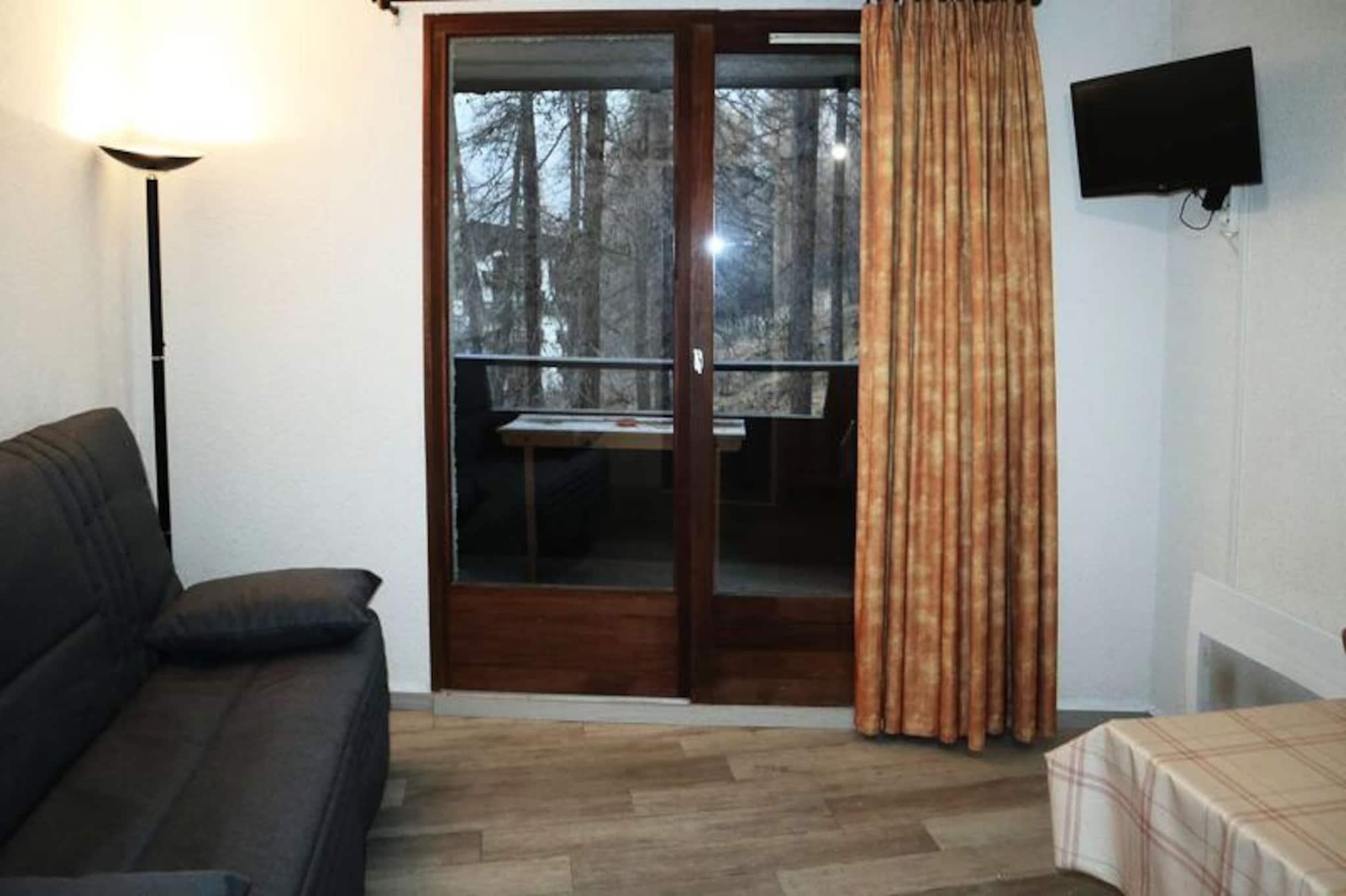 I et roligt kvarter omgivet af tårnhøje lærketræer tilbyder denne charmerende studiolejlighed et fredeligt tilflugtssted i hjertet af de franske alper. Beliggende på 4. sal i en velholdt bolig tilbyder den et hyggeligt og funktionelt rum til op til fire gæster, hvilket gør det til et ideelt valg for par eller små familier, der søger en bjergferie. Med Prébois-stoleliften kun 250 meter væk og lokale butikker og faciliteter kun 200 meter fra din dørtrin, er bekvemmelighed og eventyr altid inden for rækkevidde. \n\nIndvendigt er lejligheden omhyggeligt designet til at maksimere komfort og praktisk anvendelighed. Indgangen har to enkeltsenge, perfekte til børn eller ekstra gæster, mens stuen kan prale af en komfortabel dobbeltsovesofa. Tekøkkenet er udstyret med alt det nødvendige til at tilberede måltider efter en dag med udforskning af pisterne eller vandrestierne. Et separat badeværelse og toilet bidrager til bekvemmeligheden, mens den store vestvendte balkon inviterer dig til at slappe af med en fantastisk udsigt over dalen og betagende alpine solnedgange. \n\nUd over boligen tilbyder området en række aktiviteter for enhver sæson. Om vinteren kan du nyde den nemme adgang til skiløjperne og stoleliftene, mens sommeren forvandler regionen til et paradis for vandrere, cyklister og naturelskere. De nærliggende butikker og restauranter sikrer, at du har alt, hvad du behøver for et behageligt ophold, fra friske lokale råvarer til lækker regional mad. \n\nUanset om du søger spændende udendørseventyr eller rolige øjeblikke omgivet af naturen, er denne studiolejlighed den perfekte base for en uforglemmelig alpin flugt.