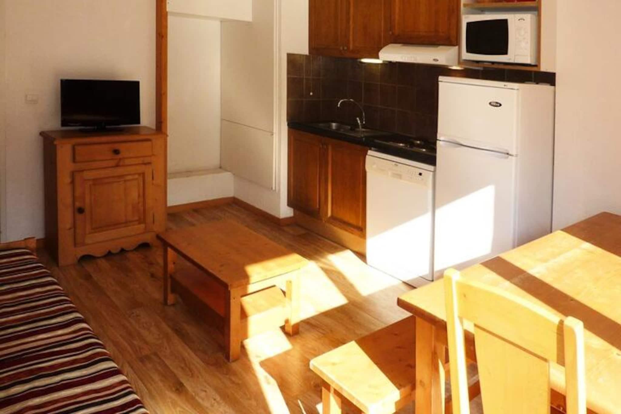 I hjertet af de franske alper, hvor den friske bjergluft møder endeløse horisonter, tilbyder denne rummelige 3-værelses lejlighed i den prestigefyldte residens Le Bois Méan en rolig oase for familier og grupper. Forestil dig at vågne op til solopgangens gyldne nuancer på din store østvendte terrasse med Alpernes majestætiske tinder som baggrund. Dette er et sted, hvor komfort og natur smelter sammen og skaber de perfekte rammer for uforglemmelige alpine eventyr. \n\nLejligheden er designet til at rumme op til otte gæster og kan prale af en gennemtænkt planløsning. Den varme og indbydende stue har to enkeltsenge, mens det fuldt udstyrede tekøkken med opvaskemaskine og mikrobølgeovn sikrer ubesværet madlavning. En hyggelig sovealkove med køjesenge, en queensize-seng i det første soveværelse og to enkeltsenge i det andet soveværelse giver rigelige sovemuligheder. To badeværelser, det ene med bruser og det andet med badekar, bidrager til bekvemmeligheden og er ideel til større grupper. \n\nGæster på Le Bois Méan har eksklusiv adgang til boligens vandland, som inkluderer en opvarmet indendørs pool og en afslappende jacuzzi – den perfekte måde at slappe af på efter en dag med skiløb eller vandreture. Det omkringliggende område byder på et væld af aktiviteter, lige fra at udforske naturskønne stier til at opdage charmerende alpelandsbyer. Uanset om du er her for spændingen på pisterne eller roen i bjergene, er denne lejlighed din port til det bedste af Alperne. \n\nMed sin førsteklasses beliggenhed, moderne faciliteter og betagende udsigt inviterer denne lejlighed dig til at skabe varige minder i en af ??Frankrigs mest maleriske regioner. Uanset om det er vinter eller sommer, kalder bjergene – og dette er dit perfekte hjem væk fra hjemmet.