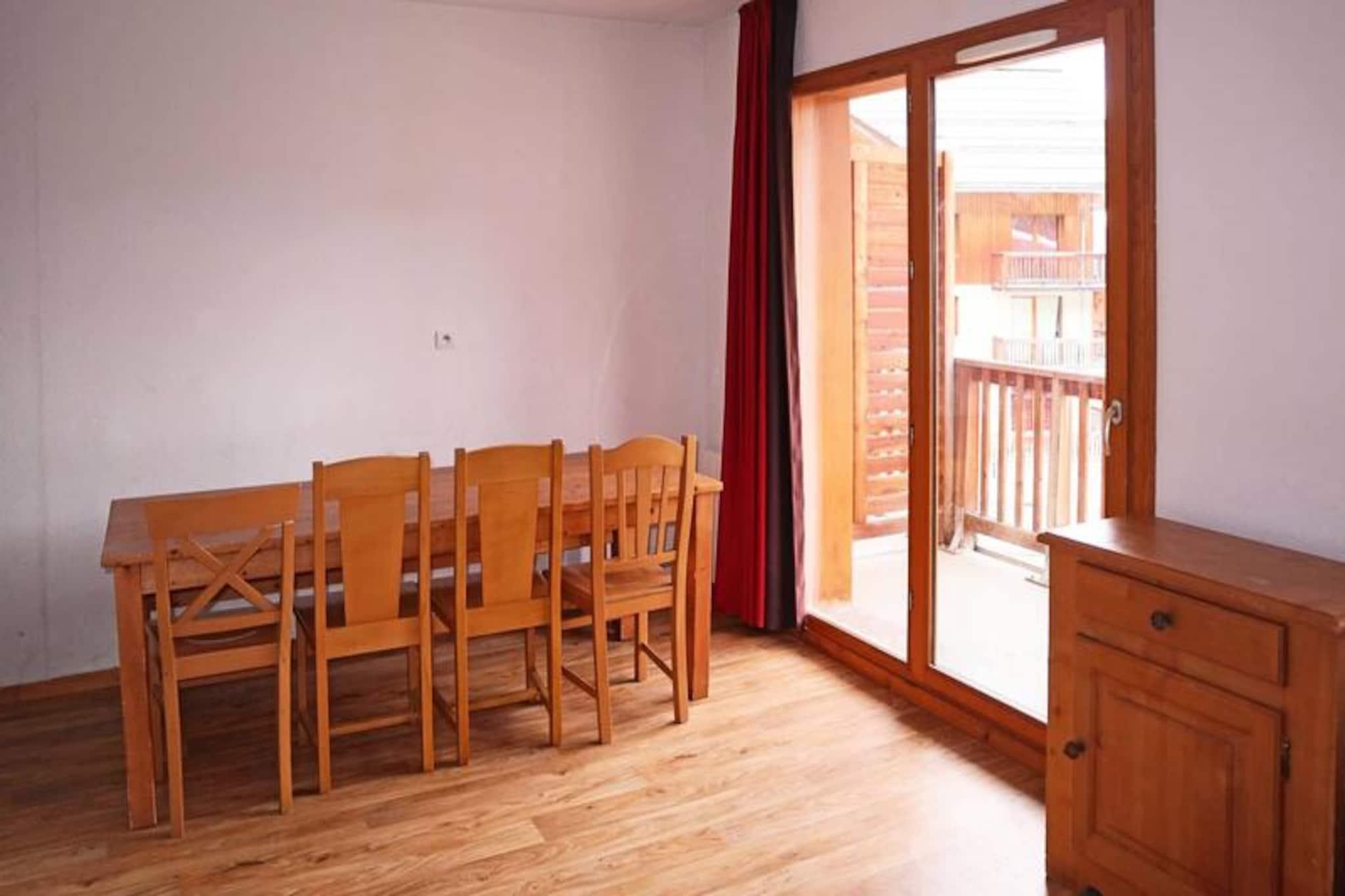 I hjertet af de franske alper, hvor den friske bjergluft forfrisker sanserne, tilbyder denne charmerende 3-værelses lejlighed i den prestigefyldte Le Bois Méan-residens det perfekte alpine tilflugtssted. Omgivet af betagende tinder og beliggende i en pulserende skisportsby, inviterer denne ejendom dig til at opleve bjergenes magi i enhver sæson. Fra det øjeblik du ankommer, vil den rolige atmosfære og den fantastiske udsigt fra den østvendte balkon betage dig. Forestil dig at starte din dag med en varm kop kaffe, mens du kigger ud på det majestætiske landskab, mens solen står op over tinderne. \n\nLejligheden er designet til at rumme op til otte gæster og er både rummelig og gennemtænkt indrettet. Stuen har to enkeltsenge, der kan trækkes ud, perfekt til afslapning efter en dag med eventyr. Et fuldt udstyret tekøkken med opvaskemaskine og mikrobølgeovn gør madlavning til en leg. Sovepladserne omfatter en hyggelig alkove med køjesenge, et soveværelse med en queensize-seng og et andet soveværelse med to enkeltsenge, hvilket sikrer komfort for familier eller vennegrupper. Med et badeværelse, et separat toilet og et ekstra brusebad med toilet er bekvemmelighed i højsædet på denne alpine ferie.\n\nGæster på Le Bois Méan har gratis adgang til boligens vandområde, som kan prale af en opvarmet indendørs pool og en afslappende jacuzzi. Efter en dag på pisterne eller på udforskning af de nærliggende stier kan du slappe af i det varme vand og lade stressen forsvinde. Beliggenheden er ideel for udendørsentusiaster, med skilifte, vandrestier og cykelruter inden for rækkevidde. Uanset om du søger spændende vintersport eller rolige sommervandreture, placerer denne bolig dig i hjertet af det hele.\n\nVælg denne dejlige lejlighed til din næste bjergferie og skab uforglemmelige minder omgivet af de franske alpers naturlige skønhed. Med sin blanding af komfort, bekvemmelighed og fantastiske landskaber er det den perfekte base for dine alpine eventyr.