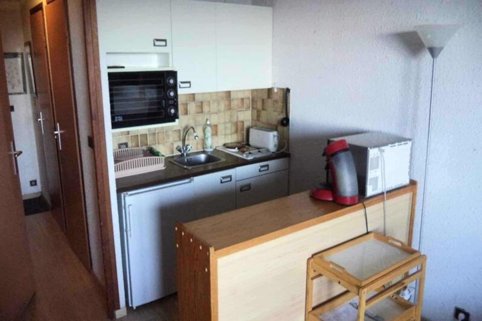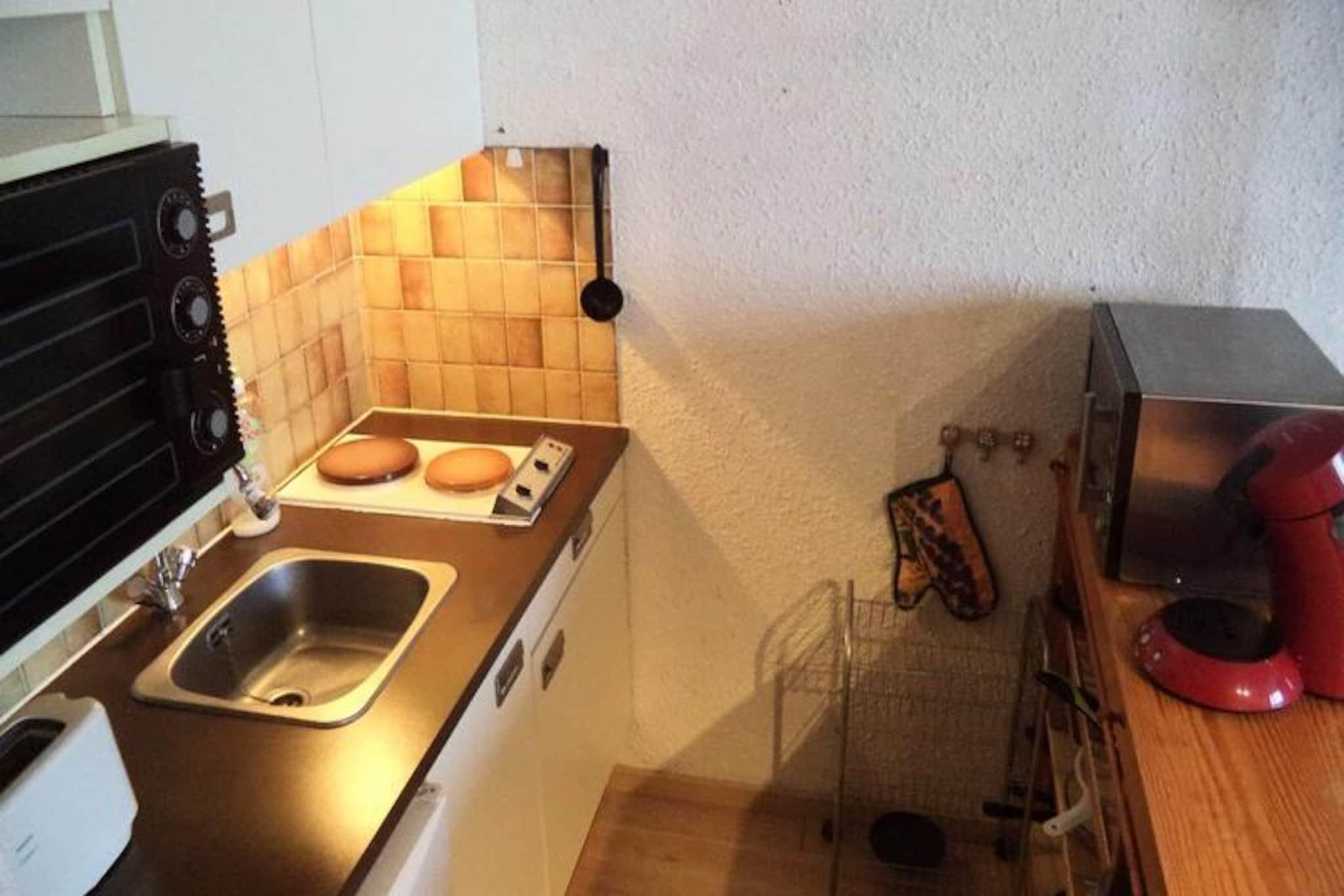 Højt over dalen, hvor den friske alpine luft forfrisker sanserne, tilbyder Residence Le Cairn et hyggeligt tilflugtssted i hjertet af Les Orres 1650. Beliggende direkte på hovedtorvet er denne charmerende studiolejlighed perfekt placeret for dem, der søger både bekvemmelighed og eventyr. Med direkte adgang til pisterne og nærliggende butikker er hvert øjeblik af dit ophold designet til lethed og nydelse. Fra den vestvendte balkon kan du nyde den betagende udsigt over dalen, mens solen går ned bag bjergene og maler himlen i nuancer af guld og rav. Dette er din port til uforglemmelige alpine minder. \n\nLejligheden er designet til komfortabelt at rumme op til fire gæster og har en gennemtænkt planløsning, der maksimerer plads og komfort. Indgangen er udstyret med to enkeltkøjesenge, mens stuen tilbyder en dobbeltsovesofa til afslappende nætter. Det åbne tekøkken er ideelt til at tilberede solide måltider efter en dag på pisterne, og det separate badeværelse og toilet sikrer privatliv og bekvemmelighed. Moderne bekvemmeligheder som varme og et skiskab med direkte adgang til pisterne gør denne bolig til et praktisk valg for vintersportsentusiaster. Les Orres 1650 er et pulserende aktivitetscenter med alt, hvad du behøver, kun få skridt væk. Udforsk de lokale butikker, nyd afterskiing-oplevelser, eller begiv dig ud for at opleve regionens naturlige skønhed. Om sommeren forvandles området til et paradis for vandrere og mountainbikere med stier, der snor sig gennem frodige skove og fører til panoramaudsigter. Uanset om du er her for spændingen ved skiløb eller roen i bjergene, er Residence Le Cairn den perfekte base for din alpine flugt. Lad charmen ved Les Orres 1650 og den indbydende atmosfære på Residence Le Cairn inspirere dit næste eventyr. Dette er mere end en ferie - det er en oplevelse, du vil værdsætte for evigt.