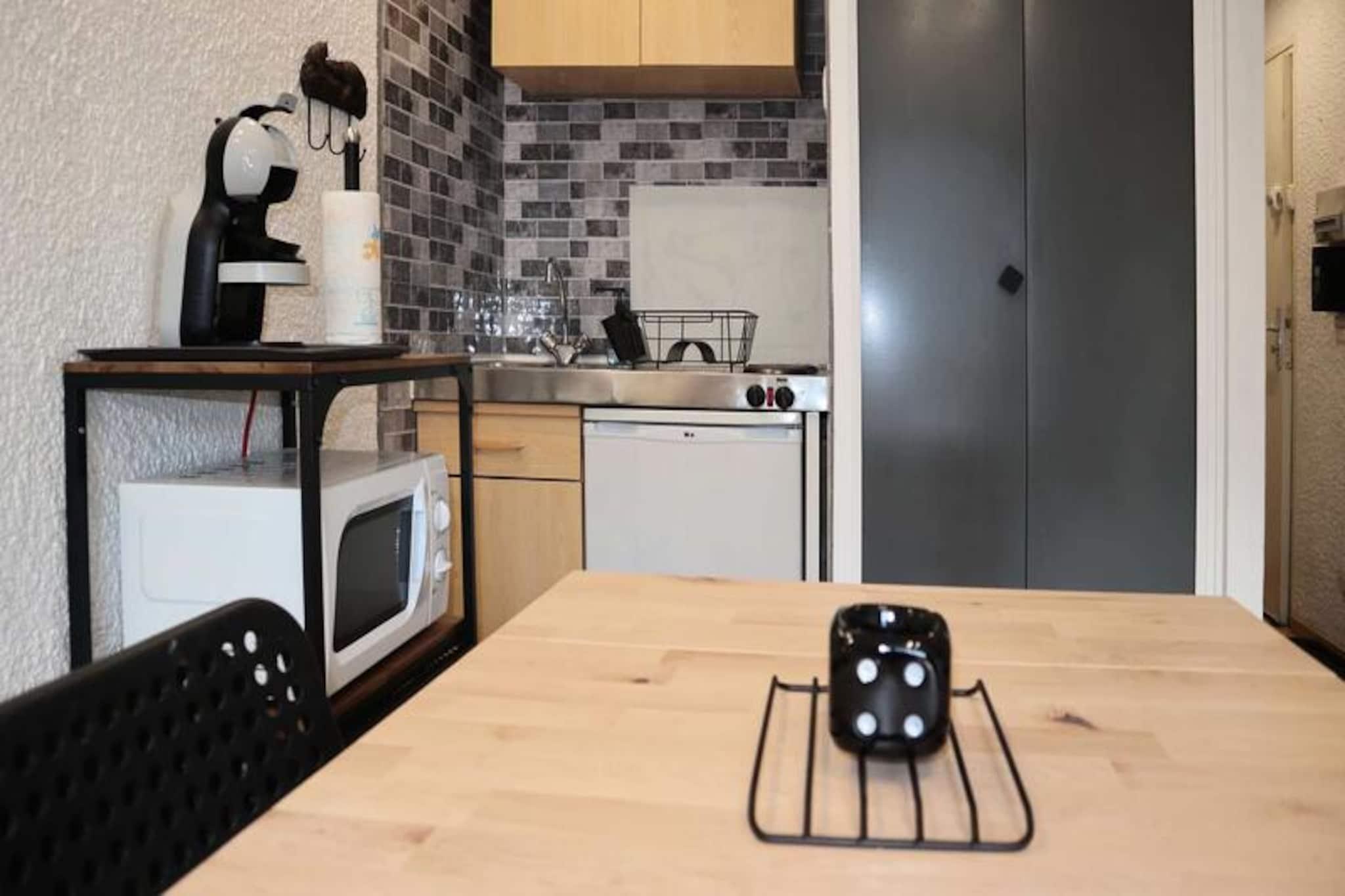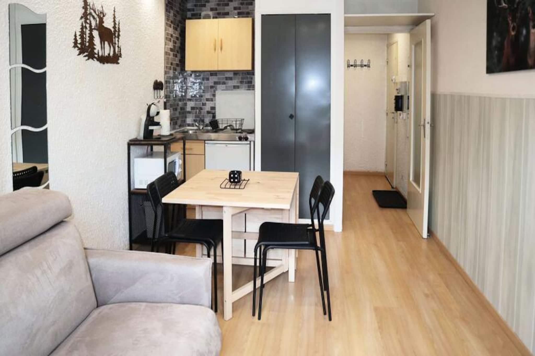 Højt over feriestedets travle hjerte tilbyder denne charmerende studiolejlighed et hyggeligt tilflugtssted for to med en betagende udsigt over dalen og den livlige skøjtebane nedenfor. Perfekt beliggende på 7. sal kombinerer dette fuldstændig renoverede rum moderne komfort med uovertruffen bekvemmelighed, hvilket gør det til et ideelt valg for par, der søger en mindeværdig alpin ferie. Uanset om du er her for at stå på ski, udforske eller blot slappe af, placerer dette studio dig i centrum af det hele. Træd indenfor og opdag et gennemtænkt opholdsområde med en komfortabel sovesofa, der nemt kan laves om til en 160 cm dobbeltseng. Det åbne tekøkken er fuldt udstyret, så du nemt kan tilberede måltider efter en dag på pisterne. Badeværelset, komplet med toilet, bidrager til lejlighedens praktiske anvendelighed, mens det varme laminatgulv skaber en indbydende atmosfære overalt. Den sydvendte balkon er det perfekte sted at slappe af og tilbyder uforstyrret udsigt over den omkringliggende dal og de livlige aktiviteter nedenfor. Med direkte adgang til pisterne og butikkerne finder du alt, hvad du behøver, kun få skridt væk. Uanset om du snupper en hurtig kop kaffe, inden du begiver dig ud på pisterne, eller udforsker feriestedets charmerende butikker og restauranter, er bekvemmeligheden lige ved hånden. Om aftenen kan du nyde den livlige atmosfære på skøjtebanen eller blot slappe af på din balkon og nyde det fredfyldte alpine landskab. Dette dejlige studie er mere end bare et sted at bo – det er din indgang til en uforglemmelig bjergflugt, hvor komfort, bekvemmelighed og en fantastisk udsigt forenes for at skabe den perfekte ferieoplevelse.