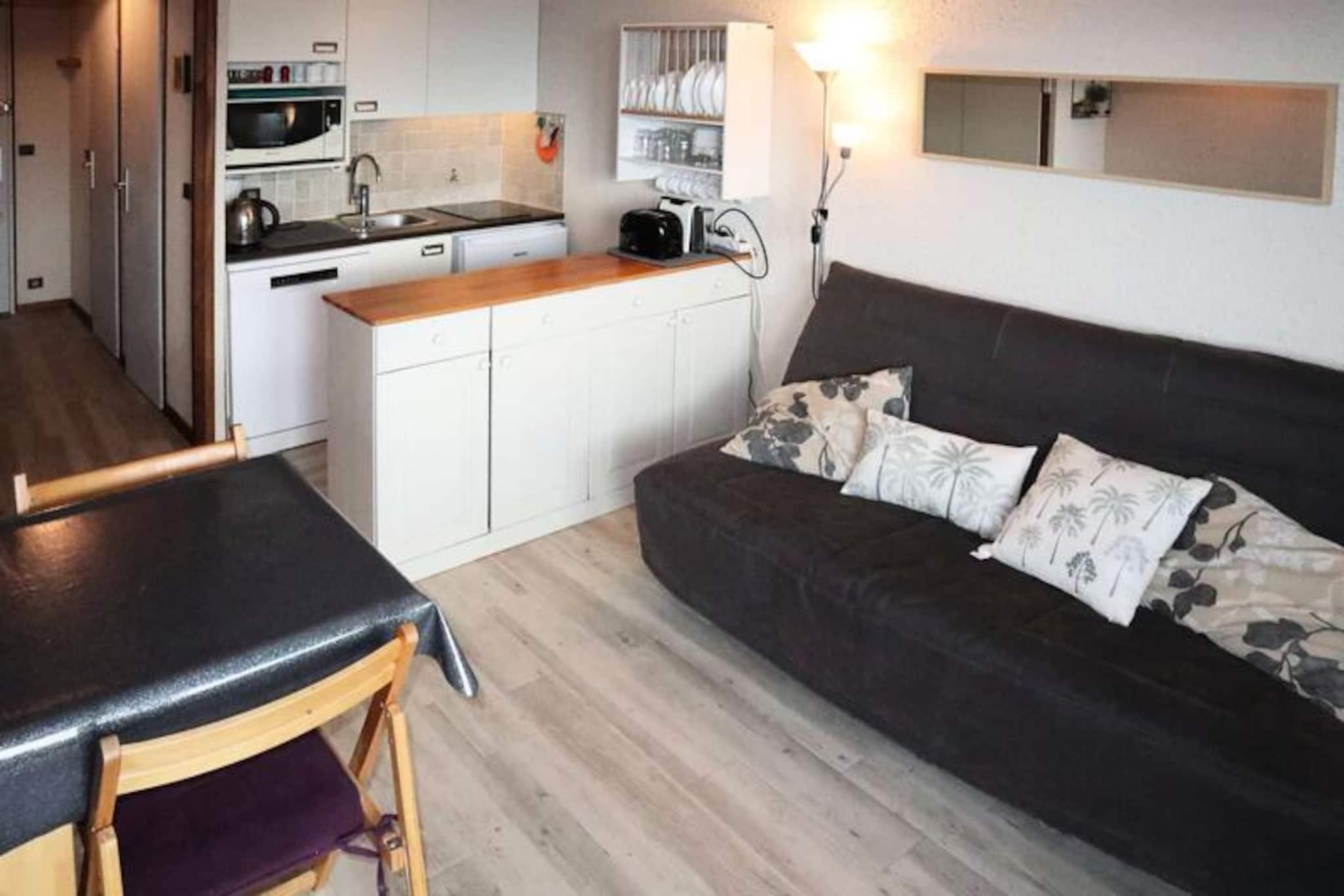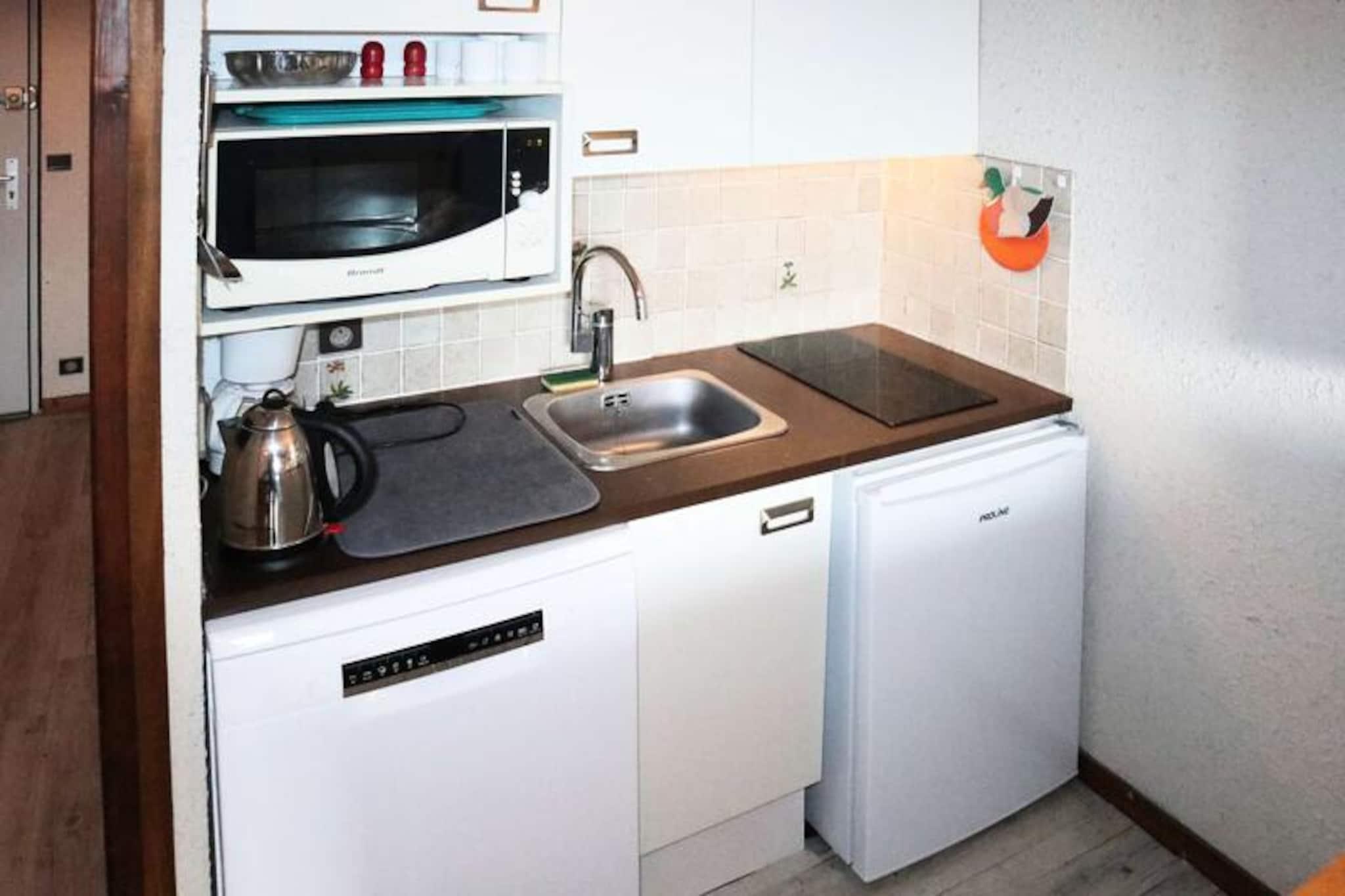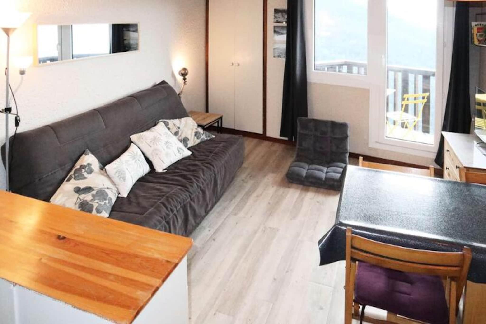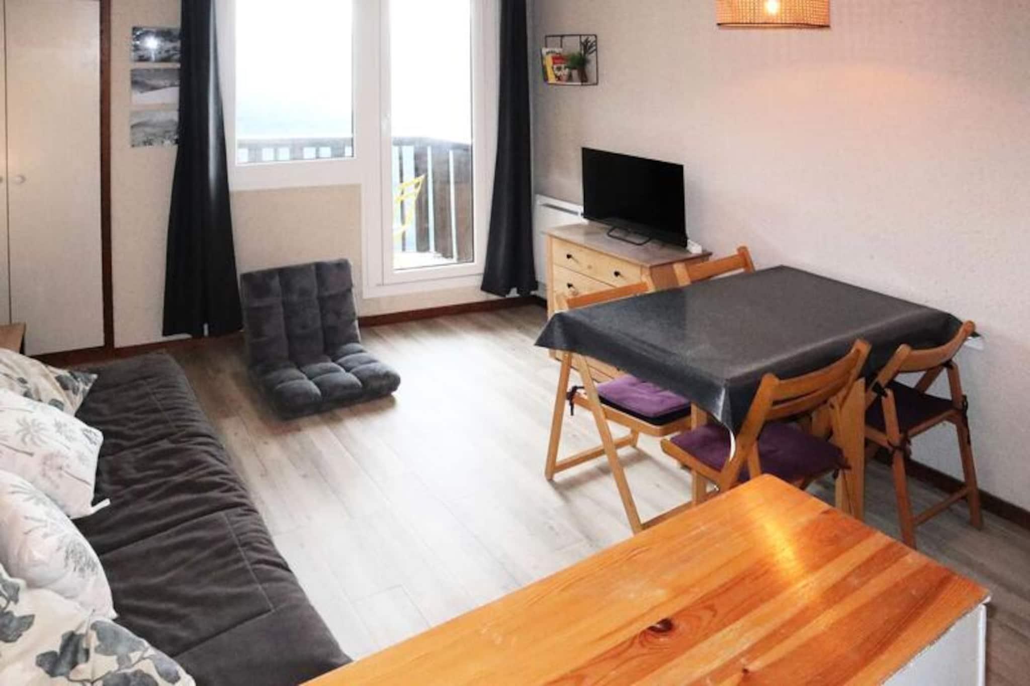 Højt over den betagende dal tilbyder denne hyggelige studiolejlighed et roligt tilflugtssted i hjertet af feriestedet. Forestil dig at træde ud på din vestvendte balkon, hvor en storslået udsigt over det alpine landskab strækker sig så langt øjet rækker. Uanset om du er her for vinterens sneklædte eventyr eller sommerens solbeskinnede stier, inviterer dette charmerende sted dig til at fordybe dig i de franske alpers skønhed. Med ski-in/ski-out adgang begynder dine dage ubesværet, når du glider ud på pisterne eller udforsker det pulserende feriestedsliv kun få skridt væk. \n\nLejligheden er designet til at rumme op til fire gæster og har en gennemtænkt sovealkove med to enkeltsenge og en stue med en komfortabel dobbeltsovesofa. Tekøkkenet, der er åbent til opholdsstuen, er udstyret til at tilberede måltider til at nyde efter en dag med udforskning. Et separat badeværelse og toilet sikrer bekvemmelighed, mens den varme atmosfære i rummet gør det til et indbydende fristed for familier eller par, der søger en mindeværdig alpin flugt. \n\nResidensen er ideelt placeret på 9. sal og giver direkte adgang til butikker, restauranter og aktiviteter, der bringer feriestedet til live. Uanset om du søger afterskiing, lokale specialiteter eller udendørs eventyr, er alt hvad du behøver lige ved hånden. Om sommeren forvandles dalen til et paradis for vandrere og cyklister med stier, der fører til fantastiske udsigter og skjulte perler. \n\nVælg dette studie for dets uovertrufne beliggenhed, fascinerende udsigt og den perfekte blanding af komfort og bekvemmelighed. Her føles hvert øjeblik som en fejring af alpinlivet, der skaber minder, der vil blive hængende længe efter dit ophold.