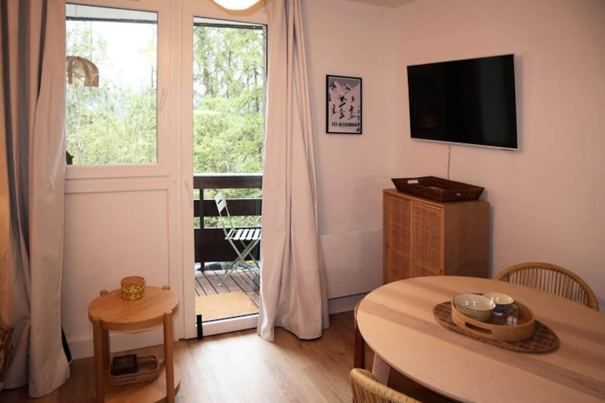 Omgivet af lærkeskovens fredfyldte skønhed tilbyder denne dejlige studiolejlighed i Les Orres 1650 et perfekt tilflugtssted for både naturelskere og eventyrlystne. Ejendommen ligger kun 800 meter fra pisterne og landsbybutikkerne og tilbyder nem adgang til centrum af aktiviteten, samtidig med at den bevarer en fredelig atmosfære. I vintersæsonen sikrer en gratis shuttle-service ubesværet transport til og fra pisterne, hvilket gør din alpine ferie så problemfri som muligt. Indenfor er lejligheden omhyggeligt designet til at maksimere komfort og funktionalitet. Entreen byder dig velkommen med et stort klædeskab til alt dit udstyr, mens sovealkoven har hyggelige køjesenge, der er perfekte til børn eller ekstra gæster. Stuen, komplet med en komfortabel dobbeltsovesofa, åbner ud til en nordvestvendt balkon, hvor du kan slappe af med en betagende udsigt over bjergene. Det åbne køkken er fuldt udstyret, så du kan tilberede lækre måltider efter en dag med skiløb eller vandreture. Et moderne badeværelse med vaskemaskine og separat toilet bidrager til bekvemmeligheden, og et dedikeret skiskab sikrer, at dit udstyr er sikkert opbevaret. Ud over ejendommen er Les Orres 1650 et pulserende centrum for aktivitet. Uanset om du er på pisterne om vinteren eller udforsker de naturskønne vandre- og cykelstier om sommeren, byder området på uendelige muligheder for udendørs eventyr. De nærliggende landsbybutikker og restauranter tilbyder alt, hvad du behøver, fra lokale delikatesser til essentielle forsyninger, alt sammen inden for rækkevidde. De omkringliggende lærkeskove og panoramaudsigt over bjergene skaber en magisk ramme, der indbyder til afslapning og udforskning. Uanset om du søger en aktiv ferie eller en rolig flugt, er denne charmerende studiolejlighed den perfekte base for at skabe uforglemmelige minder i de franske alper. Med sin blanding af komfort, bekvemmelighed og naturlig skønhed lover den et ophold, der vil efterlade dig længes efter at vende tilbage.