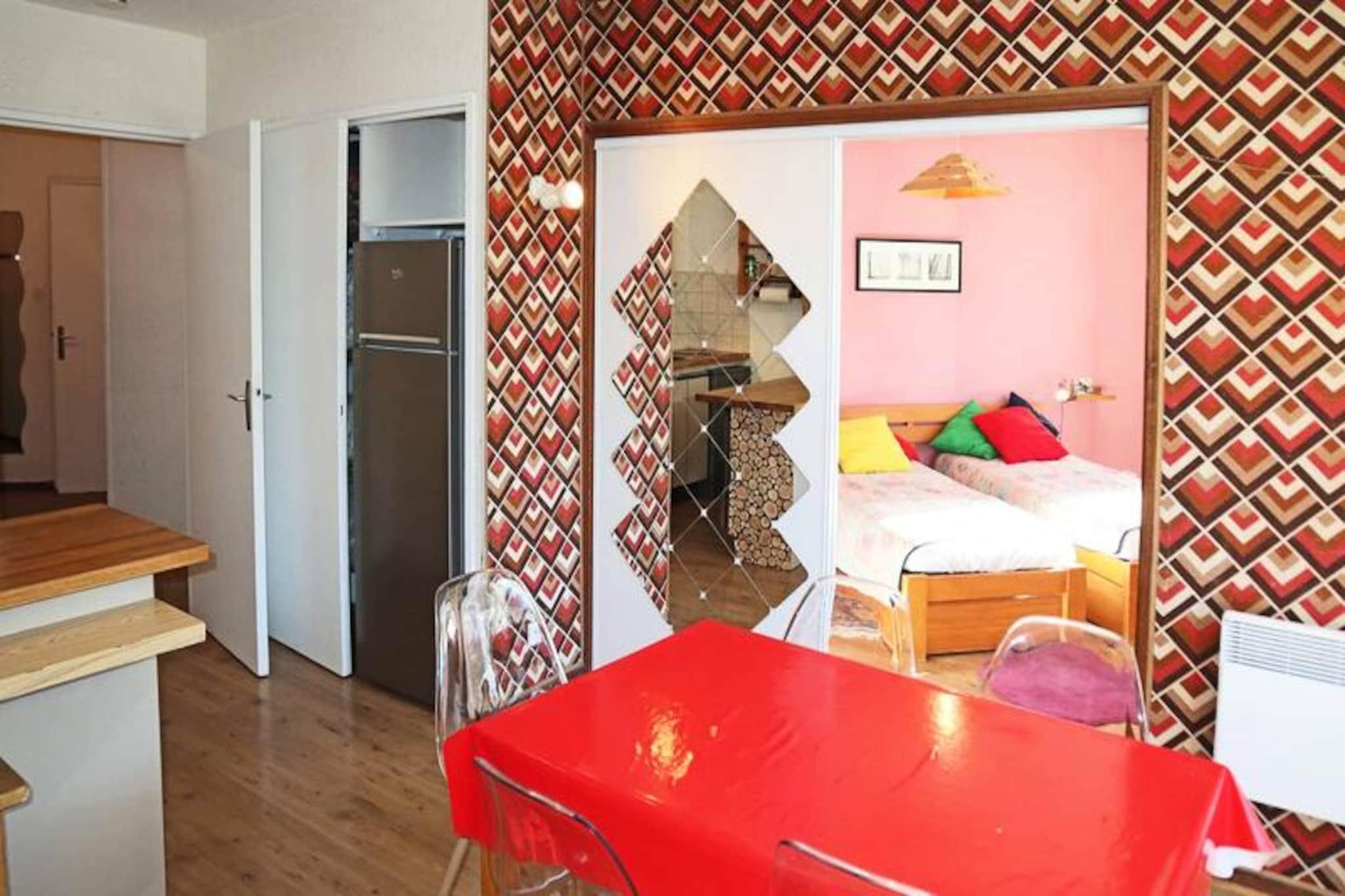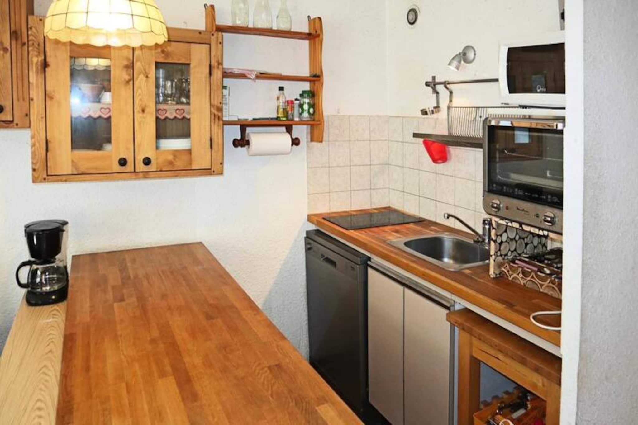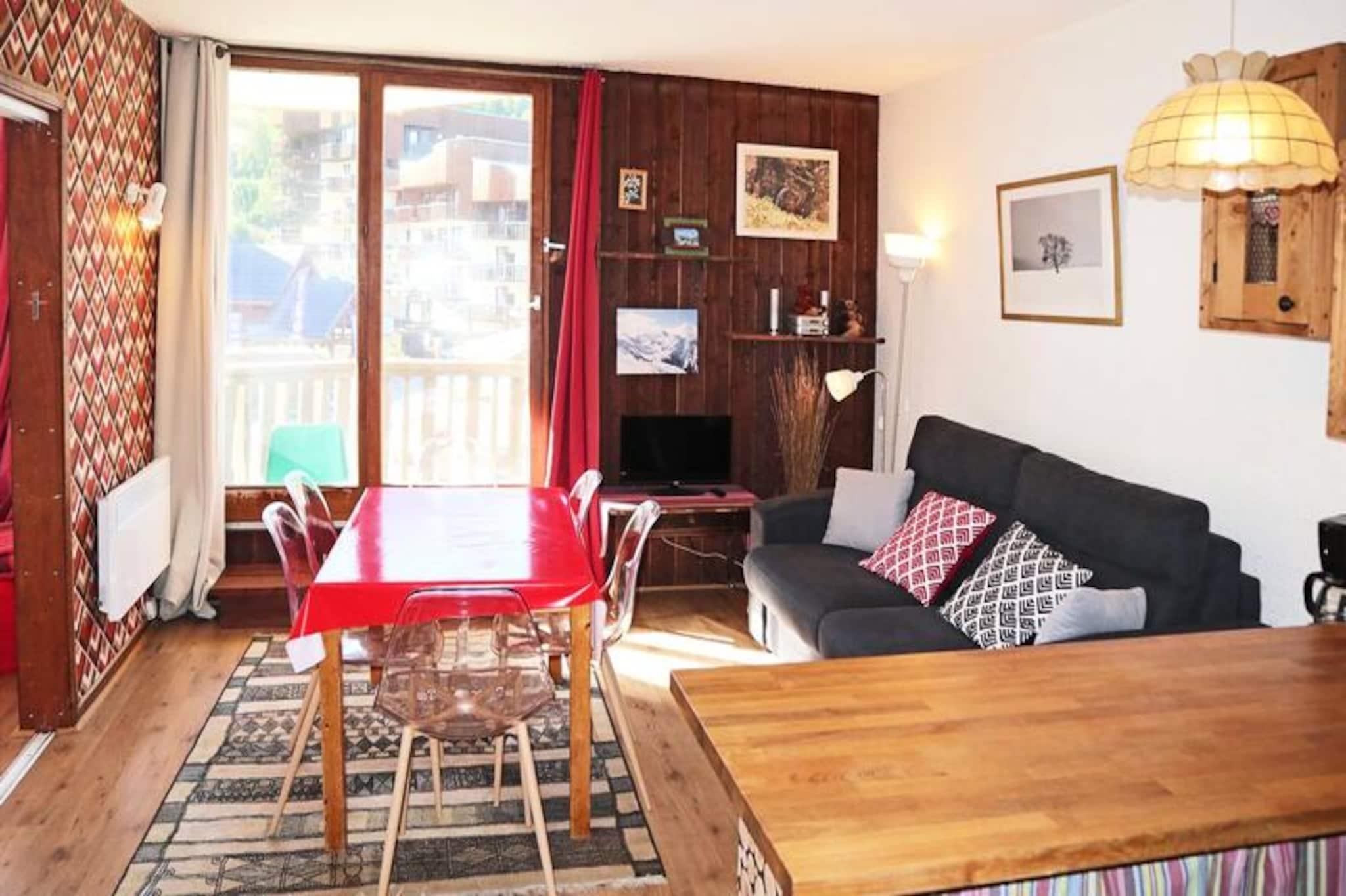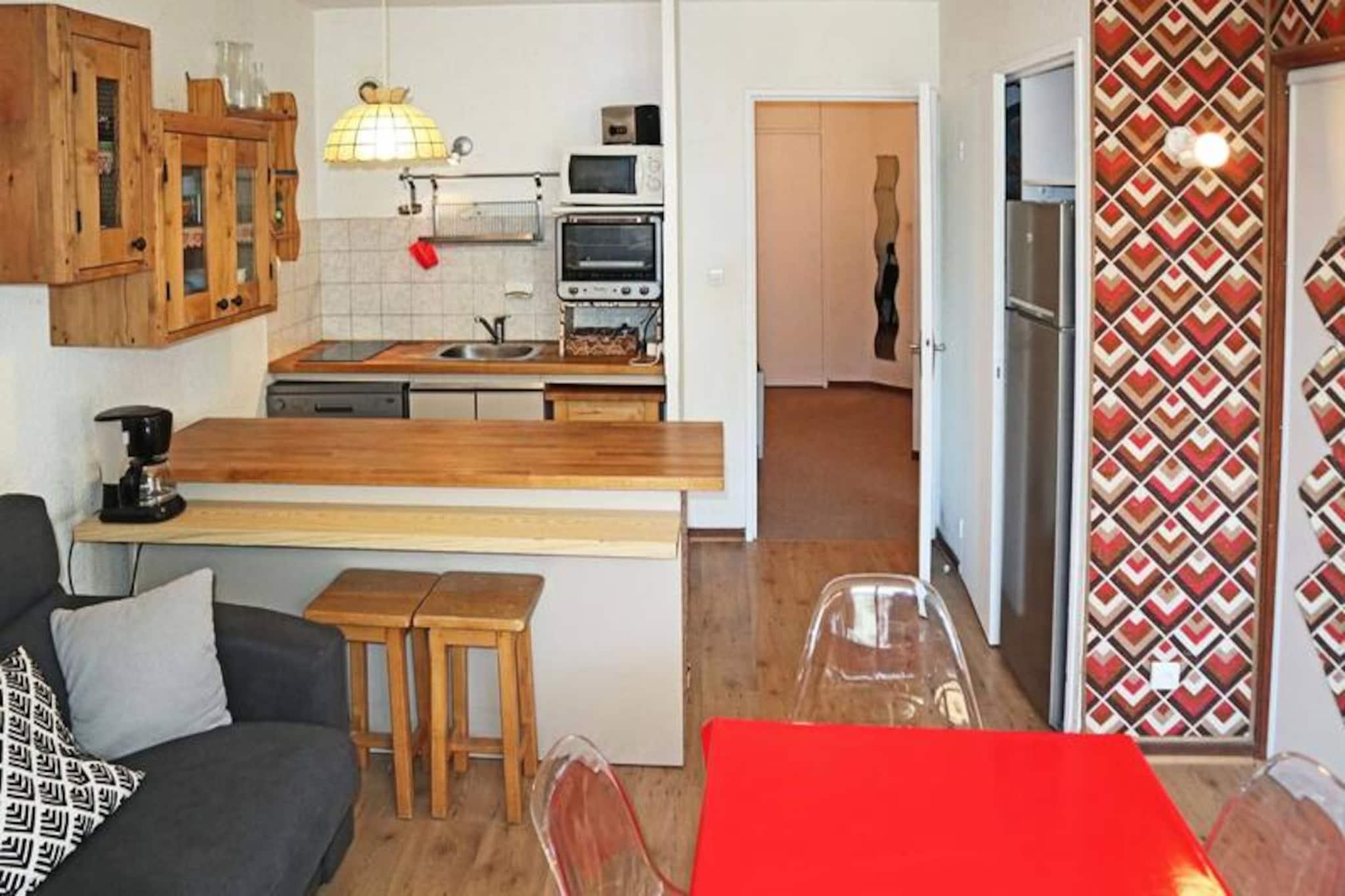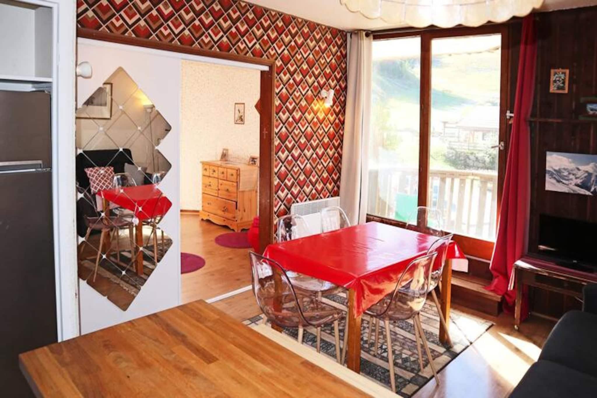 Højt over feriestedets travle hjerte tilbyder denne charmerende toværelses lejlighed et hyggeligt tilflugtssted for op til seks gæster. Beliggende på anden sal i boligen kombinerer den bekvemmelighed med en betagende udsigt fra den rummelige balkon med udsigt over pisterne og den livlige landsby nedenfor. Uanset om du er her for at nyde spændingen ved skiløb eller blot slappe af midt i den alpine skønhed, tilbyder denne ejendom de perfekte rammer for din bjergferie. \n\nIndenfor finder du en gennemtænkt planløsning, der imødekommer komfort og praktisk anvendelighed. Sovelkoven har to enkeltsenge, ideel til børn eller venner, mens soveværelset tilbyder to enkeltsenge til afslappende nætter. Det åbne køkken og opholdsstue, udstyret med moderne apparater, inkluderer en dobbelt sovesofa, hvilket gør det til et alsidigt rum til spisning, afslapning eller planlægning af dit næste eventyr. Et separat badeværelse og toilet sikrer privatliv og bekvemmelighed for alle gæster. \n\nTræd udenfor og fordyb dig i feriestedets pulserende atmosfære. Med shoppingarkaden lige nedenfor er alt, hvad du behøver, lige ved hånden, fra restauranter og caféer til skiudlejningsbutikker og lokale butikker. Pisterne er kun få øjeblikke væk og lover endeløse dage med skiløb, snowboarding eller udforskning af de uberørte stier. \n\nUanset om du søger actionfyldte dage eller fredfyldte aftener under den stjerneklare alpehimmel, inviterer denne lejlighed dig til at opleve det bedste af de franske alper. Skab uforglemmelige minder på en beliggenhed, der blander komfort, bekvemmelighed og fantastisk naturlig skønhed.