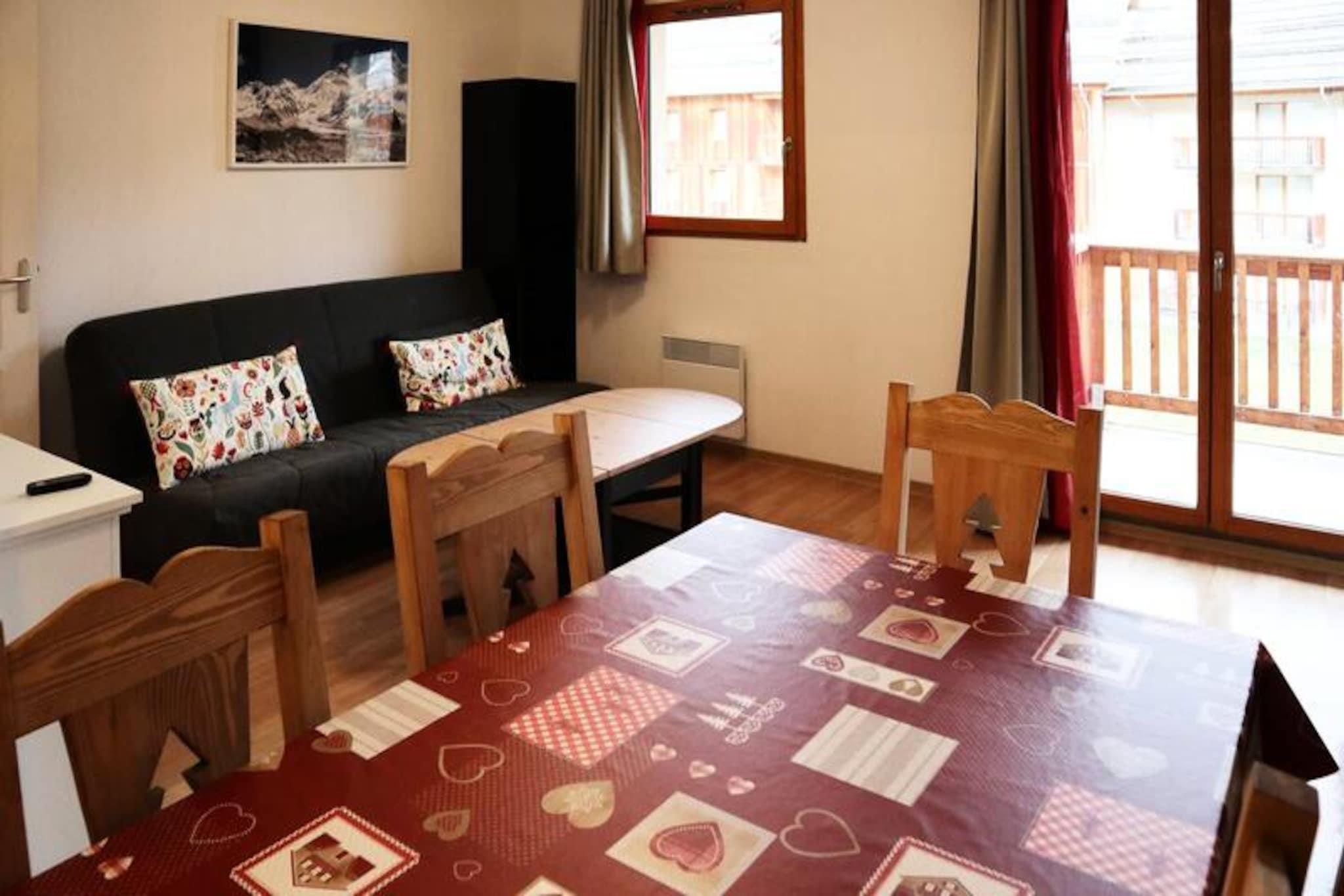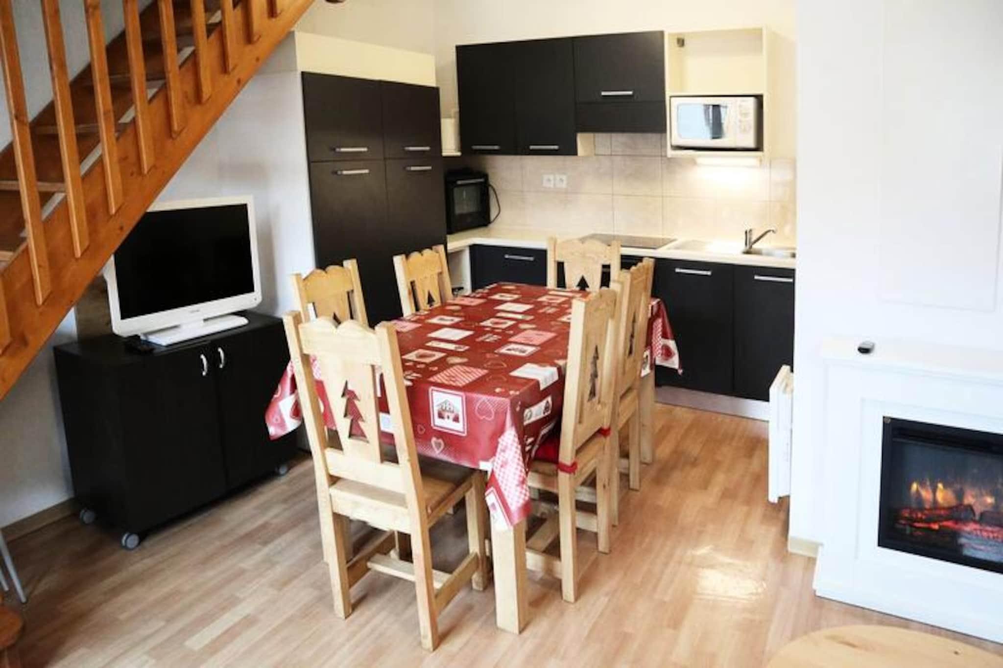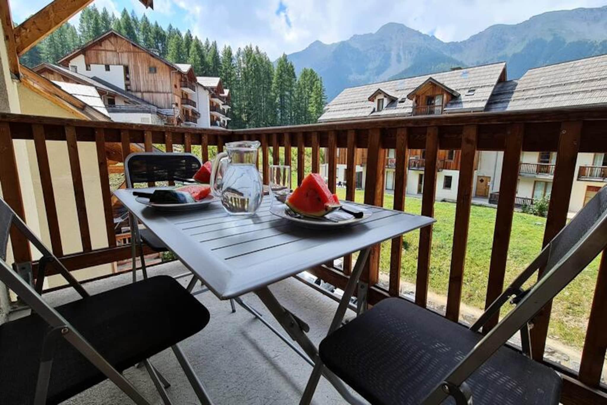 Højt over Les Orres' fredfyldte landskaber tilbyder denne charmerende duplexlejlighed i 1800 meters højde et perfekt alpint tilflugtssted for familier og grupper. Med sit varme, indbydende interiør og den betagende udsigt over bjergene fra balkonen er det et paradis for dem, der søger både eventyr og afslapning. Boligen kan prale af adgang til en indendørs swimmingpool, hvilket gør den til en destination for uforglemmelige ferier året rundt. \n\nLejligheden er omhyggeligt designet til at rumme op til otte gæster. Stueetagen har en hyggelig stue med en dobbelt sovesofa, et åbent køkken, der er ideelt til at tilberede solide måltider, og en balkon, der inviterer dig til at nyde skønheden i de omkringliggende bjergtoppe. Ovenpå finder du et komfortabelt soveværelse med dobbeltseng, et andet soveværelse med to enkeltsenge og en ekstra sovealkove med køjesenge, hvilket sikrer rigelig plads til alle. Badeværelset og det separate toilet bidrager til bekvemmeligheden, mens den sydvestvendte orientering fylder rummet med naturligt lys. \n\nPerfekt beliggende nær daginstitutionen og skiskolen er denne ejendom ideel for familier med små børn eller begyndere, der er ivrige efter at komme ud på pisterne. Om vinteren er de uberørte skiløjper i Les Orres kun få øjeblikke væk, mens sommeren forvandler området til et paradis for vandrere og mountainbikere. Den pulserende landsbyatmosfære kombineret med roen i bjergene skaber en unik blanding af spænding og fred. \n\nUanset om du er her for at grave dig gennem frisk puddersne, udforske alpine stier eller blot slappe af ved poolen, tilbyder denne duplexlejlighed den perfekte base for dine bjergeventyr.