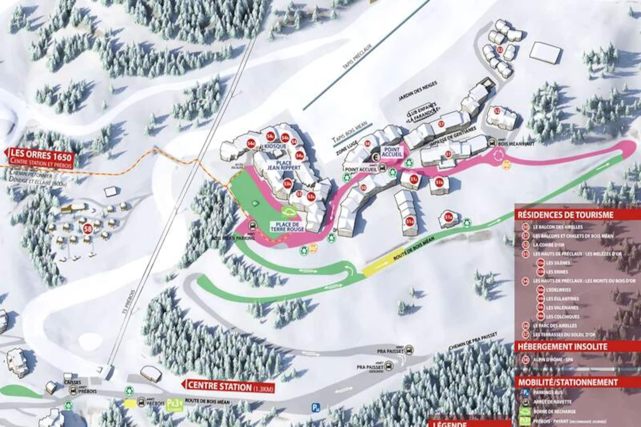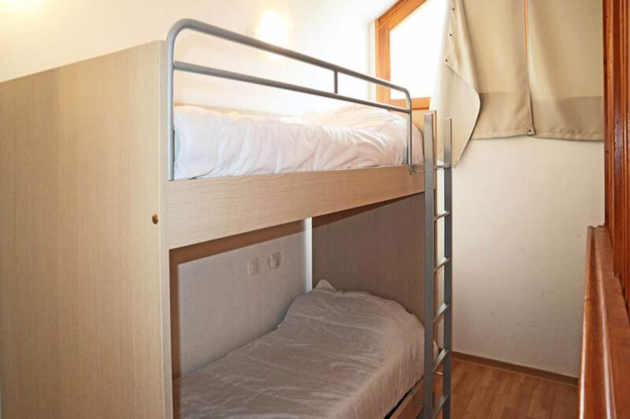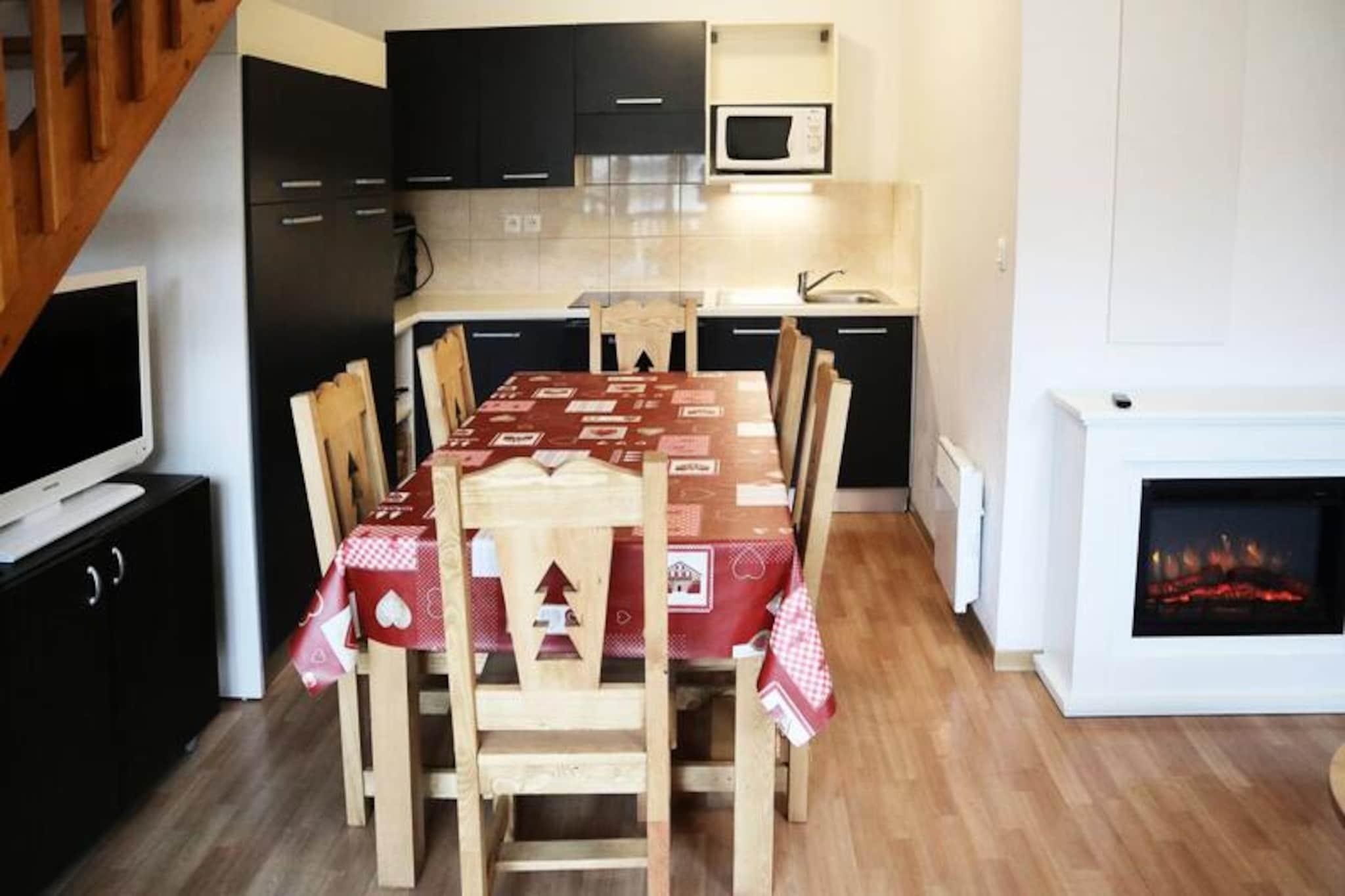 Højt over Les Orres' fredfyldte landskaber tilbyder denne charmerende duplexlejlighed i 1800 meters højde et perfekt alpint tilflugtssted for familier og grupper. Med sit varme, indbydende interiør og den betagende udsigt over bjergene fra balkonen er det et paradis for dem, der søger både eventyr og afslapning. Boligen kan prale af adgang til en indendørs swimmingpool, hvilket gør den til en destination for uforglemmelige ferier året rundt. \n\nLejligheden er omhyggeligt designet til at rumme op til otte gæster. Stueetagen har en hyggelig stue med en dobbelt sovesofa, et åbent køkken, der er ideelt til at tilberede solide måltider, og en balkon, der inviterer dig til at nyde skønheden i de omkringliggende bjergtoppe. Ovenpå finder du et komfortabelt soveværelse med dobbeltseng, et andet soveværelse med to enkeltsenge og en ekstra sovealkove med køjesenge, hvilket sikrer rigelig plads til alle. Badeværelset og det separate toilet bidrager til bekvemmeligheden, mens den sydvestvendte orientering fylder rummet med naturligt lys. \n\nPerfekt beliggende nær daginstitutionen og skiskolen er denne ejendom ideel for familier med små børn eller begyndere, der er ivrige efter at komme ud på pisterne. Om vinteren er de uberørte skiløjper i Les Orres kun få øjeblikke væk, mens sommeren forvandler området til et paradis for vandrere og mountainbikere. Den pulserende landsbyatmosfære kombineret med roen i bjergene skaber en unik blanding af spænding og fred. \n\nUanset om du er her for at grave dig gennem frisk puddersne, udforske alpine stier eller blot slappe af ved poolen, tilbyder denne duplexlejlighed den perfekte base for dine bjergeventyr.