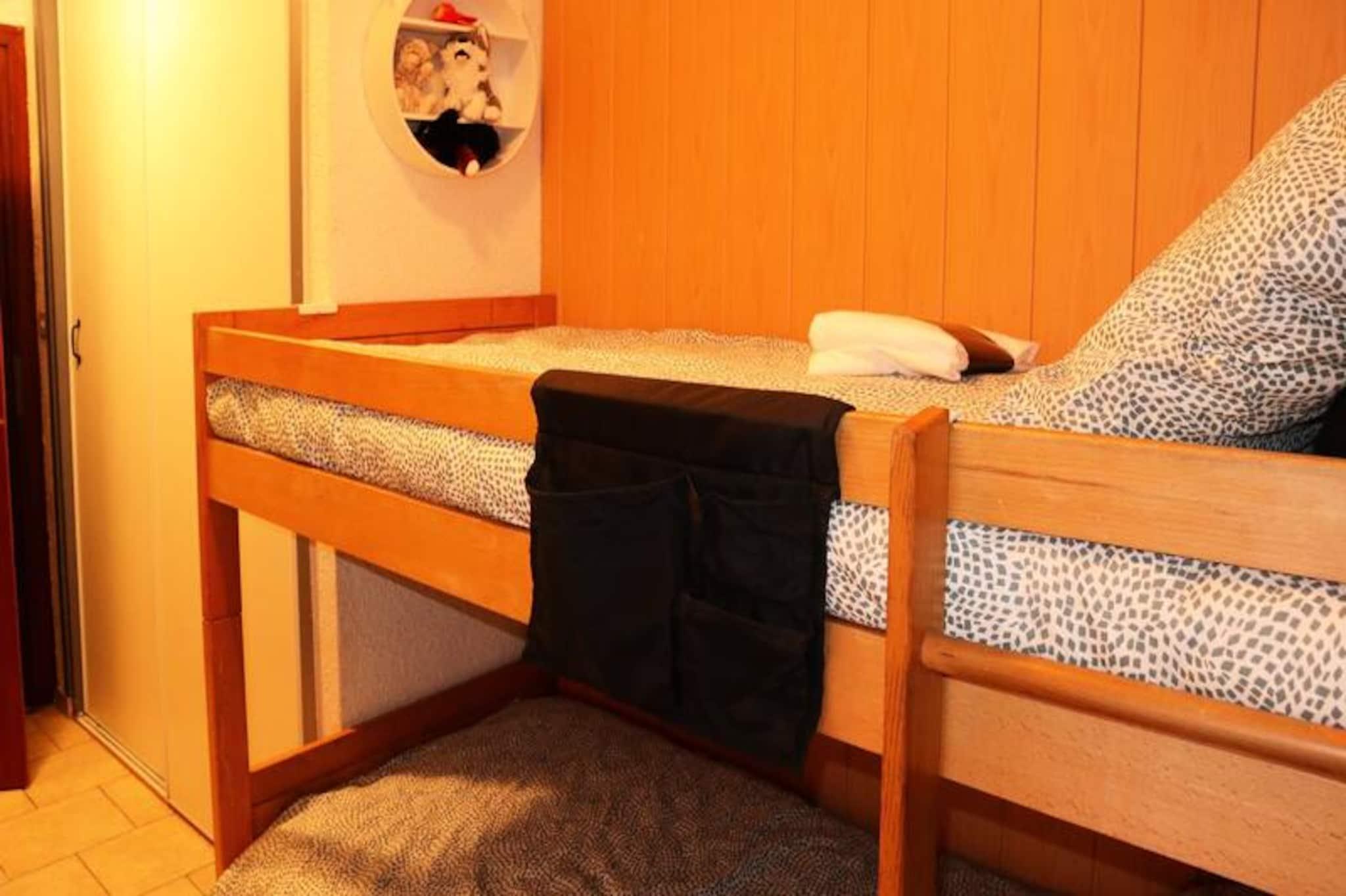 Højt over det travle hjerte af feriestedet tilbyder denne charmerende studiolejlighed på 7. sal i Les Cembros-residensen et perfekt alpint tilflugtssted med ski-in/ski-out-bekvemmelighed. Forestil dig at træde ud af din dør og direkte ud på pisterne, med feriestedets pulserende energi lige nedenfor. Den vestvendte balkon tilbyder et fantastisk panorama over dalen, hvor gyldne solnedgange maler landskabet i betagende farver og skaber de ideelle rammer for en afslappende aften efter en dag med eventyr. Studiolejligheden er designet til komfortabelt at rumme op til fire gæster og har en hyggelig sovealkove med to enkeltkøjesenge og en stue med en dobbeltsovesofa. Det fuldt udstyrede tekøkken inviterer dig til at tilberede solide måltider, mens det moderne brusebad med toilet sikrer alle hjemmets bekvemmeligheder. Rummet er omhyggeligt arrangeret for at maksimere komfort og funktionalitet, hvilket gør det til et indbydende paradis for familier eller små grupper. Beliggende direkte over indkøbscentret har du nem adgang til en række butikker, restauranter og afterski-muligheder, hvilket sikrer, at alt hvad du behøver er kun få skridt væk. Uanset om du er på pisterne om vinteren eller udforsker de naturskønne stier om sommeren, placerer denne beliggenhed dig i hjertet af al action. Vælg dette dejlige studie for dets uovertrufne bekvemmelighed, hyggelige atmosfære og spektakulære udsigt. Det er den perfekte base for at skabe uforglemmelige minder i de franske alper, hvor hvert øjeblik er indrammet af de omkringliggende bjergtoppes skønhed.