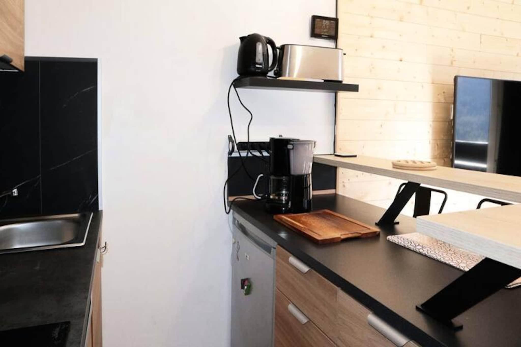 Højt over feriestedets pulserende hjerte tilbyder denne charmerende studiolejlighed på 8. og øverste sal et roligt tilflugtssted med en betagende udsigt mod syd. Forestil dig at vågne op til solen, der står op over bjergene, træde ud på din private balkon og indånde den friske alpine luft, inden du tager direkte til pisterne takket være den bekvemme ski-in/ski-out-adgang. Uanset om du er her for spændingen ved skiløb eller feriestedets livlige atmosfære, er dette hyggelige tilflugtssted perfekt placeret til at få mest muligt ud af dit ophold. Studiolejligheden er omhyggeligt renoveret og designet til komfort og har plads til op til fire gæster. Sovelkoven har to enkeltsenge, mens stuen tilbyder en komfortabel sovesofa til to. Det åbne køkken er fuldt udstyret, hvilket gør det nemt at tilberede måltider efter en dag med eventyr. Moderne faciliteter såsom vaskemaskine, tørretumbler og separat toilet sikrer et problemfrit ophold, mens det stilfulde brusebad tilføjer et strejf af luksus. Træd udenfor, og du vil være omgivet af feriestedets pulserende energi. Butikker, restauranter og aktiviteter ligger kun få skridt væk og tilbyder alt fra lokale delikatesser til afterski-underholdning. Om sommeren forvandles området til et paradis for vandrere og naturelskere med stier, der fører til fantastiske alpine udsigter. Uanset om du søger en actionfyldt ferie eller en fredelig flugt, kombinerer dette studie bekvemmelighed, komfort og en fantastisk udsigt for at skabe en uforglemmelig alpin oplevelse.