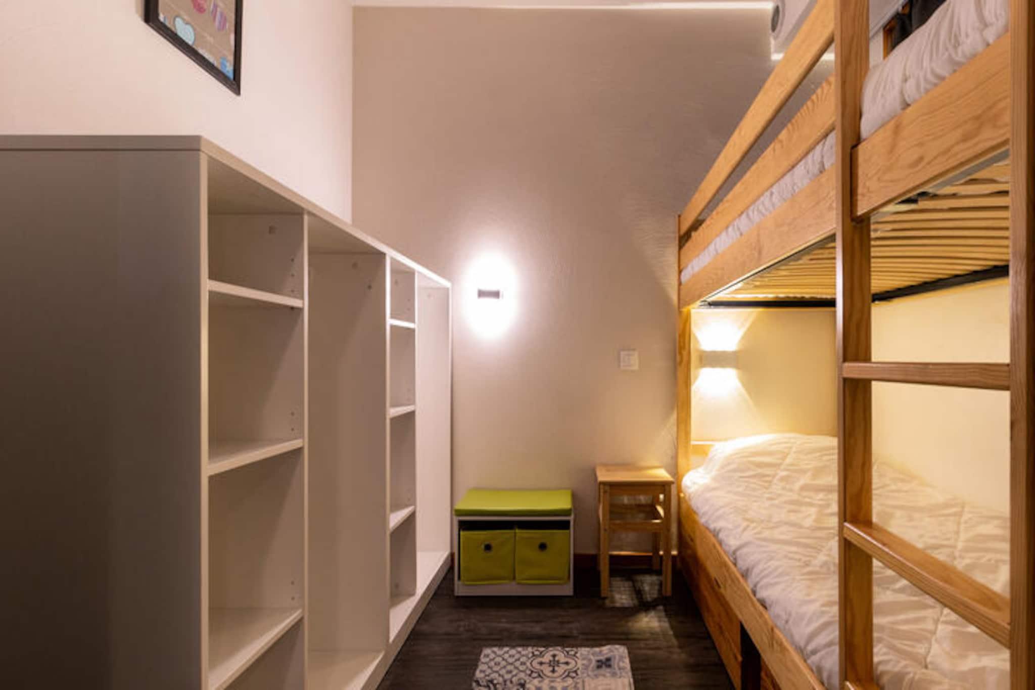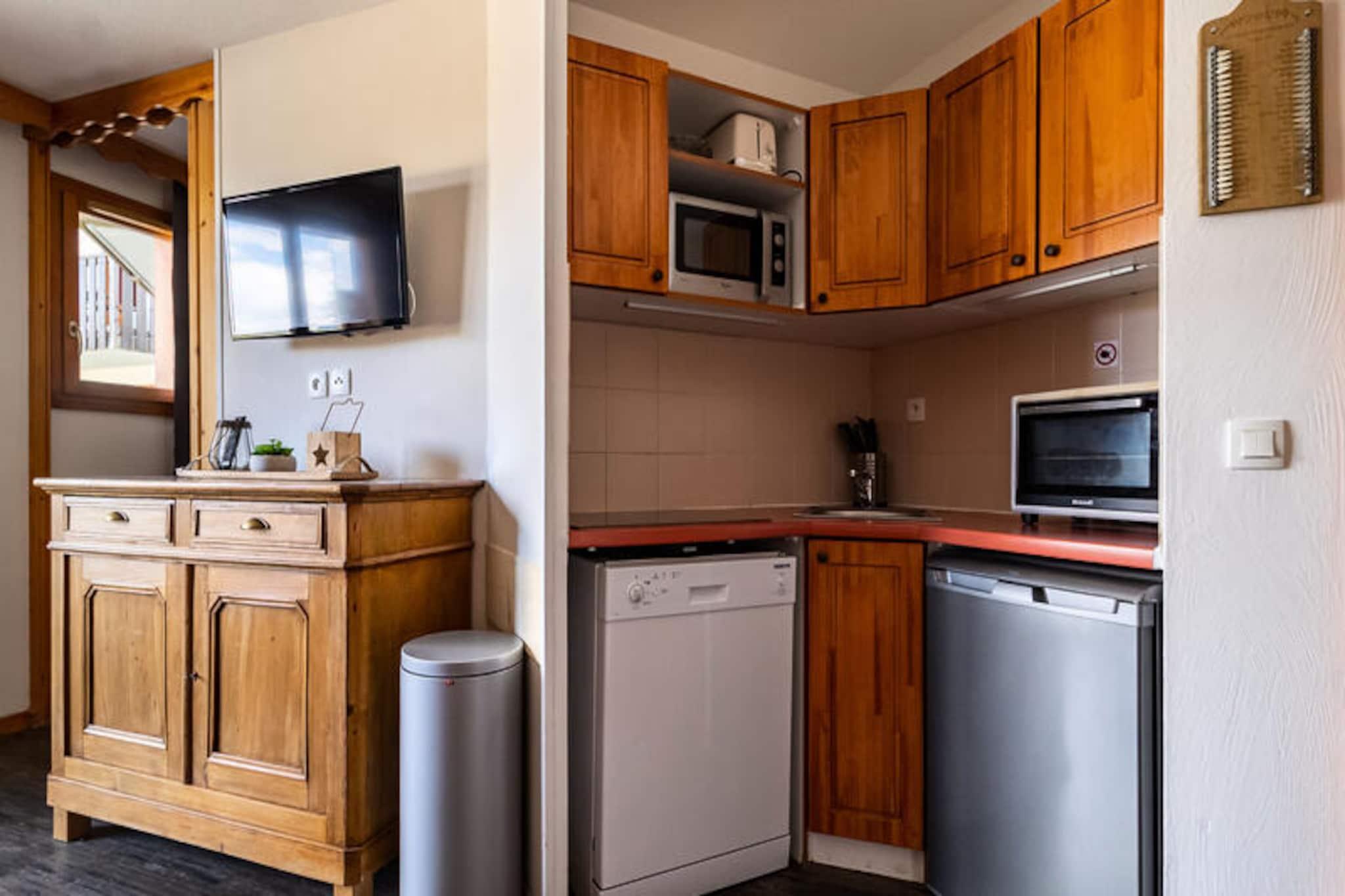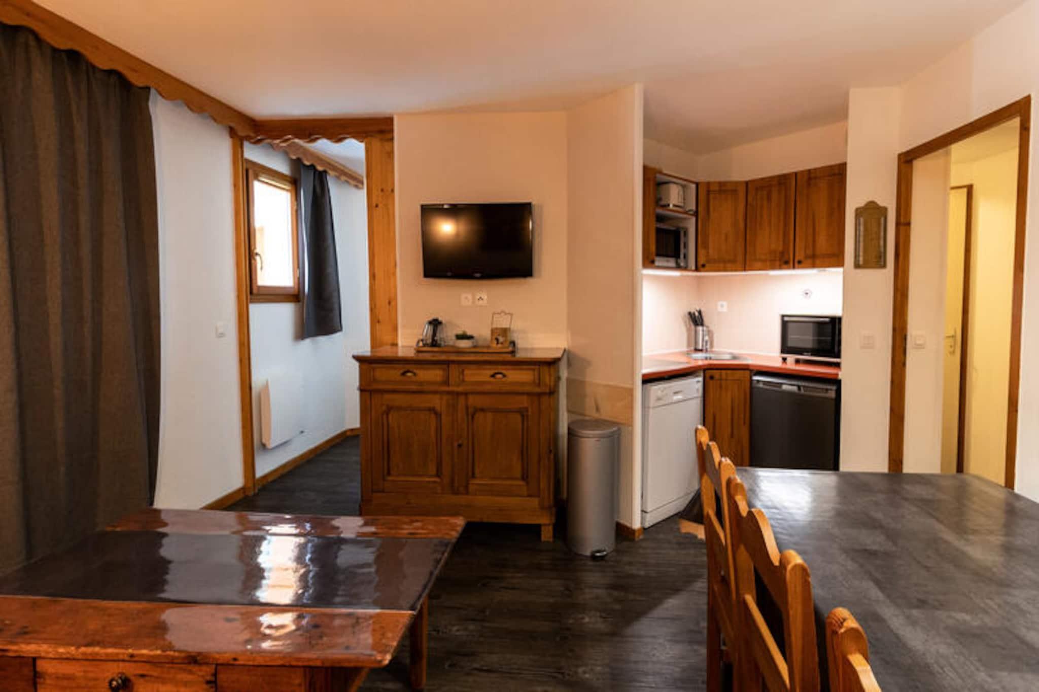 Højt beliggende i den fredfyldte alpelandsby Les Orres 1800 tilbyder denne charmerende lejlighed i Hauts de Préclaux-residensen en perfekt blanding af komfort og bekvemmelighed til din bjergferie. Omgivet af den pulserende atmosfære på Bois Méans centrale torv, finder du butikker, barer og restauranter kun få skridt væk, hvilket skaber en livlig, men afslappende atmosfære under hele dit ophold. Uanset om du søger vinterspænding eller sommerro, lover denne destination uforglemmelige øjeblikke i hjertet af de franske alper. \n\nDen 46 m² store nordvendte lejlighed er omhyggeligt designet til at rumme op til otte gæster, hvilket gør den ideel til familier eller vennegrupper. Indretningen inkluderer et hyggeligt soveværelse med dobbeltseng, to sovealkover - en med en dobbeltseng og en anden med køjesenge - og en sovesofa i stuen. Det fuldt udstyrede køkken med opvaskemaskine, raclettegrill og andre moderne apparater sikrer, at du kan tilberede solide måltider efter en dag med eventyr. Slap af i opholdsstuen med et fladskærms-tv, eller gå udenfor for at nyde den friske bjergluft. Yderligere faciliteter inkluderer en privat underjordisk parkeringsplads og et skirum for din bekvemmelighed.\n\nGæsterne har også adgang til boligens opvarmede udendørs swimmingpool, saunakabiner og fitnessrum, der er åbne året rundt for ultimativ afslapning. Om vinteren gør ejendommens direkte adgang til snefronten og pisterne det til en drøm for skientusiaster, mens sommergæster kan udforske vandrestier, mountainbikeruter og betagende alpine landskaber.\n\nTrods igangværende byggeri i området forbliver denne lejlighed et indbydende tilflugtssted, hvor du kan skabe dine værdsatte minder. Uanset om du er tiltrukket af spændingen ved pisterne eller bjergenes fredelige charme, tilbyder denne bolig den perfekte base for dit alpine eventyr.