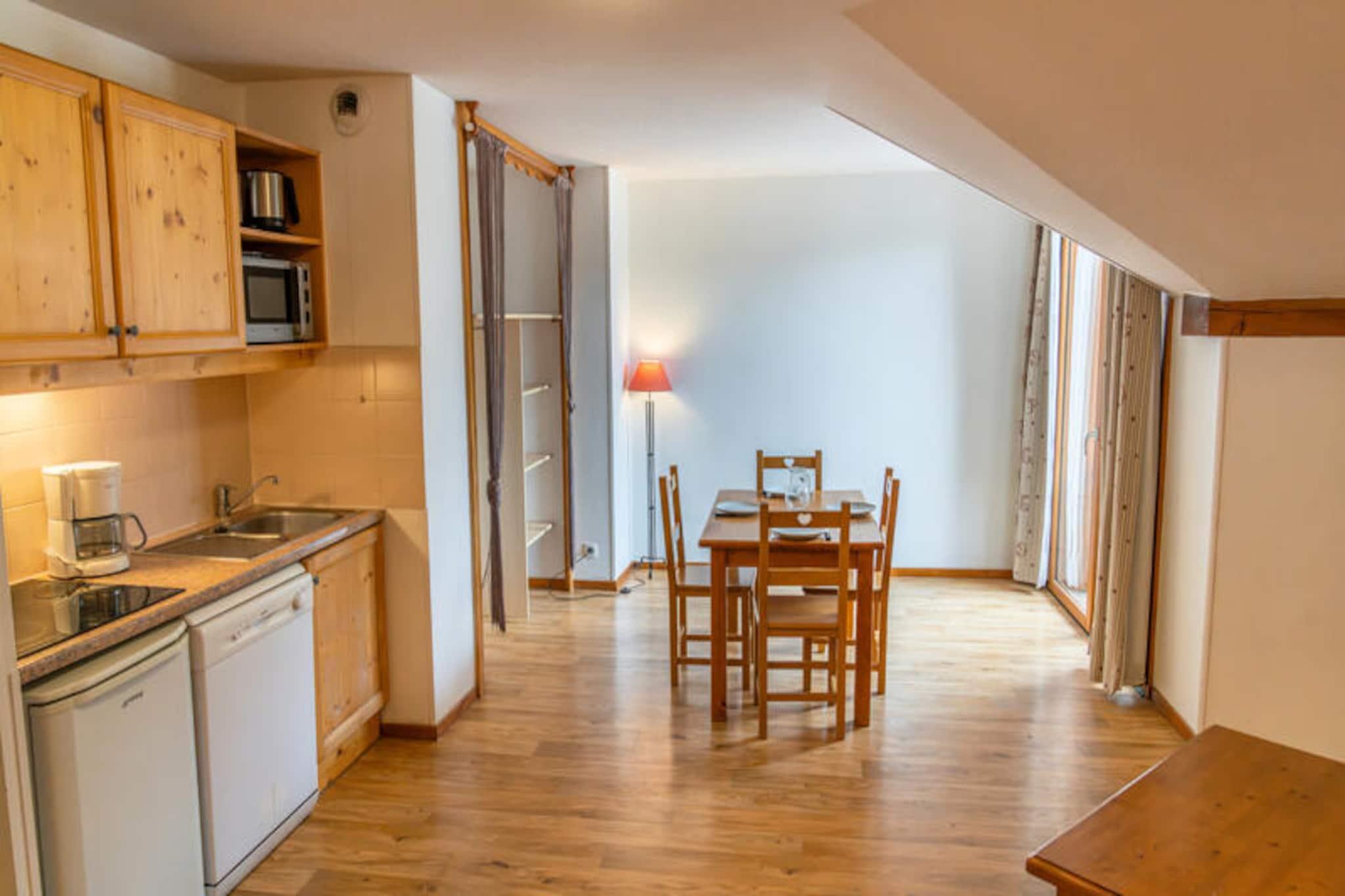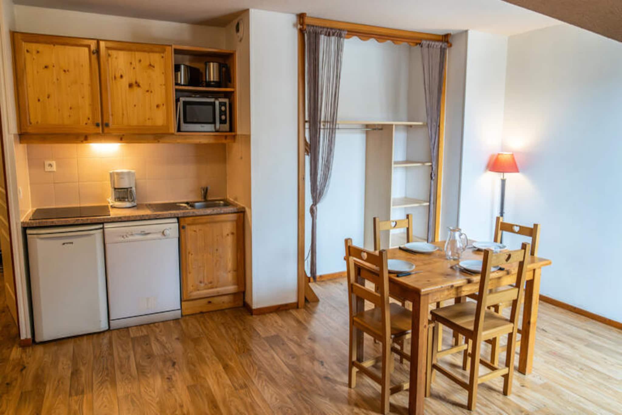 I hjertet af det pulserende Bois Méan-distrikt, i en højde af 1.800 meter, tilbyder denne charmerende studiolejlighed det perfekte alpine tilflugtssted for op til fire gæster. Beliggende i den berømte Hauts de Préclaux-residens kombinerer ejendommen komfort, bekvemmelighed og direkte adgang til de snedækkede pister, hvilket gør den til et ideelt valg for både skientusiaster og bjergentusiaster. Fra sin tredje sal i Eglantines-bygningen kan du nyde den livlige atmosfære på det centrale torv, hvor butikker, bagerier og restauranter skaber en varm og indbydende atmosfære. Lejligheden er omhyggeligt designet med et hyggeligt soveområde med to enkeltsenge og en stue med en udtrækssovesofa, der kan laves om til en dobbeltseng. Et fuldt udstyret køkken giver dig mulighed for at tilberede solide måltider efter en dag på pisterne, mens stue-/spisestuen med fjernsyn inviterer dig til at slappe af. Badeværelset og det separate toilet bidrager til rummets praktiske anvendelighed, og rigelig opbevaringsplads sikrer et ryddeligt ophold. For skientusiaster gør det private skirum og ski-in/ski-out-adgang det nemt at komme ud på pisterne. Gæster på residensen har også ubegrænset adgang til den opvarmede udendørs swimmingpool, saunakabiner og fitnessrum, der tilbyder foryngelse efter aktive dage i bjergene. Uanset om du besøger stedet om vinteren for at stå på ski eller om sommeren for at udforske de betagende stier, er wellness-området en perfekt måde at slappe af på. Der er parkeringskælder til rådighed for ekstra bekvemmelighed, hvilket sikrer en stressfri ankomst og afrejse. Med sin uovertrufne beliggenhed, moderne faciliteter og adgang til både eventyr og afslapning lover denne studiolejlighed i Hauts de Préclaux-residensen en uforglemmelig alpin flugt for familier, par eller små grupper.