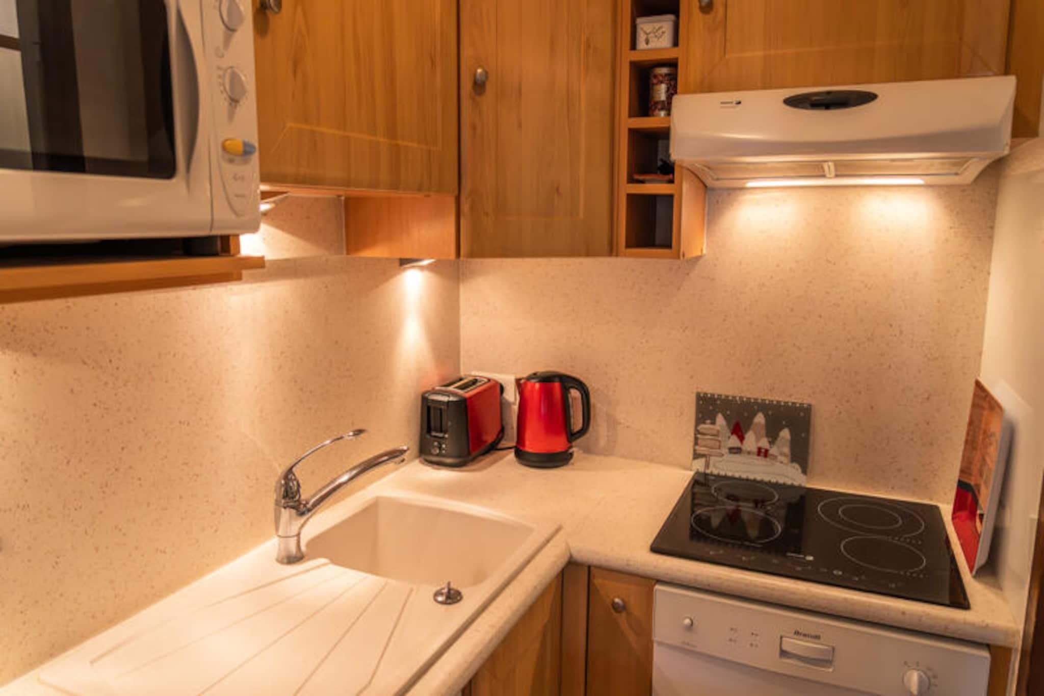 Højt over den maleriske Embrun-dal tilbyder denne elegante studiolejlighed i Les Orres 1650 en rolig bjergferie med betagende panoramaudsigt. Forestil dig at vågne op til de gyldne stråler fra Hautes-Alpes-solen, der strømmer ind gennem din sydøstvendte balkon, hvor du kan nippe til din morgenkaffe, mens du betragter de majestætiske tinder. Uanset om du søger spændende snesport eller rolige alpine øjeblikke, placerer denne bolig dig i hjertet af det hele. \n\nDet 30 m² store studio er omhyggeligt designet til at rumme op til seks gæster, hvilket gør det perfekt til familier eller små grupper. Den hyggelige sovealkove har en køjeseng, der er ideel til børn, mens to komfortable dobbeltsovesofaer giver ekstra sovemuligheder. Det fuldt udstyrede køkken med opvaskemaskine og mikrobølgeovn sikrer, at du kan tilberede solide måltider efter en dag med eventyr. Det renoverede badeværelse med badekar tilbyder det perfekte sted at slappe af. \n\nLejligheden ligger på 9. sal og giver nem adgang til snefronten og stoleliftene via en 19 meter høj gangbro, hvilket gør dine skidage ubesværede. Efter en aktiv dag kan du trække dig tilbage til boligens indbydende fællesområder, hvor du kan nyde en hyggelig pejs, et spil billard eller det solrige solarium. Med butikker, restauranter og aktiviteter som mountainbiking, ziplining og trætopbaner kun få skridt væk, er der noget for enhver smag. \n\nDenne ejendom har en privat underjordisk parkeringsplads og et skirum, hvilket sikrer en stressfri ferieoplevelse. Uanset om du er her for at køre på pisterne eller nyde den alpine charme, lover denne bolig uforglemmelige minder i hjertet af Les Orres 1650.