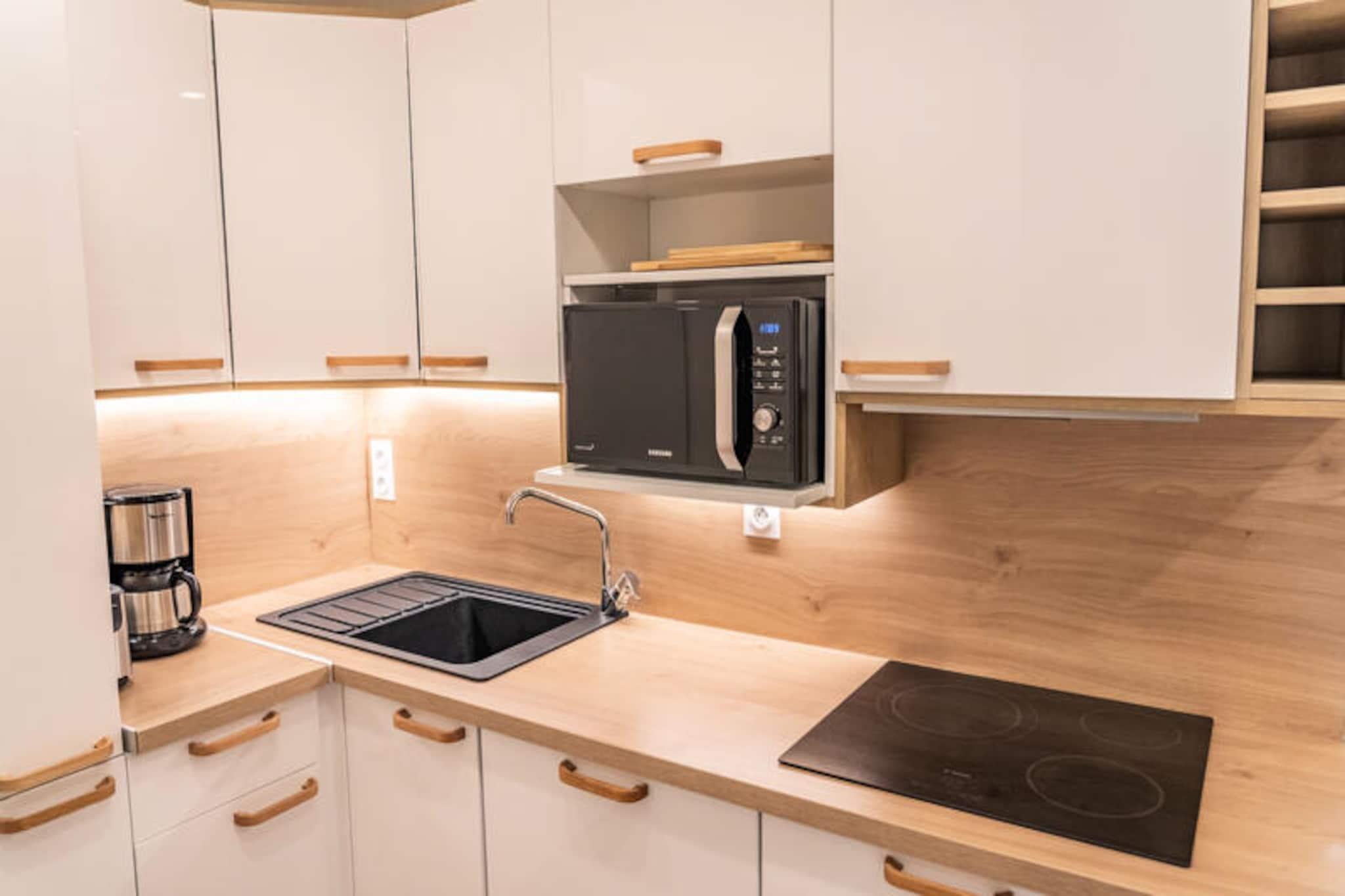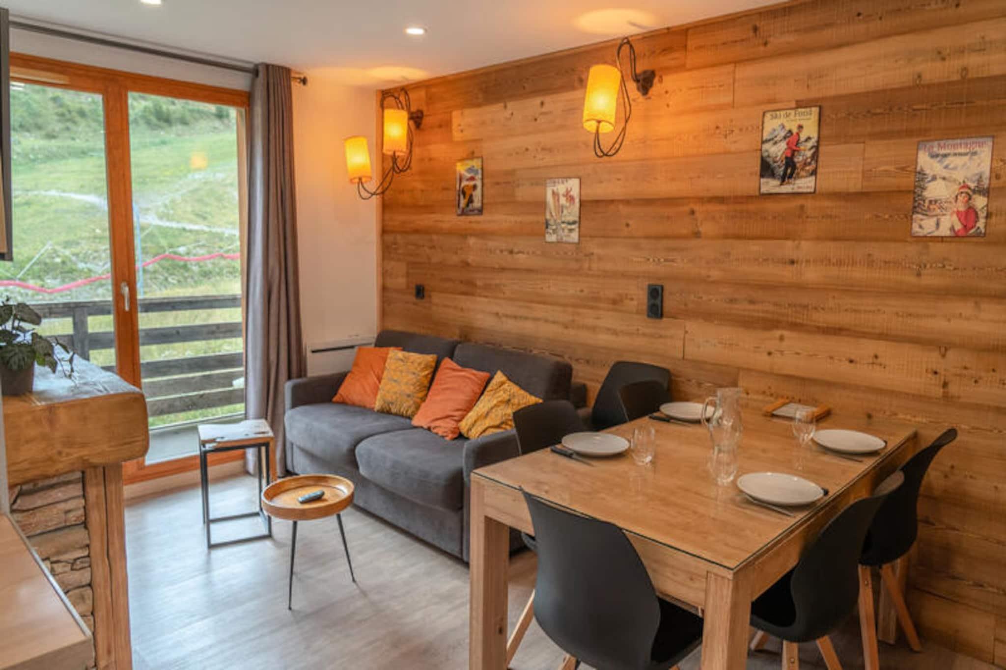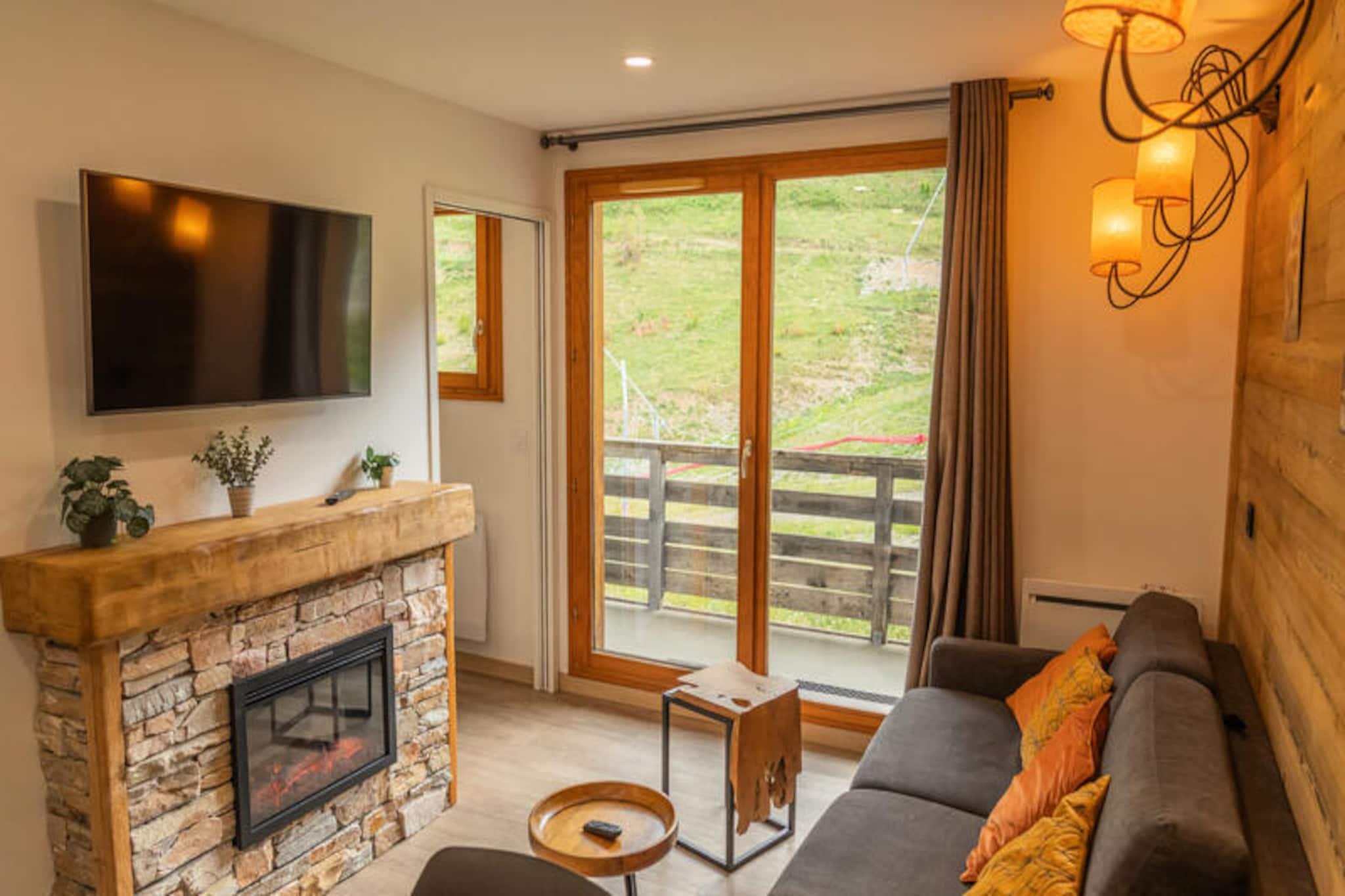 I hjertet af de sydlige Alper, hvor den friske bjergluft møder varmen fra alpin charme, lover denne smukt renoverede lejlighed i Hauts de Préclaux-residensen en uforglemmelig ferie. Beliggende i 1.800 meters højde i det pulserende Les Orres 1800, tilbyder den en perfekt blanding af moderne komfort og naturlig skønhed. Fra din sydøstvendte balkon kan du nyde den fredfyldte udsigt over skiløjperne og lærkeskovene, der sætter scenen for rolige morgener under den alpine sol. \n\nTræd indenfor for at opdage et hyggeligt opholdsrum med en blød sovesofa, et vægmonteret fjernsyn og en elektrisk pejs af sten og træ, der skaber en indbydende atmosfære. Spiseområdet har komfortabel plads til seks personer, hvilket gør det ideelt til familiesammenkomster eller aftener med venner. Det moderne køkken er fuldt udstyret med et stort køleskab, Nespresso-maskine, raclettegrill og mere, så du har alt, hvad du behøver for at tilberede solide bjergmåltider. Sovearrangementet omfatter et soveværelse med dobbeltseng og en sovealkove med to enkeltsenge, alle med sengetøj af høj kvalitet. Et rummeligt badeværelse med bruseniche tilbyder det perfekte tilflugtssted efter en dag på pisterne.\n\nDenne ski-in/ski-out-ejendom tilbyder uovertruffen bekvemmelighed med et privat skirum og direkte adgang til pisterne lige uden for bygningen. Gæsterne har også adgang til ejendommens opvarmede udendørs pool, saunahytter og fitnessområde, der er åbne sæsonbestemt for både vinter- og sommerophold. To indendørs parkeringspladser med elevatoradgang gør ankomst og afgang ubesværet.\n\nBeliggende på den livlige centrale plads i Les Orres 1800, finder du alt hvad du behøver kun få skridt væk - restauranter, barer, butikker og underholdning. For et skifte af landskab tager en naturskøn 15-minutters gåtur dig til Les Orres 1650. Uanset om du er her for spændende vintersport eller fredelige sommervandreture, tilbyder denne lejlighed den perfekte base for dine alpine eventyr.