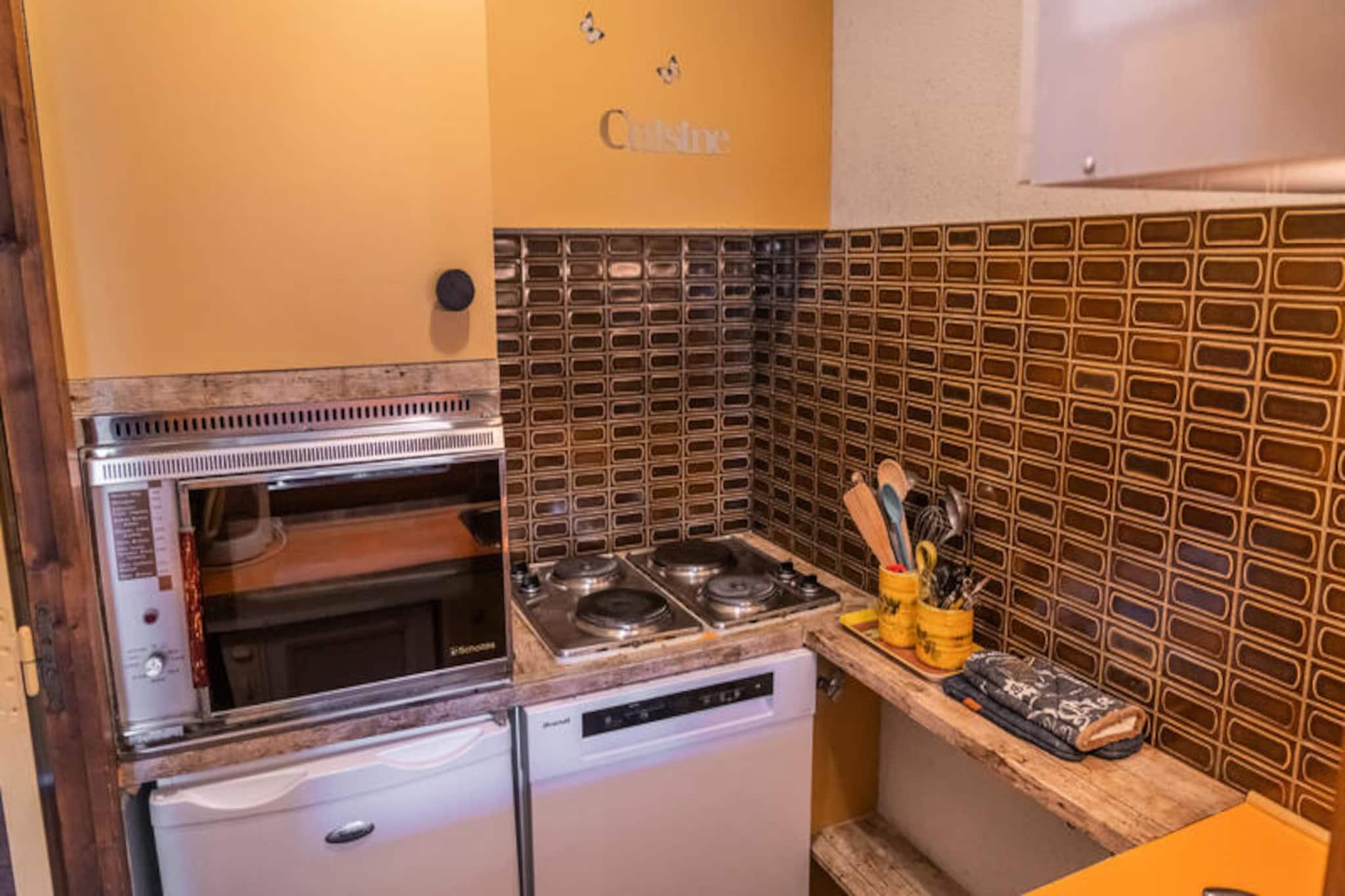 Højt over den maleriske Embrun-dal inviterer denne elegante studiolejlighed i Les Orres 1650 dig til at opleve Hautes-Alpes charme i al dens pragt. Forestil dig at vågne op til det solbeskinnede panorama af majestætiske bjerge fra din sydvendte balkon, hvor hvert øjeblik føles som et postkort, der kommer til live. Uanset om du nipper til en kaffe eller dykker ned i en god bog, sætter roen i dette oase på syvende sal tonen for en uforglemmelig alpin flugt. Kun få skridt væk fører resortets 19 meter høje gangsti dig ubesværet til snefronten og stoleliftene, hvilket sikrer, at dine skiløbseventyr begynder uden forsinkelse. \n\nIndenfor tilbyder lejligheden et gennemtænkt designet 30 m² stort rum, der komfortabelt rummer op til fire gæster. Sovelkoven tilbyder fleksible muligheder, herunder en dobbelt sovesofa, udtrækssenge og en sammenklappelig skrivebordsseng, der sikrer afslappende nætter for alle. Det fuldt udstyrede køkken med opvaskemaskine, mikrobølgeovn/grill og raclettegrill er perfekt til at tilberede solide måltider efter en dag på pisterne. Den hyggelige opholdsstue inviterer dig til at slappe af ved pejsen eller udfordre vennerne til et spil billard, mens badekarret på badeværelset tilbyder et beroligende bad for at løsne trætte muskler.\n\nLes Orres 1650 er et pulserende feriested, hvor bekvemmelighed møder eventyr. Kun få meter fra din dør finder du butikker, restauranter og aktiviteter som mountainbiking, ziplining og trætop-eventyrbaner. Om vinteren lokker pisterne til spændende snesport, mens solariet tilbyder et solrigt paradis til at slappe af og genoplade. Med et privat skirum inkluderet forbliver dit udstyr sikkert og klar til action.\n\nUanset om du søger adrenalinfyldte dage eller rolige aftener under stjernerne, lover denne ejendom en problemfri blanding af komfort, stil og tilgængelighed i en af ??Frankrigs mest fantastiske alpine destinationer.