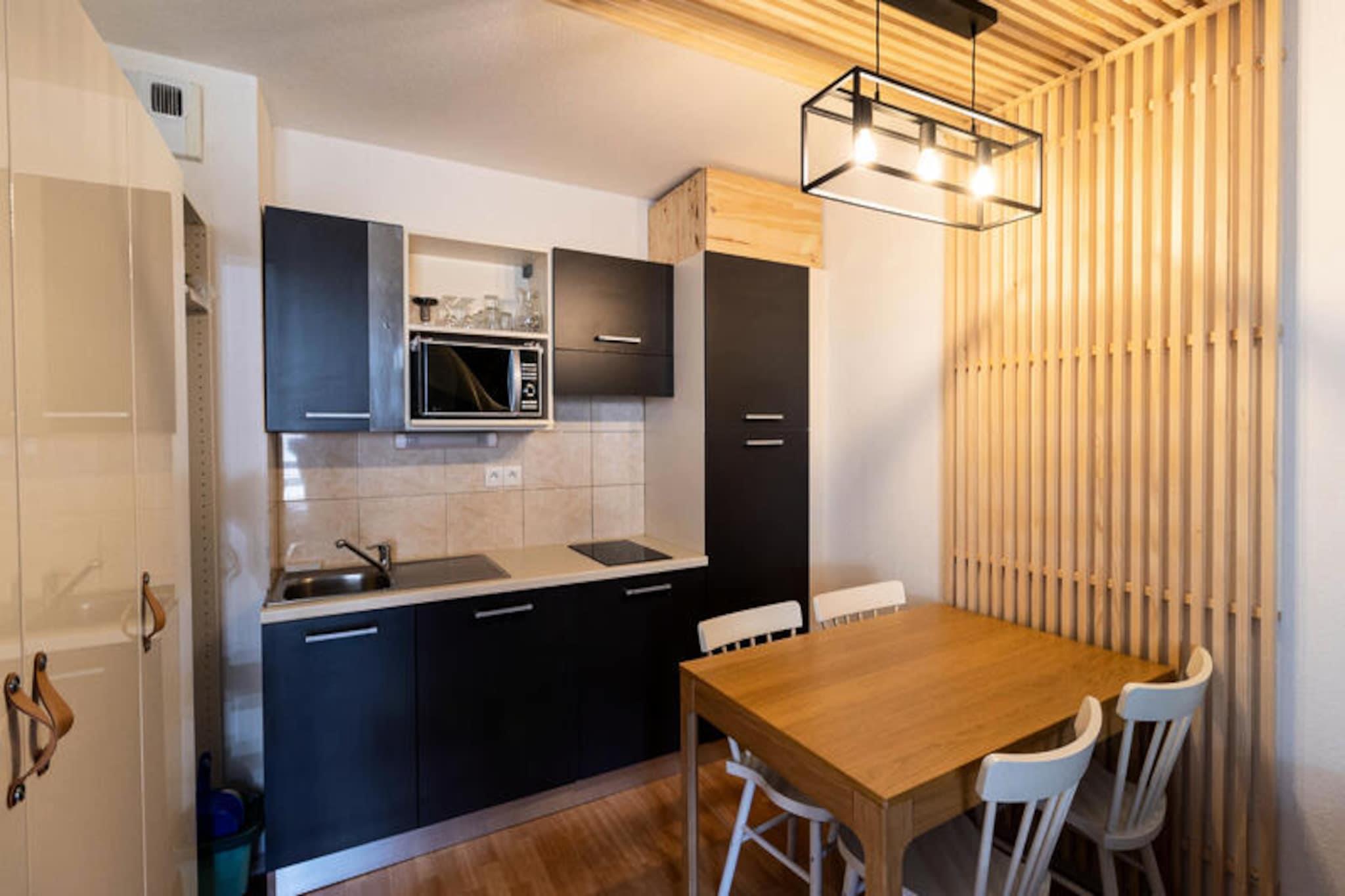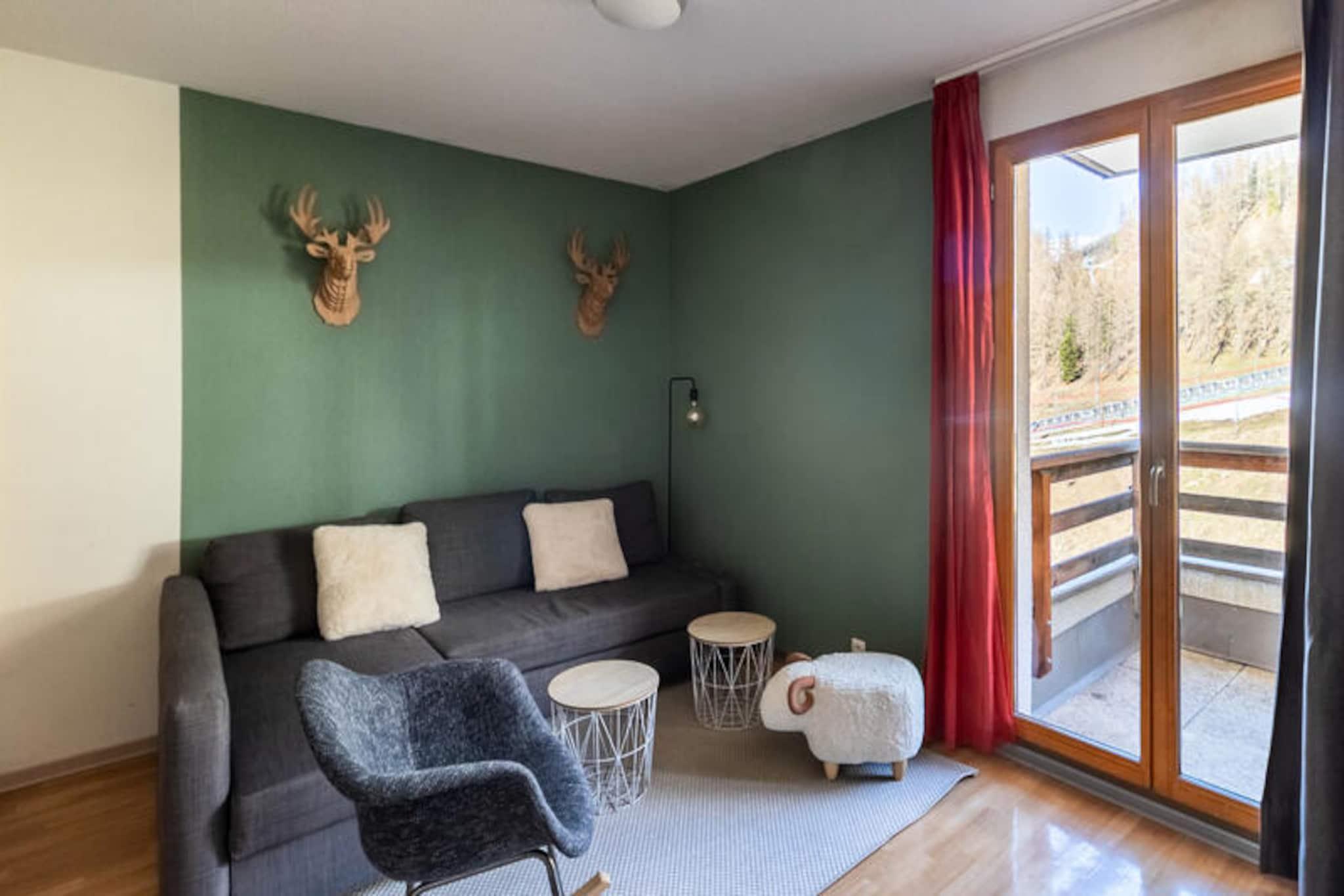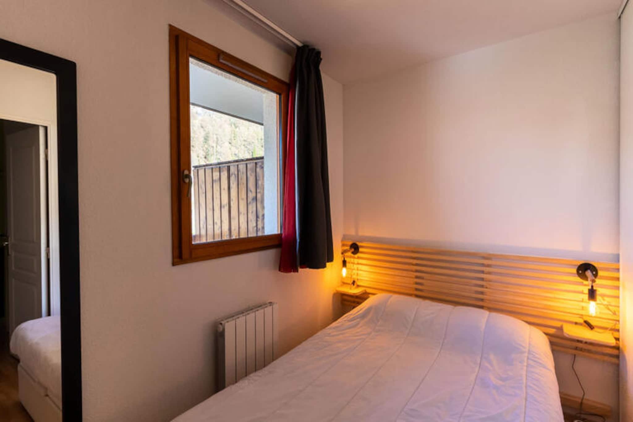 Højt over den maleriske landsby Bois Méan i 1800 meters højde tilbyder denne charmerende lejlighed i Les Terrasses du Soleil d'Or en rolig bjergferie med direkte adgang til pisterne. Forestil dig at vågne op til en betagende udsigt over alperne, træde ud på din private balkon for at nippe til kaffe i den friske morgenluft og tage direkte til Préclaux-tæppeliften eller Prébois-stoleliften, der ligger kun få skridt væk. Boligen er perfekt beliggende for familier og er bekvemt placeret overfor børnehaven og snehaven, hvilket gør det nemt at sætte de små af, inden du begiver dig ud på dine egne eventyr. \n\nDenne totalrenoverede 36 m² sydøstvendte lejlighed har komfortabel plads til op til fem gæster. Den hyggelige opholdsstue har en sovesofa, et smart-tv og en elektrisk pejs, der skaber en varm og indbydende atmosfære til afslappende aftener. Det veludstyrede køkken tilbyder alt, hvad du behøver for at tilberede lækre måltider, mens sovepladserne omfatter et dobbeltværelse med en 140 cm seng og en sovealkove med tre enkeltkøjesenge. Badeværelset er udstyret med et badekar, perfekt til afslapning efter en aktiv dag. Gæsterne kan nyde boligens opvarmede indendørs pool med spabad og en udendørs terrasse, der er åben sæsonbestemt for afslapning året rundt. Butikker, restauranter og udlejning af udstyr ligger kun få skridt væk, og ESF-skiskolen og skiliftbilletkontorerne er bekvemt placeret i nærheden. For en afslappet gåtur forbinder en naturskøn sti gennem lærketræerne sig til 1650-resortet og tilbyder en rolig flugt ud i naturen. Uanset om du står på ski, vandrer med snesko eller cykler på mountainbike, er denne lejlighed den perfekte base for at udforske de fantastiske landskaber i Les Orres. Afslut din dag med en aperitif ved solnedgang på balkonen, mens du nyder bjergenes skønhed. Et privat skirum sikrer, at dit udstyr altid er klar til det næste eventyr.