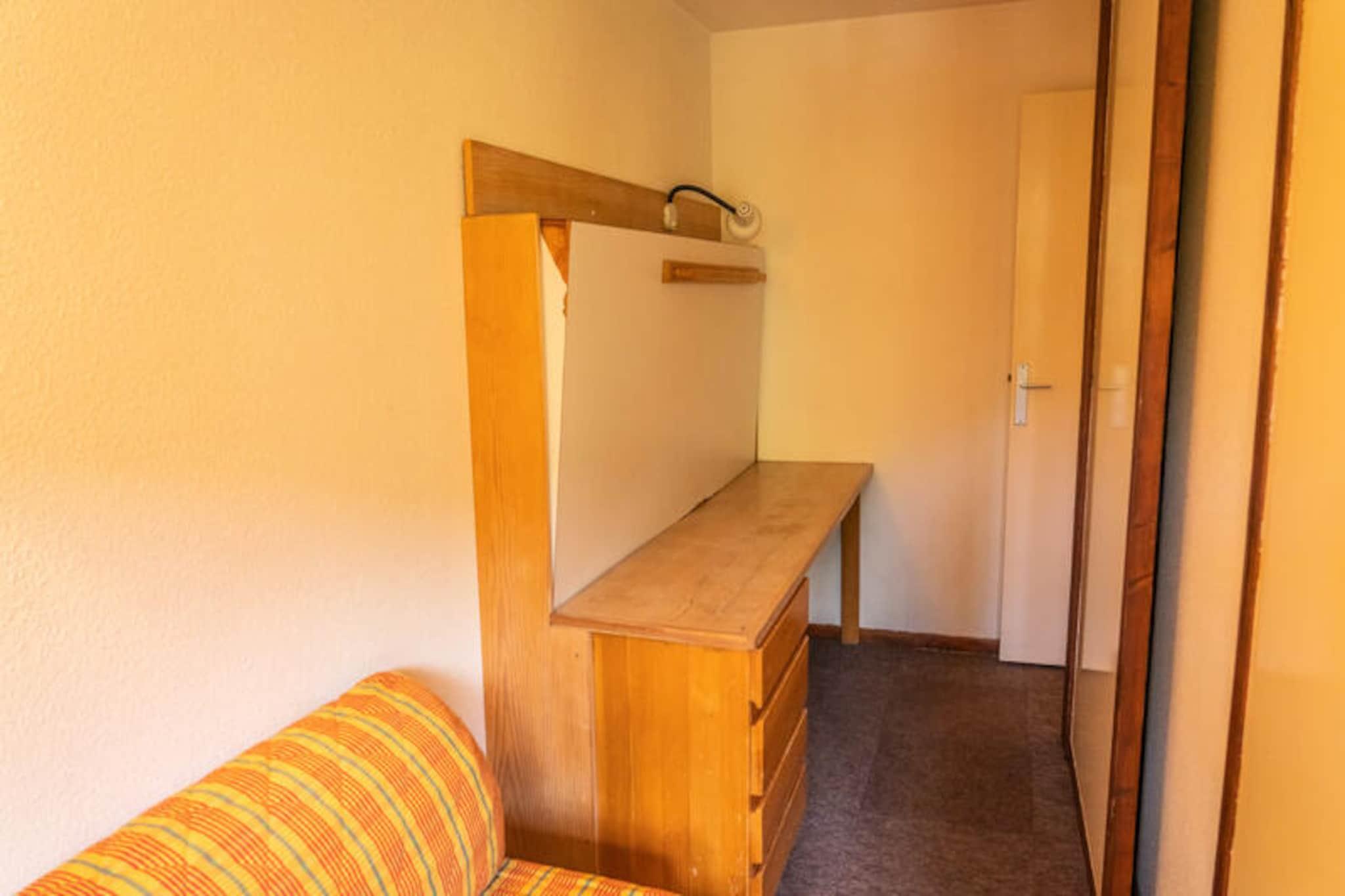 Højt over den maleriske Embrun-dal tilbyder denne charmerende studiolejlighed i hjertet af Les Orres 1650 en perfekt blanding af alpint eventyr og rolig afslapning. Forestil dig at vågne op til de solbeskinnede tinder i Hautes-Alpes, træde ud på din sydvestvendte balkon med en varm kaffe i hånden og nyde den betagende udsigt over bjergene. Dette hyggelige tilflugtssted er designet til at gøre hvert øjeblik af din ferie uforglemmelig. \n\nMed 30 m² gennemtænkt boligareal kan lejligheden komfortabelt rumme op til fire gæster. Sovekipen og de alsidige sovemuligheder, herunder en udtrækssovesofa, en enkelt sovesofa og en klapseng med skrivebord, sikrer et afslappende ophold for alle. Det fuldt udstyrede køkken med opvaskemaskine og mikrobølgeovn/grill inviterer dig til at tilberede lækre måltider, som du kan dele med dine kære. Efter en dag med skiløb eller udforskning kan du slappe af i badekarret eller samles omkring pejsen i boligens fællesområder til et spil billard. \n\nBeliggende kun få skridt fra snefronten og stoleliftene tilbyder denne bolig uovertruffen adgang til pisterne, hvilket gør den til en drømmedestination for vintersportsentusiaster. Om sommeren forvandles feriestedet til en udendørs legeplads med mountainbike-ruter, svævebaner og trætop-eventyrbaner. Butikker, restauranter og bagerier ligger alle inden for 100 meter, hvilket sikrer, at alt hvad du behøver er lige ved hånden. \n\nUanset om du søger spændende alpine aktiviteter eller fredelige øjeblikke under solen i solariet, er denne lejlighed din indgang til det bedste af Les Orres 1650. Med et privat skirum og solskin næsten året rundt er det det ideelle valg til din næste bjergferie.