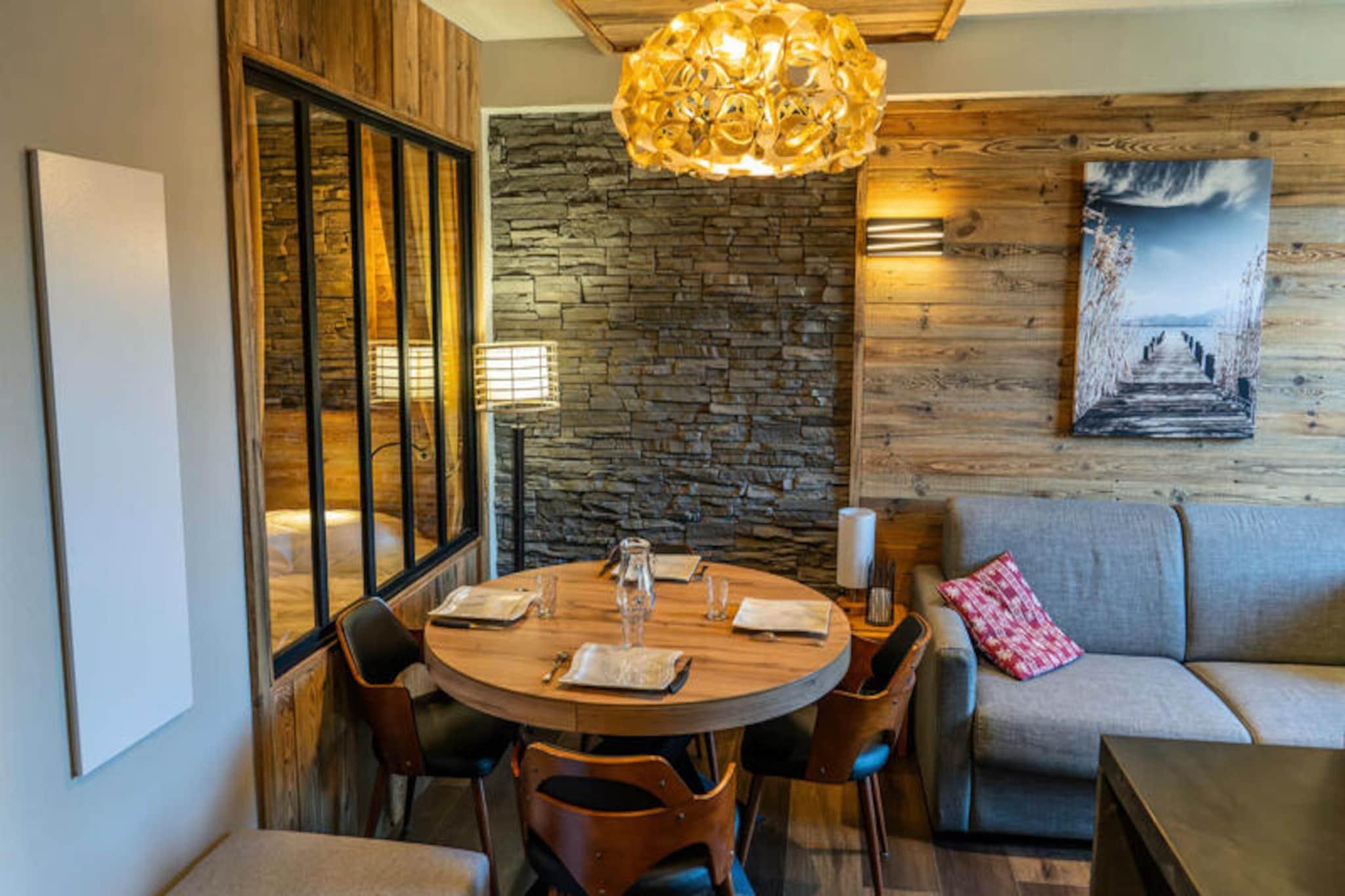 I hjertet af det maleriske Bois Méan-område inviterer denne charmerende lejlighed i Edelweiss-bygningen i Hauts de Préclaux-residensen dig til at opleve den perfekte alpine ferie. Beliggende i en højde af 1.800 meter omgiver residensen et livligt centralt torv, hvor butikker, barer og restauranter skaber en pulserende atmosfære, hvilket gør det til en ideel destination for både afslapning og eventyr. Uanset om du besøger om vinteren eller sommeren, sætter den betagende udsigt over bjergene og den friske alpeluft tonen for et uforglemmeligt ophold. \n\nDenne smukt renoverede lejlighed på 35 m², færdiggjort i efteråret 2023, kombinerer moderne komfort med rustik bjergcharme. Den er designet til at rumme op til 4 gæster og har en hyggelig stue med tv og en elektrisk pejs, perfekt til afslapning efter en dag på pisterne. Det fuldt udstyrede køkken inkluderer kaffemaskine, elkedel, brødrister, opvaskemaskine, mikrobølgeovn, fonduesæt og raclettegrill, så du kan nyde lækre måltider i dit eget hjem væk fra hjemmet. Den nordvestvendte balkon, møbleret med havemøbler, tilbyder en dejlig udsigt over den travle hovedtorv i Les Orres.\n\nSovepladserne inkluderer en sovealkove med en køjeseng og to enkeltsenge samt et separat område med en komfortabel dobbeltseng. Lejligheden kan også prale af et badeværelse med badekar og et separat toilet for ekstra bekvemmelighed. Gæsterne vil sætte pris på det private skirum og den direkte adgang via elevator til boligens opvarmede udendørs swimmingpool, sauna og fitnessrum, der er åbne sæsonbestemt for både sommer- og vinterfornøjelse.\n\nBeliggende mindre end 50 meter fra pisterne og alle vigtige faciliteter, herunder et minimarked, restauranter, udlejning af udstyr og butikker med lokale råvarer, tilbyder denne lejlighed uovertruffen bekvemmelighed. Uanset om du er her for at stå på ski, vandre eller blot nyde den rolige bjergstemning, er denne indkvartering den perfekte base for dit alpine eventyr.