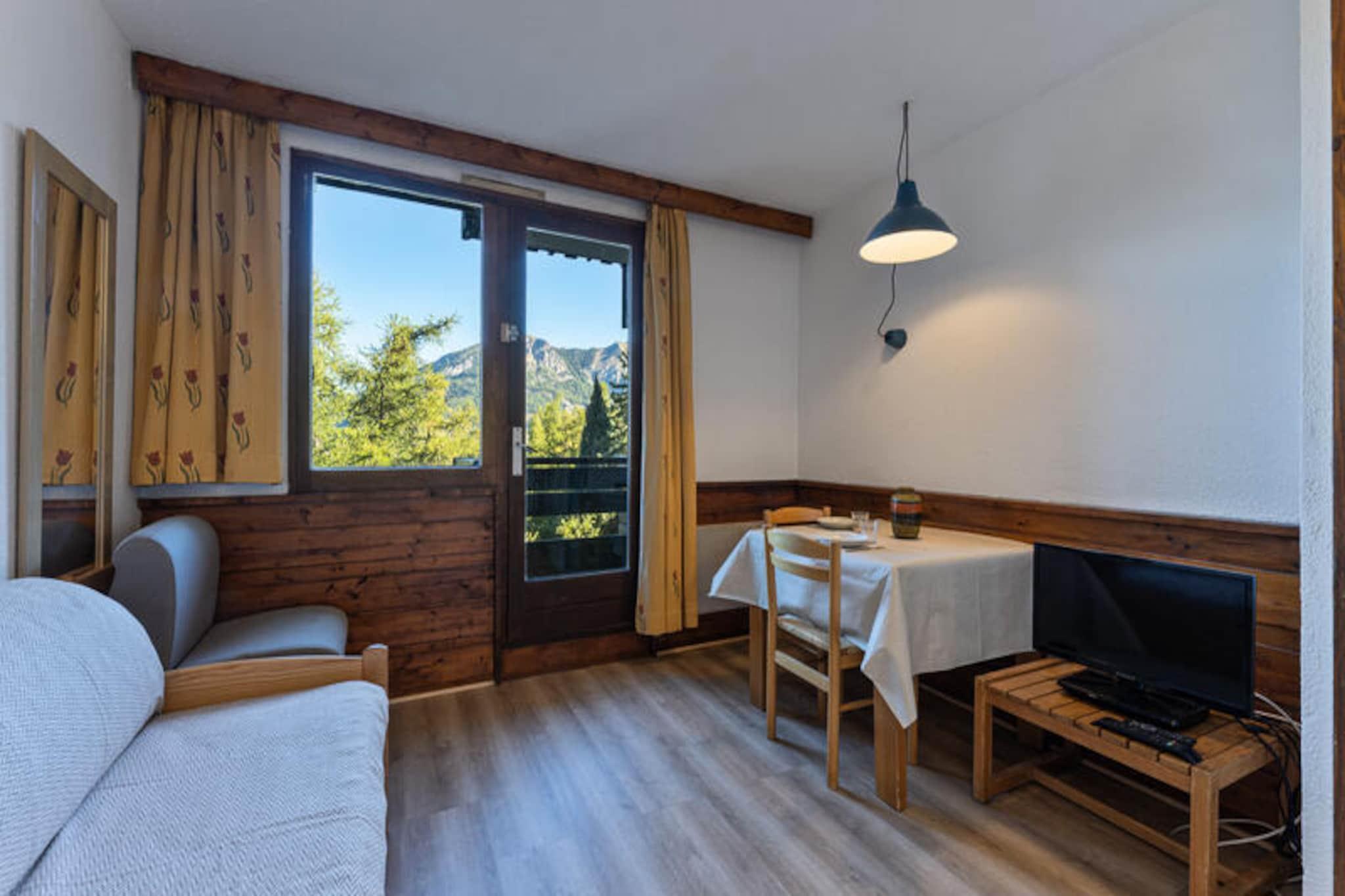 Højt over den maleriske Embrun-dal tilbyder denne charmerende studiolejlighed i Les Orres 1650 et intimt alpint tilflugtssted med betagende udsigt over bjergene. Beliggende på 8. sal i en førsteklasses bolig, er dette hyggelige tilflugtssted perfekt til par, der søger ro og eventyr midt i det fantastiske Hautes-Alpes-landskab. Forestil dig at vågne op til den friske bjergluft, træde ud på din private balkon og nyde den fredfyldte skønhed i de omkringliggende tinder. Indenfor er det 17 m² store studio omhyggeligt designet til at maksimere komfort og funktionalitet. Tekøkkenet er fuldt udstyret med moderne apparater, herunder mikrobølgeovn/grill, brødrister, elkedel og Senseo-kaffemaskine, hvilket sikrer, at du har alt, hvad du behøver for at tilberede lækre måltider. Den dobbelte sovesofa giver en god nats søvn, mens den smagfulde indretning skaber en varm og indbydende atmosfære. Et privat skirum giver dig ekstra bekvemmelighed, så du kan opbevare dit udstyr sikkert efter en dag på pisterne. Beliggende kun få skridt fra snefronten og stoleliftene, tilbyder denne bolig uovertruffen adgang til pisterne i Les Orres. Efter en spændende dag med skiløb eller snowboarding kan du slappe af ved den hyggelige pejs i den fælles opholdsstue eller udfordre vennerne til et spil billard. Solariet er det perfekte sted at sole sig i det næsten året rundt solskin, der pryder Hautes-Alpes. Med butikker, restauranter og aktiviteter som mountainbiking, ziplining og trætop-eventyrbaner inden for 100 meter sikrer denne beliggenhed en stressfri og uforglemmelig ferie. Uanset om du er her for spændingen på pisterne eller roen i bjergene, er denne studiolejlighed din indgang til en ekstraordinær alpin oplevelse.