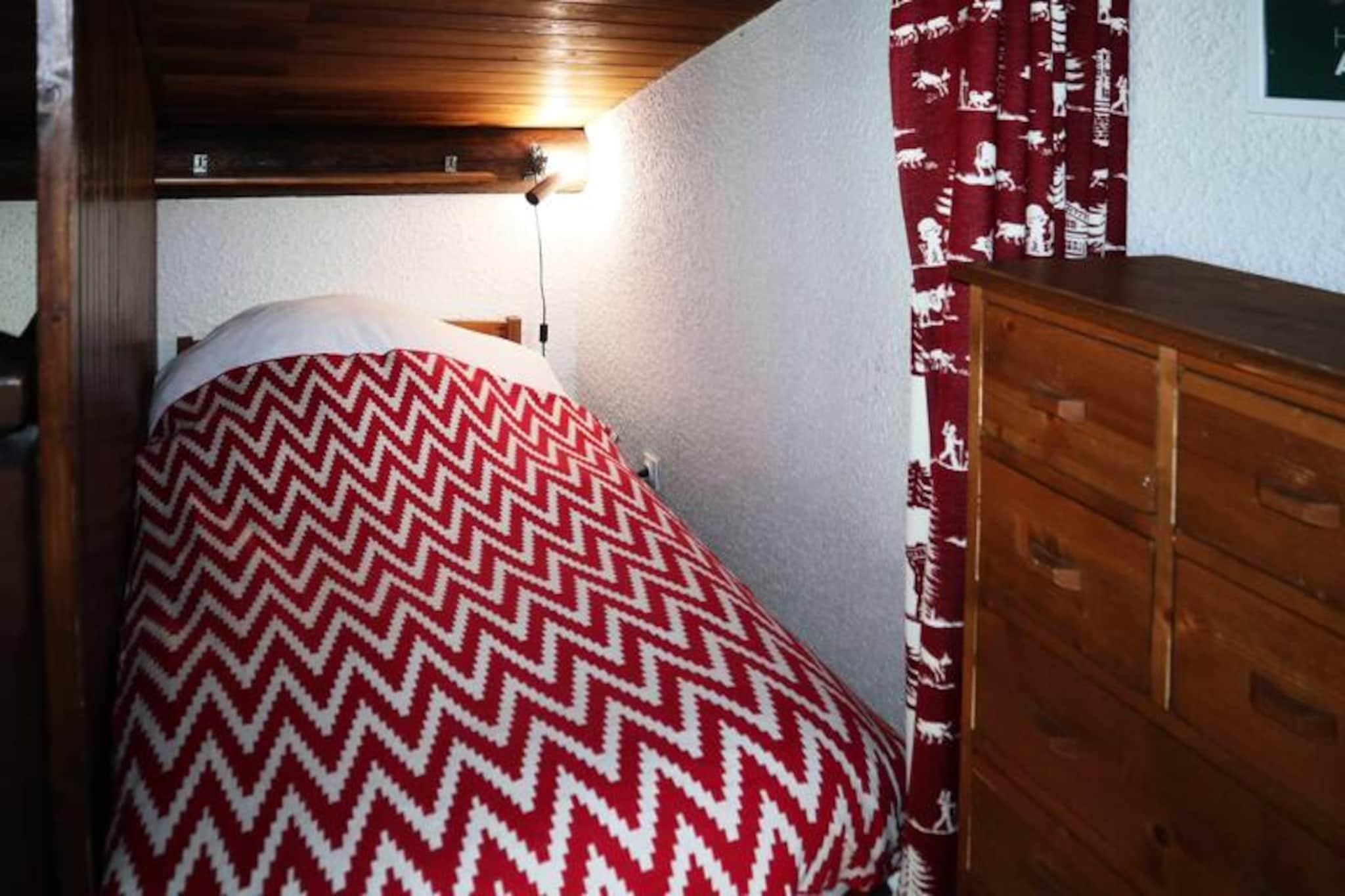 Højt over den fredfyldte dal inviterer denne charmerende bjerghytte dig til at opleve magien i de franske alper. Med ski-in/ski-out adgang og kun en kort gåtur fra feriestedets centrum er denne ejendom perfekt placeret til både eventyr og afslapning. Forestil dig at vågne op til panoramaudsigt over dalen, træde ud på din private terrasse for at indånde den friske alpeluft og tage direkte til pisterne for en dag med uforglemmelig skiløb. Dette er mere end et feriehus; det er din port til alpin lyksalighed. \n\nIndenfor kombinerer hytten rustik charme med moderne komfort. Den rummelige opholds- og spisestue, centreret omkring en hyggelig pejs, er perfekt til at samles efter en dag på pisterne. Terrassen med to sider oversvømmer rummet med naturligt lys og skaber en varm og indbydende atmosfære. Stueetagen har et fuldt udstyret køkken, et soveværelse og et brusebad, mens du ovenpå finder to soveværelser med dobbeltsenge, et badeværelse med badekar og et charmerende soveområde under tagskægget. Kælderen tilbyder rigelig opbevaringsplads, vaskemaskine og tørretumbler samt dedikeret ski- og støvleopbevaring, hvilket sikrer, at alle detaljer under dit ophold er taget hånd om. \n\nUd over hytten tilbyder det omkringliggende område uendelige muligheder for udforskning. Uanset om du står på ski om vinteren eller vandrer om sommeren, kan du opleve de betagende landskaber i de franske alper. Det nærliggende feriestedscenter tilbyder et udvalg af butikker, restauranter og afterski-muligheder, der sikrer, at alle dine behov bliver opfyldt. For dem, der søger ro, vil den fredelige udsigt over dalen og den friske bjergluft helt sikkert forynge din ånd. \n\nVælg denne hytte for dens uovertrufne beliggenhed, fantastiske udsigt og den perfekte blanding af komfort og eventyr. Uanset om du er her for spændingen på pisterne eller roen i bjergene, er dette et sted, hvor minder skabes.