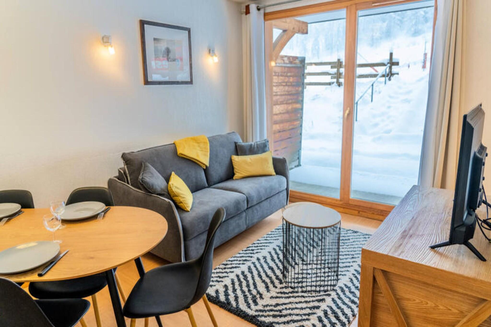 Ejendommen er sammen med dens veldesignede faciliteter en rummelig lejlighed på 33 m², der er velegnet til op til 6 personer. Det har et soveværelse med en dobbeltseng og et soveværelse med to sæt køjesenge. Stuen er udstyret med en komfortabel sofa og et fjernsyn, og spisepladsen giver plads til seks gæster. Gæsterne kan nyde den østvendte terrasse med en fantastisk udsigt over bjergene. Lejligheden er fri for kæledyr, hvilket sikrer et fredeligt miljø. Selvom ingen gratis aktiviteter udtrykkeligt er nævnt, kan gæsterne nyde adgang til en indendørs opvarmet swimmingpool og et privat skiskab til nem opbevaring af skiudstyr. En ski-in/ski-out-oplevelse er også tilgængelig, hvilket gør den perfekt til vintersportsentusiaster. Beliggende i hjertet af Les Orres 1800, tilbyder lejligheden enestående adgang til forskellige aktiviteter. Kun få meter fra hovedtorvet finder gæsterne restauranter, barer, et minimarked, en delikatesseforretning, en presse og et vaskeri, hvilket sikrer bekvemmelighed under hele opholdet. Ejendommen er også ideelt beliggende i nærheden af ??fodgænger-, snesko- og mountainbikestier, så gæsterne kan udforske det fantastiske omgivende landskab. Skiløjperne er let tilgængelige, hvilket giver en problemfri skioplevelse. Områdets livlige atmosfære inkluderer sæsonbestemte begivenheder og aktiviteter, der forbedrer den samlede ferieoplevelse. Lejlighedens køkken er fuldt udstyret med moderne apparater, herunder en opvaskemaskine, elektrisk kogeplade, mikroovn, Nespresso-kaffemaskine, brødrister og kedel, der dækker alle dine kulinariske behov. En raclettemaskine er også tilgængelig for dem, der ønsker at nyde et traditionelt alpine måltid. Badeværelset har et badekar, ideelt til at slappe af efter en dag på pisterne. Derudover sikrer et separat toilet bekvemmelighed. Lejlighedens førsteklasses beliggenhed giver direkte adgang til skiløjperne via skirummet, hvilket gør den ideel for elskere af vintersport. Et depositum er påkrævet, og opvarmning er inkluderet for ekstra komfort i de koldere måneder.