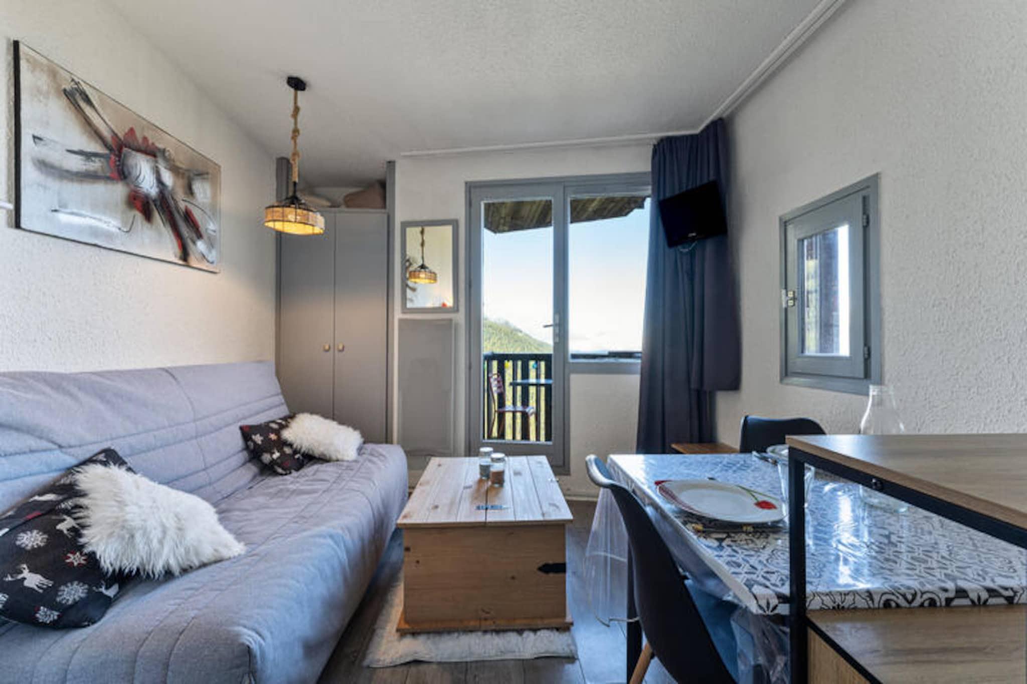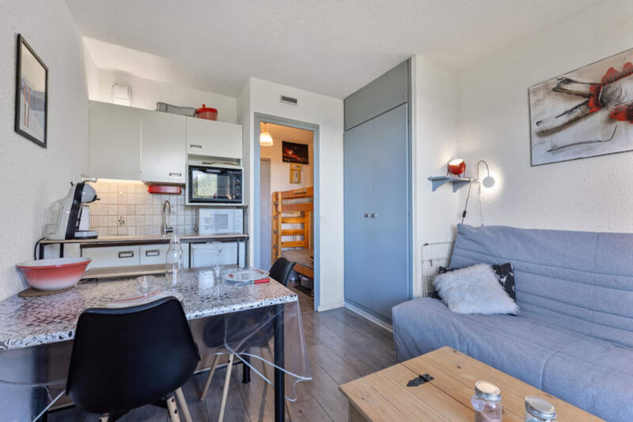 Højt over den fredfyldte Embrun-dal tilbyder denne charmerende studiolejlighed i Le Cairn-residensen en perfekt blanding af komfort og bekvemmelighed til din alpine ferie. Uanset om du besøger stedet om vinteren eller sommeren, vil den betagende udsigt over Serre-Ponçon-søen og de omkringliggende bjerge fra din private balkon efterlade dig i ærefrygt. Beliggende i hjertet af Les Orres 1650, er alt hvad du behøver kun få skridt væk, fra hyggelige bagerier og souvenirbutikker til restauranter og sportsudlejningsbutikker. Dette er din indgang til det pulserende liv i feriestedet. Studiolejligheden på 19 m² er omhyggeligt designet til at rumme op til fire gæster, hvilket gør den ideel til familier eller små grupper af venner. Soveområdet har køjesenge på 80x190 cm, mens opholdsområdet har en komfortabel sovesofa på 140x190 cm. Det fuldt udstyrede køkken, komplet med en Dolce Gusto-kaffemaskine, raclettegrill og miniovn, åbner ud til et nyrenoveret opholdsrum, der skaber en varm og indbydende atmosfære. For ekstra bekvemmelighed er der et privat skirum til rådighed til opbevaring af dit udstyr efter en dag på pisterne. Les Orres 1650 er et paradis for friluftsentusiaster. Om vinteren er pisterne mindre end 100 meter fra din dør, hvilket giver nem adgang til spændende skiløbsoplevelser. I sommermånederne forvandles området til et paradis for vandreture, mountainbiking og vandsport på den nærliggende sø. Efter en aktiv dag kan du slappe af på solariet på 8. sal i boligen, hvor panoramaudsigt over feriestedet og bjergene venter. Uanset om du er her for at grave dig gennem frisk puddersne, udforske naturskønne stier eller blot slappe af i bjergluften, er denne studiolejlighed den perfekte base for uforglemmelige minder i de franske alper.