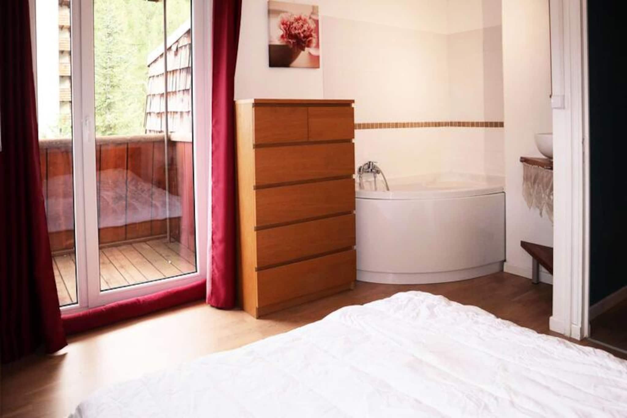 Højt over de fredfyldte franske alper tilbyder denne rummelige 2-værelses lejlighed et varmt og indbydende tilflugtssted for op til 8 gæster. Forestil dig at vågne op til solopgangens gyldne nuancer, der strømmer gennem din østvendte balkon med betagende udsigt over dalen og de omkringliggende tinder. Denne ejendom er perfekt beliggende på 6. sal med elevatoradgang og tilbyder den ultimative ski-in, ski-out bekvemmelighed, så du kan træde direkte ud på pisterne og omfavne det alpine eventyr. Uanset om du søger spændende dage på pisterne eller rolige aftener under den stjerneklare bjerghimmel, er denne lejlighed din port til uforglemmelige minder. Indvendigt er lejligheden omhyggeligt designet til at kombinere komfort og funktionalitet. Det åbne køkken og opholdsstue skaber et indbydende rum til fælles måltider og hyggelige aftener, komplet med en dobbelt sovesofa for ekstra fleksibilitet. Soveværelset med en luksuriøs dobbeltseng og privat balkon tilbyder et fredeligt tilflugtssted, mens to sovealkover med køjesenge sikrer rigelig plads til familier eller grupper. Forkæl dig selv med luksusen af ??et stort hjørnebadekar, perfekt til afslapning efter en aktiv dag, suppleret af et andet brusebad og separat toilet for ekstra bekvemmelighed. Ud over lejligheden tilbyder resortet et væld af faciliteter. En nærliggende legeplads og dagpleje gør det til et fremragende valg for familier, mens den pulserende landsbyatmosfære byder på et udvalg af spisesteder og afterski-muligheder. I de varmere måneder forvandles området til et paradis for vandrere og naturelskere med stier, der snor sig gennem frodige alpine enge og tilbyder panoramaudsigter. Uanset om du er tiltrukket af spændingen ved pisterne eller roen i bjergene, er denne lejlighed en perfekt base for din alpine flugt. Skab dyrebare øjeblikke med dine kære i omgivelser, der blander naturlig skønhed med moderne komfort.