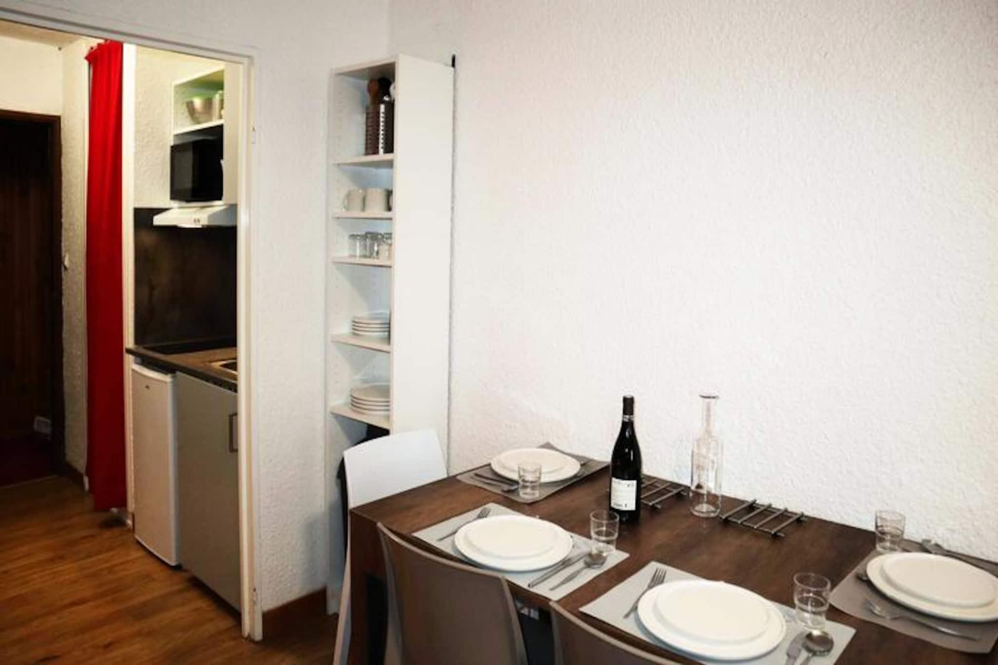 Højt over den fredfyldte dal, hvor den friske alpine luft forfrisker sanserne, tilbyder denne charmerende studiolejlighed et hyggeligt tilflugtssted i hjertet af Orres 1650-resortet. Bygningen, der engang var et travlt hotel, er blevet omhyggeligt omdannet til en moderne bolig, der blander sin historiske charme med moderne komfort. Fra det vestvendte vindue kan gæsterne nyde den betagende udsigt over dalen, et syn, der ændrer sig med årstiderne, men altid fortryller. Uanset om du er her for spændingen ved pisterne eller roen i bjergene, er denne ejendom en ideel base for dine eventyr. \n\nStudiolejligheden er designet til at rumme op til fire gæster og har en smart planløsning, der maksimerer plads og funktionalitet. Indgangen fører til en alkove med to enkeltsenge, perfekt til børn eller venner. Stuen med en komfortabel dobbeltsovesofa indbyder til afslapning efter en dag med udforskning. Et veludstyret tekøkken gør madlavning til en leg, mens brusebadet og det separate toilet sikrer bekvemmelighed. Lejlighedens linoleumsgulv tilføjer et strejf af praktisk anvendelighed, hvilket gør den nem at vedligeholde under dit ophold. For skiløbere er skiboksen i stueetagen en velkommen tilføjelse, der holder dit udstyr sikkert og klar til action. \n\nTræd udenfor, og du befinder dig direkte på pisterne med øjeblikkelig adgang til de spændende skiløjper i Orres 1650. Resortets pulserende atmosfære tilbyder alt fra hyggelige caféer til livlige afterski-steder, hvilket sikrer, at du aldrig er langt fra underholdning. I de varmere måneder forvandles området til et paradis for vandrere og cyklister med stier, der snor sig gennem frodige skove og åbner op til panoramaudsigt. I nærheden byder dalen på charmerende landsbyer og lokale markeder, hvor du kan opdage regionens smag og traditioner. \n\nUanset om du søger eventyr eller en fredelig flugt, inviterer denne studiolejlighed dig til at opleve magien i de franske alper. Med sin uovertrufne beliggenhed og gennemtænkte faciliteter er det et sted, hvor minder skabes og værdsættes i mange år fremover.