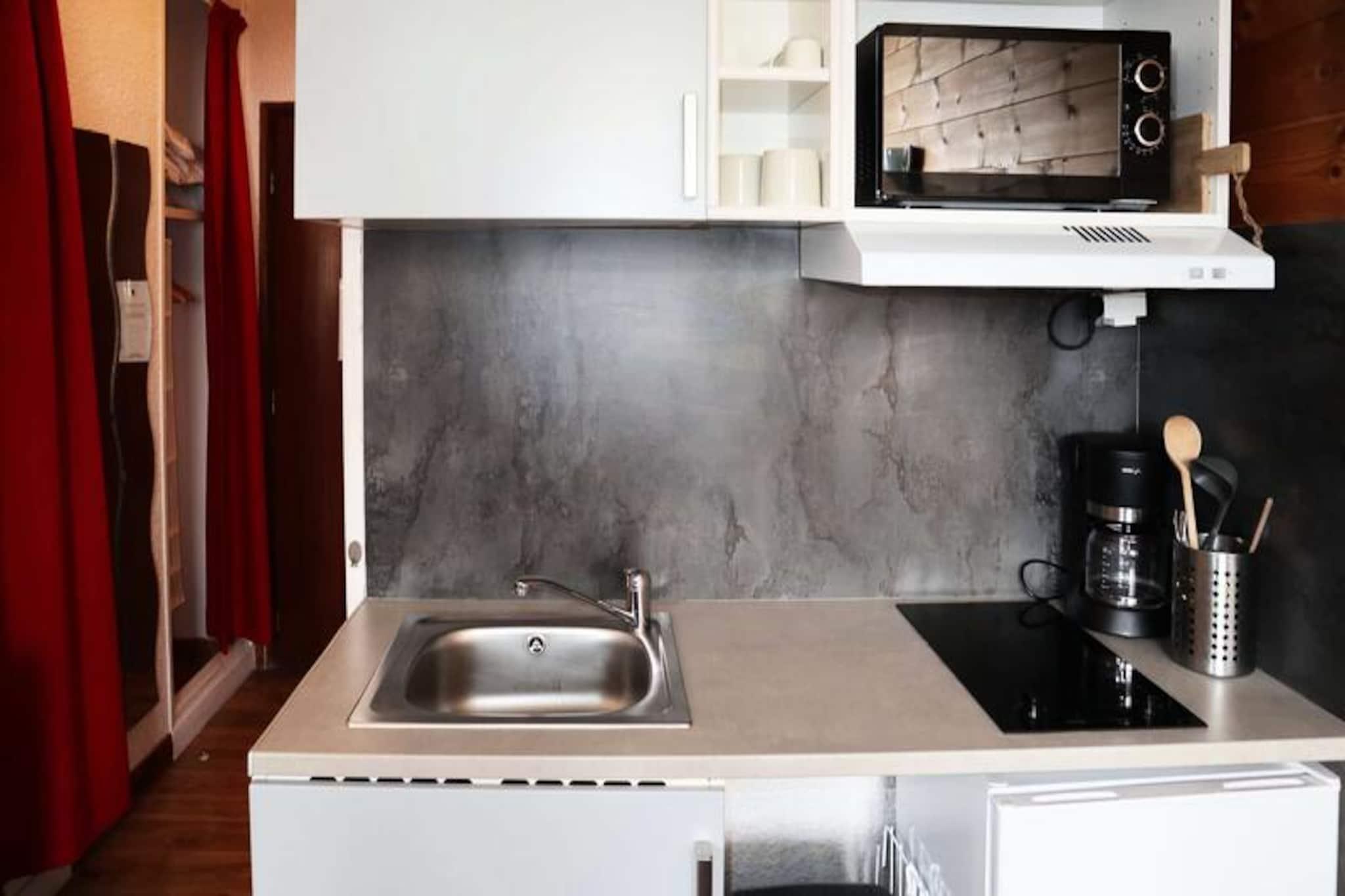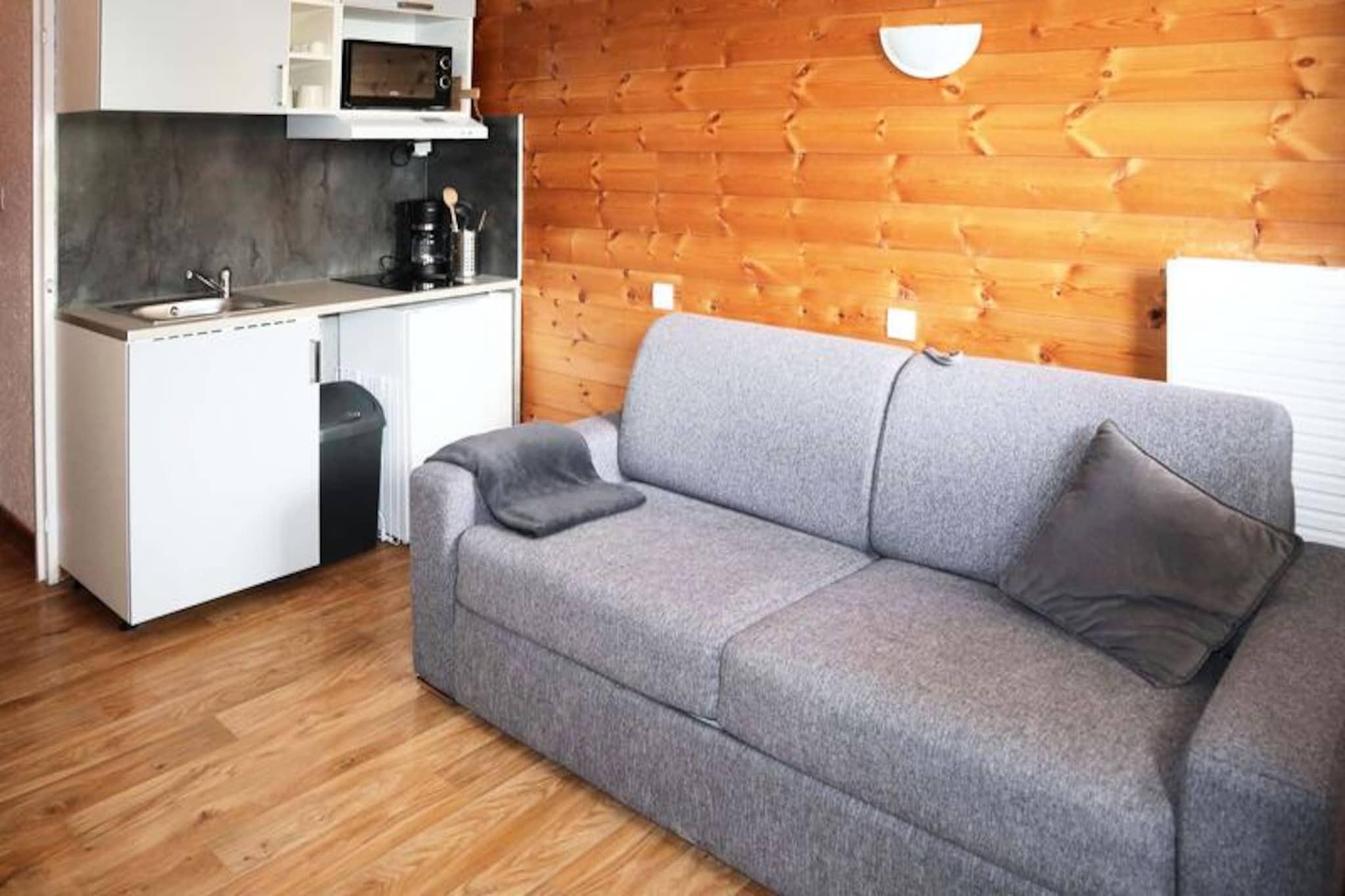 Højt over de fredfyldte dale i de franske alper tilbyder denne charmerende studiolejlighed i hjertet af Orres 1650 et intimt tilflugtssted for to. Med sin førsteklasses beliggenhed direkte på pisterne føles hvert øjeblik her som en invitation til at fordybe dig i alpinlivets skønhed. Vågn op til synet af skiløbere, der snor sig gennem frisk puddersne, indrammet af det sydvendte vindue, der bader rummet i naturligt lys og tilbyder en betagende udsigt over det sneklædte landskab. Uanset om du søger eventyr eller ro, er denne bolig din port til begge dele. \n\nLejligheden er omhyggeligt renoveret fra et tidligere hotel og blander moderne bekvemmelighed med hyggelig charme. Opholdsstuen har en komfortabel dobbeltsovesofa, perfekt til at slappe af efter en dag på pisterne. Et kompakt tekøkken åbner ud til opholdsstuen, der er udstyret til at tilberede enkle måltider, som du kan nyde i varmen i dit private tilflugtssted. Badeværelset, komplet med toilet, sikrer, at du har alle de nødvendige ting lige ved hånden. Linoleumsgulv overalt tilføjer et strejf af praktisk anvendelighed og brugervenlighed, mens skiboksen i stueetagen holder dit udstyr klar til det næste eventyr. \n\nTræd udenfor, og du er øjeblikkeligt forbundet med den pulserende energi i Orres 1650. Fra skiskoler og udlejning af udstyr til charmerende restauranter og afterski-steder, alt hvad du behøver er kun få øjeblikke væk. Om sommeren forvandles området til et paradis for vandrere og mountainbikere, med stier, der fører til fantastiske udsigter og fredelige alpine enge. Uanset om du glider ned ad snedækkede pister eller udforsker solbeskinnede stier, vil den omkringliggende naturlige skønhed helt sikkert betage dig. \n\nPerfekt til par eller solorejsende, tilbyder denne studiolejlighed en unik blanding af komfort, bekvemmelighed og alpin charme. Lad bjergene inspirere din næste ferie og skab uforglemmelige minder i disse idylliske omgivelser.