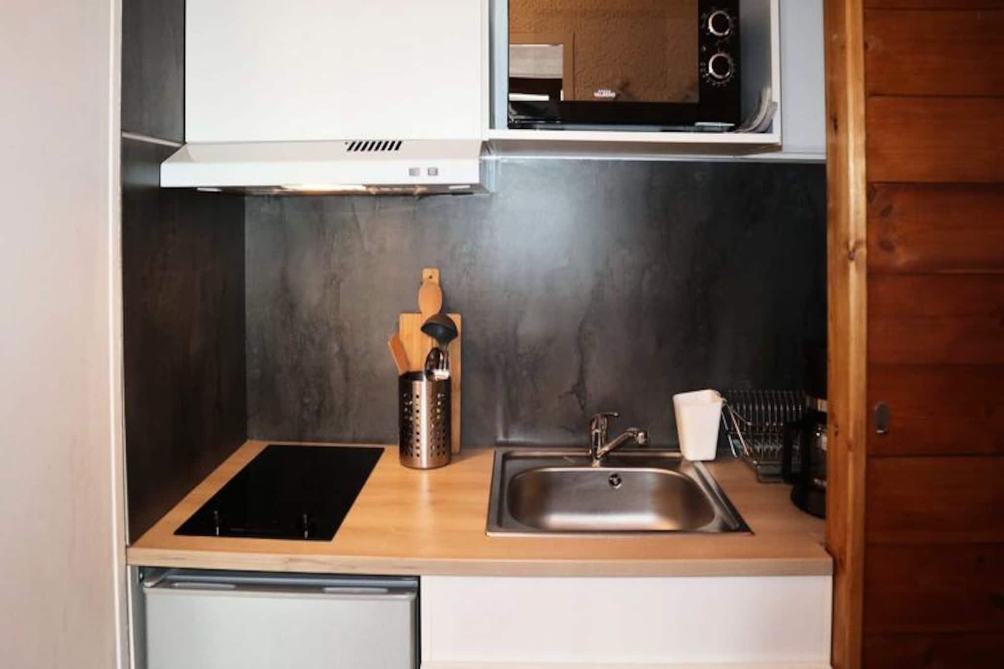 Hvor de snedækkede tinder møder den pulserende energi i Orres 1650, inviterer denne charmerende studiolejlighed dig til at opleve magien ved alpint liv. Perfekt placeret lige ved pisterne, tilbyder den uovertruffen bekvemmelighed for skientusiaster og dem, der søger et hyggeligt tilflugtssted midt i bjergene. Fra din sydvendte balkon kan du nyde den betagende udsigt over pisterne, mens solen kaster sin gyldne glød over landskabet - et øjeblik til at nyde hver dag af dit ophold. Uanset om du er her for vintereventyr eller sommerro, er denne bolig din port til de franske alpers skønhed. \n\nIndenfor er studiolejligheden omhyggeligt designet til to gæster og blander komfort og funktionalitet. Entréhallen fører til et indbydende opholdsrum med en dobbelt sovesofa, ideel til afslapning efter en dag på pisterne. Et kompakt tekøkken giver dig mulighed for nemt at tilberede måltider, mens badeværelset med toilet sikrer, at alle nødvendige ting er lige ved hånden. Linoleumsgulvet overalt tilføjer et strejf af praktisk anvendelighed og varme, hvilket gør dette rum både stilfuldt og indbydende. Et skiskab i stueetagen giver praktisk opbevaring til dit udstyr, så du altid er klar til det næste eventyr. \n\nTræd udenfor og oplev det pulserende Orres 1650 resort, hvor alt hvad du behøver er inden for rækkevidde. Fra skiskoler og udlejning af udstyr til charmerende restauranter og afterski-steder summer landsbyen af ??aktivitet og charme. I de varmere måneder forvandles området til et paradis for vandrere og naturelskere med stier, der snor sig gennem frodige skove og fører til panoramaudsigter. \n\nUanset om du jagter puddersne eller søger ro, tilbyder denne studiolejlighed den perfekte base for at skabe uforglemmelige minder i hjertet af Alperne.