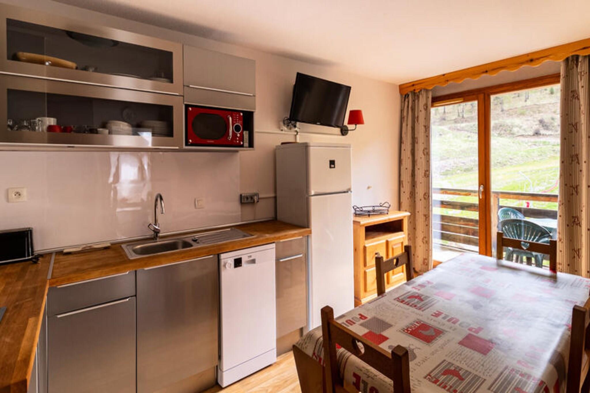 Boligen Hauts de Préclaux, beliggende i en højde af 1.800 meter i hjertet af Bois-Méan, tilbyder en række forskellige overnatningssteder for op til 10 personer. Denne sydøstvendte lejlighed på 40 m², beliggende på tredje sal i "Églantines"-bygningen, rummer komfortabelt seks gæster. Lejligheden indeholder et soveværelse med to enkeltsenge, en stue med to sovesofaer og et badeværelse med et afslappende badekar. Køkkenet er fuldt udstyret med moderne bekvemmeligheder såsom en Nespresso-kaffemaskine, brødrister og opvaskemaskine. Gæsterne kan nyde den fantastiske udsigt over pisterne fra den private balkon. Boligen er ideelt beliggende i centrum af stationen og tilbyder nem adgang til butikker, barer, restauranter og andre tjenester. Med direkte adgang til snefronten og skiløjperne kan gæsterne nyde bekvemmeligheden ved at stå på ski lige fra boligen. Bygningens centrale beliggenhed sikrer, at gæsterne kan fordybe sig i Bois-Méans livlige atmosfære, samtidig med at de kan nyde den omkringliggende naturlige skønhed. Placeringen er også perfekt for dem, der ønsker at udforske områdets udendørsaktiviteter, med en række forskellige vinter- og sommersportsmuligheder. Yderligere faciliteter inkluderer adgang til boligens opvarmede udendørs swimmingpool, saunahytter og fitnessrum, alle tilgængelige i højsæsonerne sommer og vinter. Denne kombination af komfort og afslapning sikrer en stressfri ferie. Med en privat parkeringsplads og nem adgang til pisterne kan gæsterne nyde et bekvemt og behageligt ophold. Der kræves et depositum, og der er opvarmning for ekstra komfort i de koldere måneder.