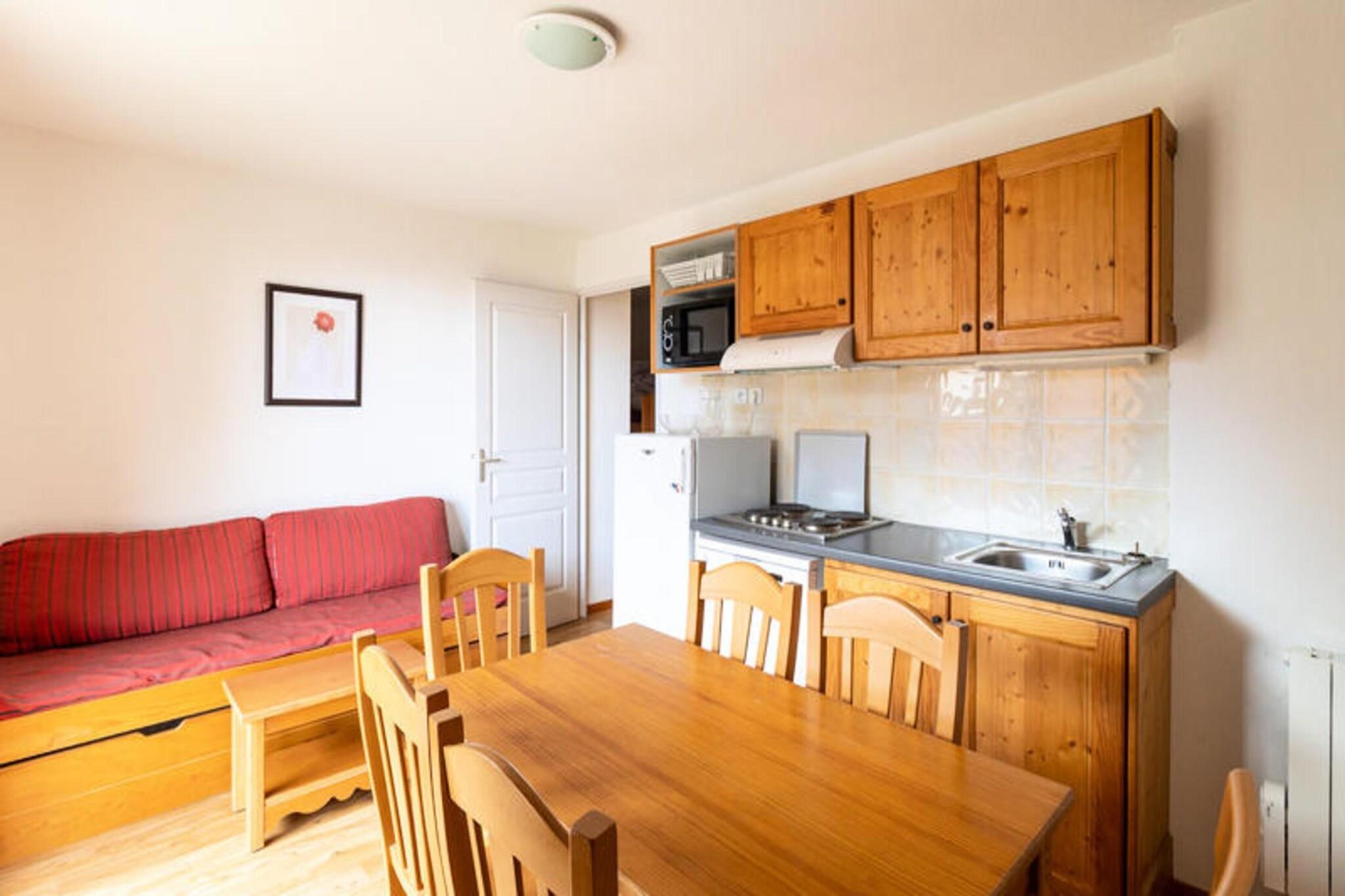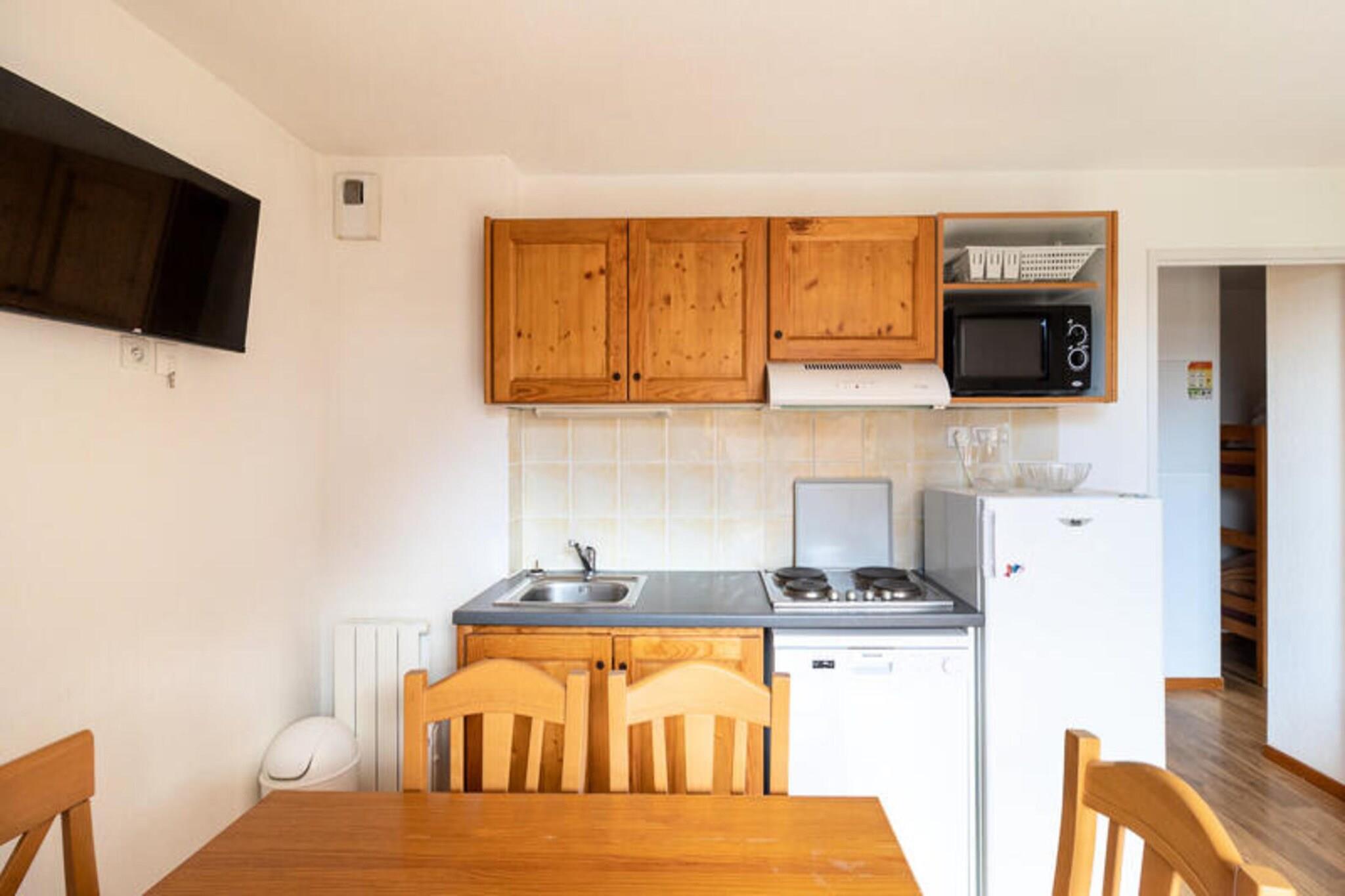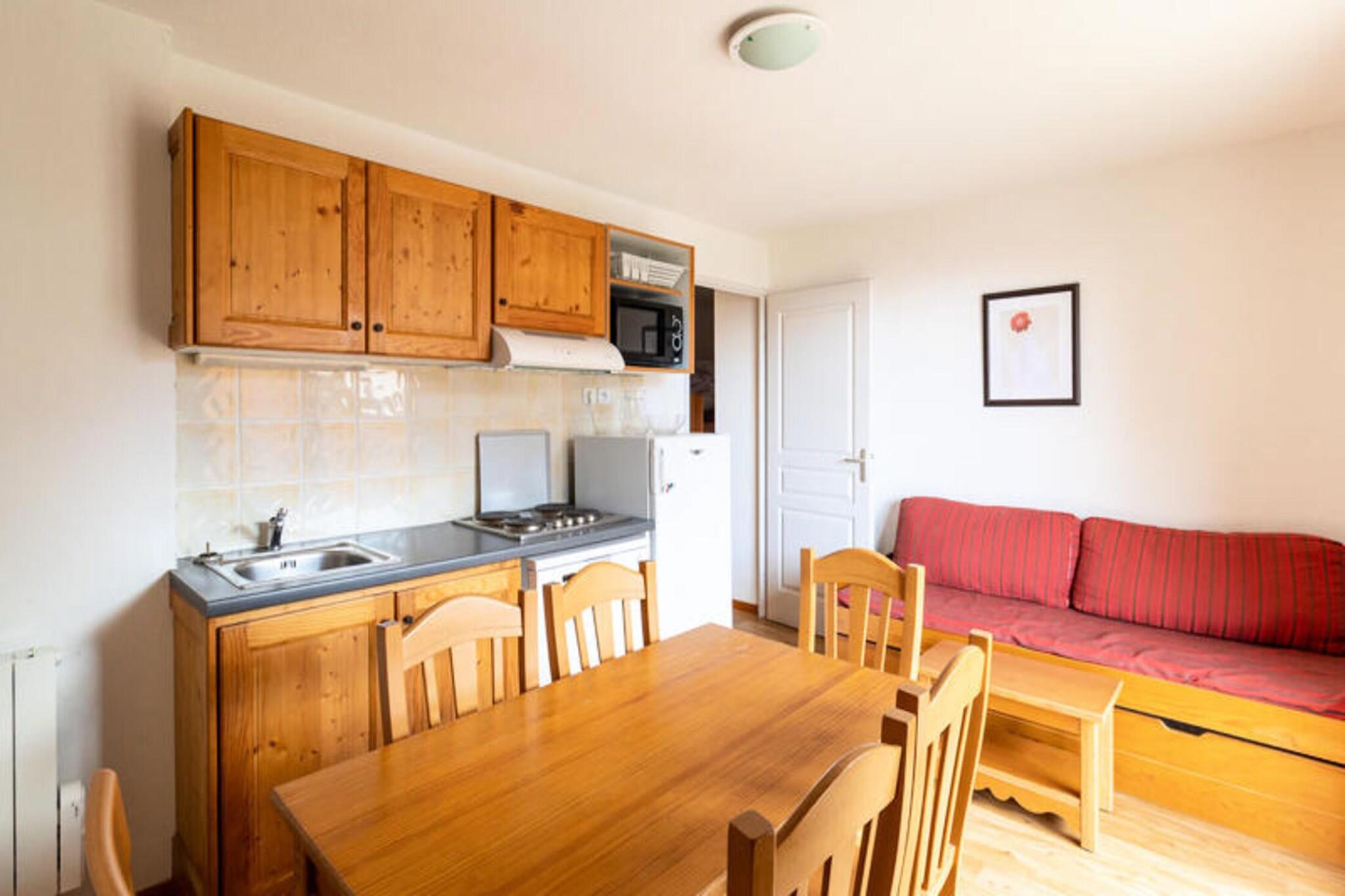 Denne hyggelige 2-værelses lejlighed på 34 m² kan rumme op til 6 personer, med en sovesofa, en dobbeltseng og to køjesenge. Lejligheden har et fuldt udstyret køkken, et badeværelse med badekar og en stor balkon med panoramaudsigt over resortet og bjergene. Gæsterne kan nyde sæsonbestemt adgang til en opvarmet indendørs swimmingpool og jacuzzi, som ligger i en nærliggende bygning. Et skiskab er også tilgængeligt for nemheds skyld. Lejligheden er ideelt beliggende kun 50 meter fra skiliftens billetkontorer og 200 meter fra pisterne. Resortets centrum, der tilbyder butikker, restauranter og leje af udstyr, ligger kun 250 meter væk. Vandre- og sneskostier er også i nærheden, hvilket giver masser af udendørs aktiviteter hele året rundt. Kæledyr er tilladt mod et ekstra gebyr, og et depositum på EURO 400 er påkrævet. Opvarmning er inkluderet, og alle nødvendige faciliteter er tilvejebragt for et behageligt ophold.
