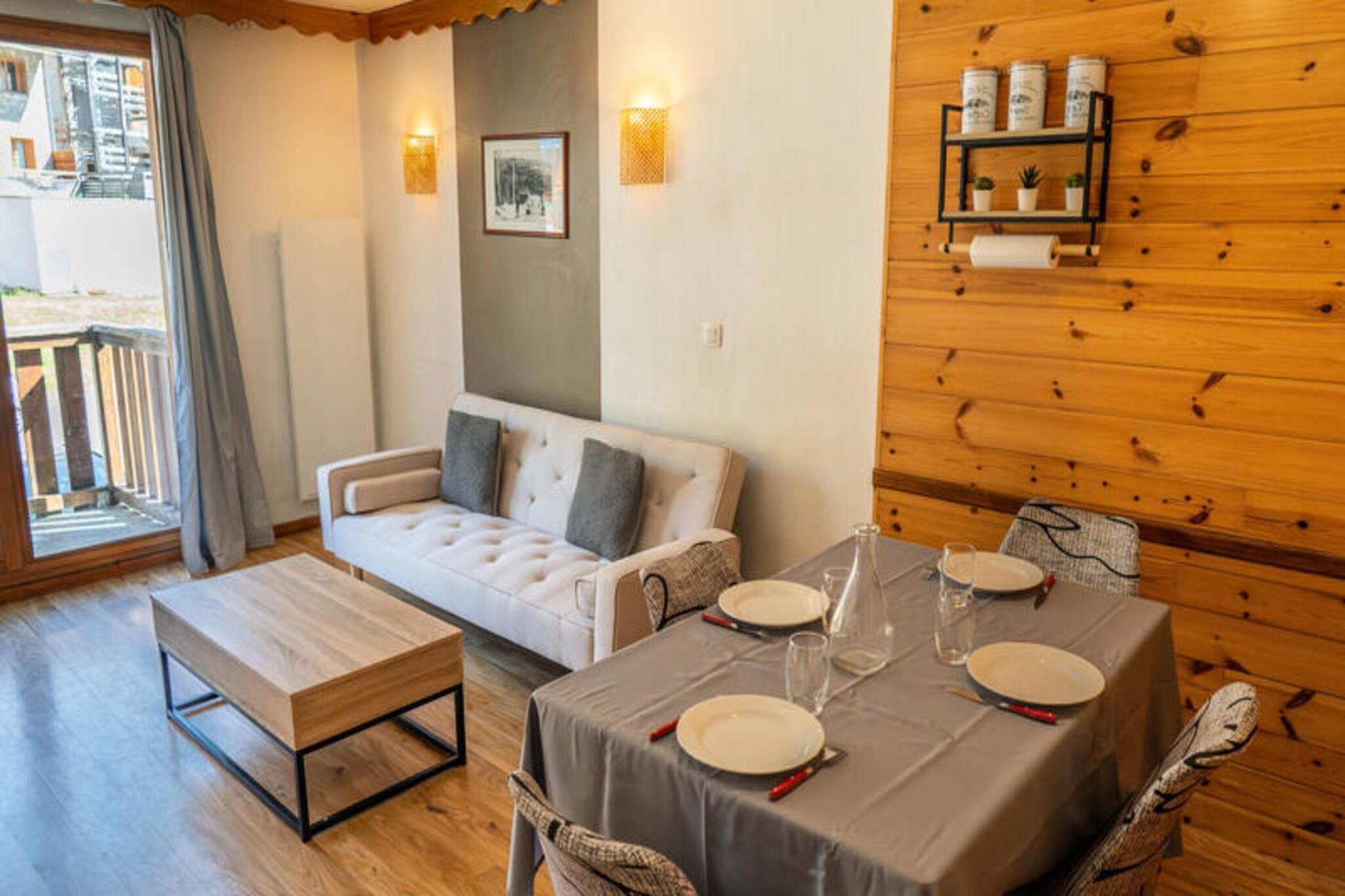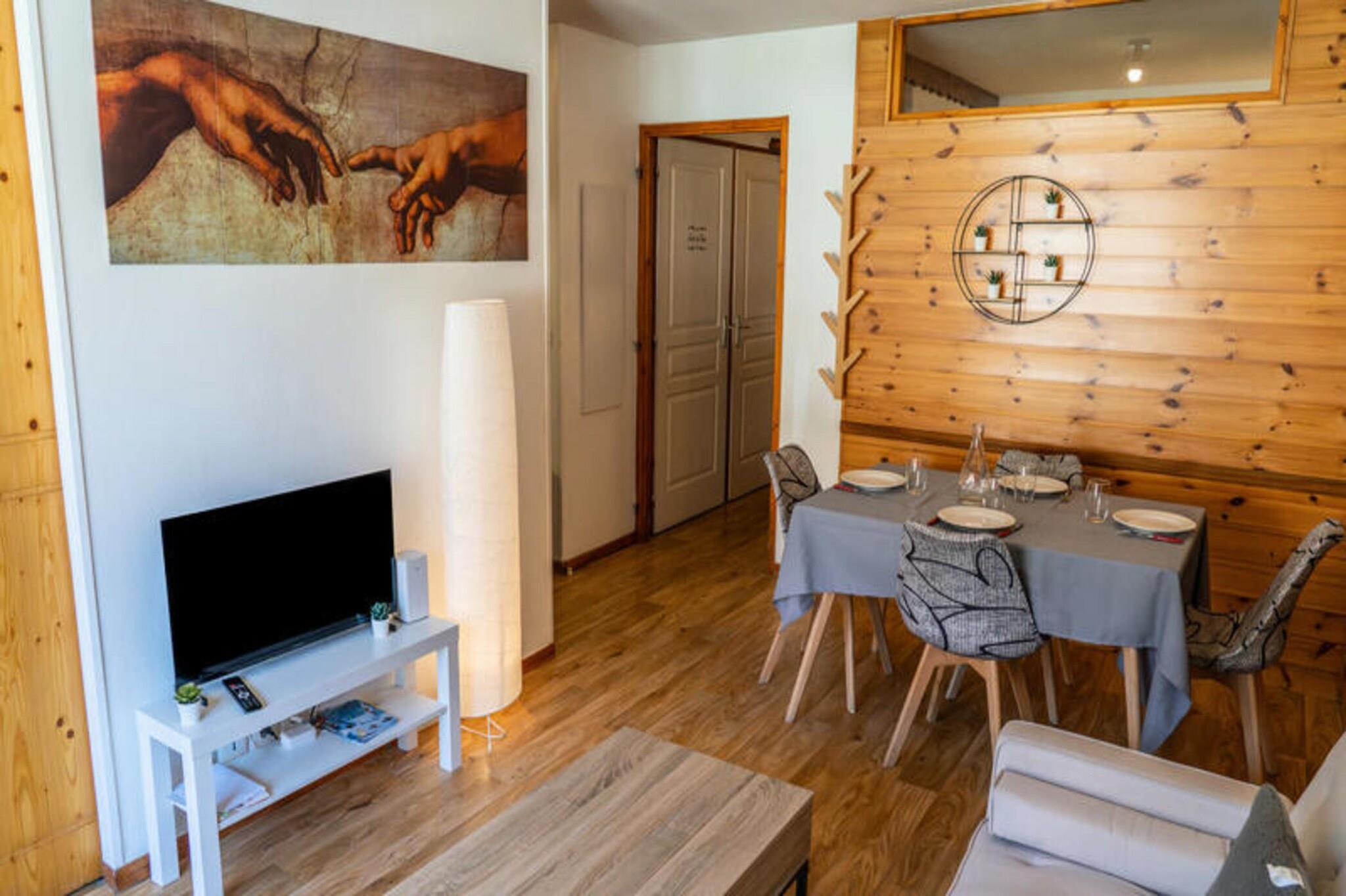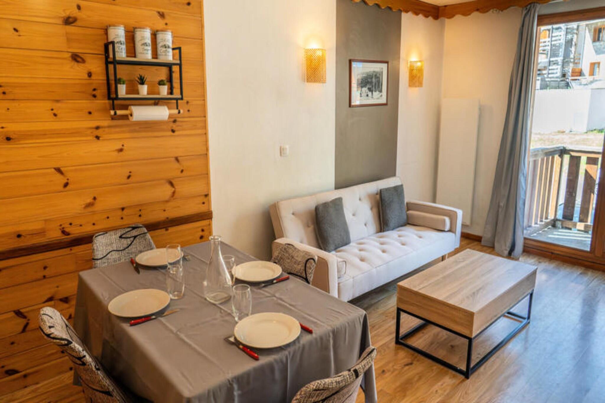 Boligen Hauts de Préclaux, der ligger i en højde af 1.800 meter i hjertet af Bois-Méan, tilbyder en række forskellige overnatningssteder, herunder en lejlighed på 35 m², der komfortabelt kan rumme op til 4 personer. Denne lejlighed har et veludstyret køkken med køleskab, ovn, opvaskemaskine, komfur, mikroovn og væsentligt køkkenudstyr. I stuen er der et spisebord til 4, et hyggeligt opholdsområde med sofa og fjernsyn samt en privat balkon eller terrasse. Sovearrangementer omfatter et soveværelse med dobbeltseng (140 x 190 cm) og et soveværelse med to enkeltkøjesenge (90 x 190 cm). Badeværelset har et badekar, ideelt til at slappe af efter en dag med skiløb eller udendørs aktiviteter. Gæsterne kan også nyde en underjordisk parkeringsplads, og kæledyr er tilladt mod et ekstra gebyr. Beliggende i det pulserende centrum af Les Orres 1800, tilbyder boligen nem adgang til alle nødvendige faciliteter, herunder restauranter, et supermarked, bageri og skiudlejningsbutikker. Snefronten og skiløjperne ligger kun få meter fra bygningen, hvilket giver gæsterne mulighed for nemt at stå på ski ind og ud. Dens førsteklasses beliggenhed sikrer, at gæsterne fuldt ud kan nyde feriestedets livlige atmosfære, mens de forbliver tæt på alle vigtige tjenester. Det omkringliggende område er perfekt for både vintersportsentusiaster og dem, der søger et afslappende bjergretræte. Boligen tilbyder også en række yderligere faciliteter, såsom en opvarmet udendørs swimmingpool og saunahytter, som begge er åbne i højsæsonen sommer og vinter.