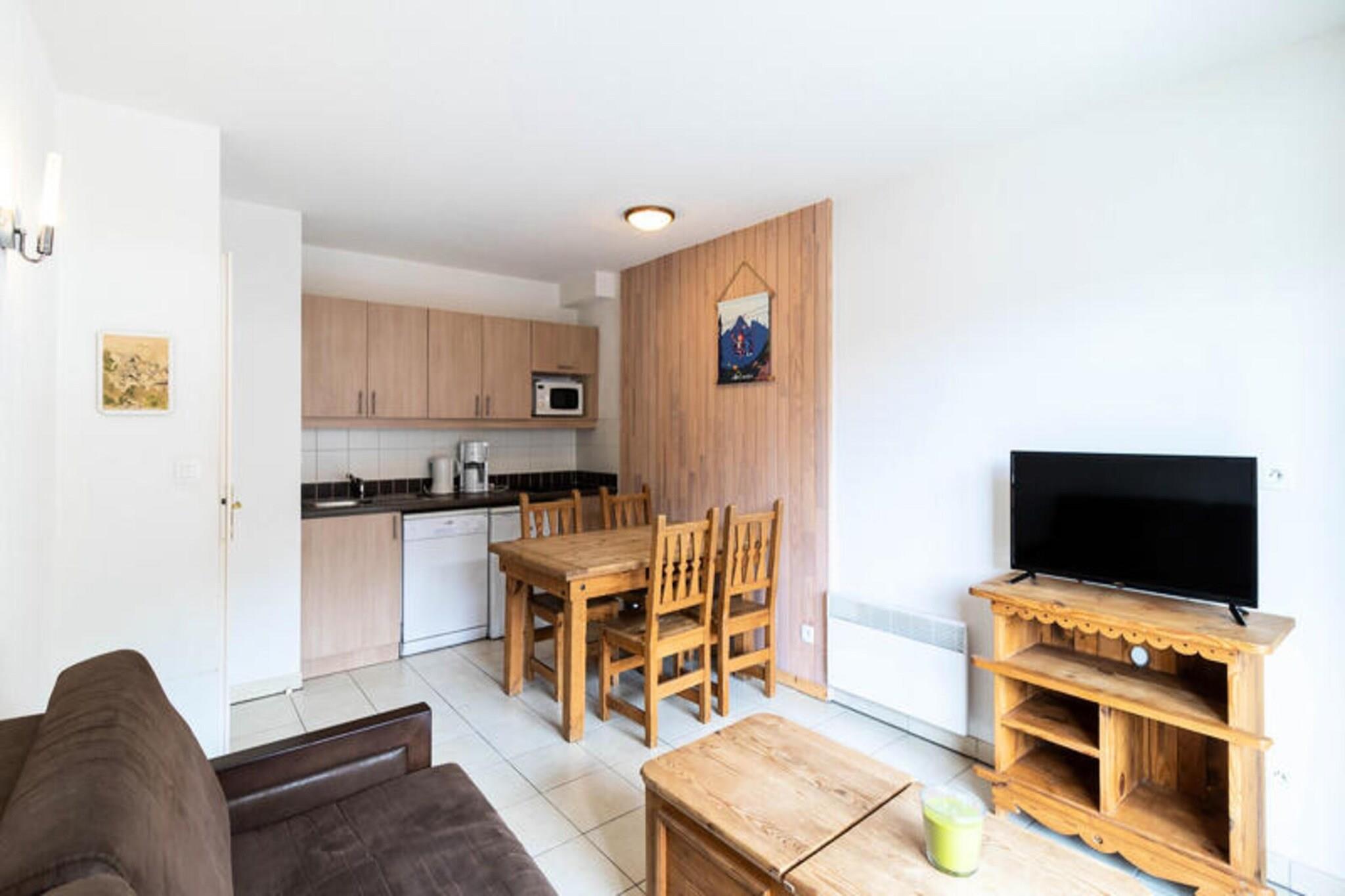 Denne 33 m² store, nordvendte lejlighed er designet til et fredeligt ophold, lidt tilbagetrukket fra feriestedets centrale plads. Det har en indgang med opbevaring, en hyggelig stue med en sovesofa, en spiseplads med et fuldt udstyret køkken og et separat soveværelse med en dobbeltseng. Lejligheden kan komfortabelt rumme op til fire personer. Et badeværelse med badekar og balkon tilføjer lejlighedens tiltrækningskraft og tilbyder et perfekt sted at nyde morgenmaden eller slappe af. Beliggende i 1800 meters højde tilbyder Le Balcon des Airelles en charmerende træ- og stenbolig med en fantastisk udsigt over dalen, lærkeskove og de omkringliggende bjerge. Beliggende i hjertet af feriestedet Orres 1800, er det perfekt placeret overfor turistkontoret, med ESF- og ESI-kontorerne i nærheden og skiløjperne kun få skridt væk. Vandrestier er også let tilgængelige, og en daginstitution er kun en kort gåtur for familier, der rejser med små børn. Gæsterne kan drage fordel af boligens smukke opvarmede indendørs swimmingpool, der er åben i vinter- og sommersæsonen. Boligen tilbyder også underjordisk parkering for ekstra bekvemmelighed. Inden for gåafstand finder du butikker, restauranter, snackbarer og nem adgang til både skiløjper om vinteren og mountainbike- og vandrestier om sommeren, hvilket gør det til en ideel destination året rundt.