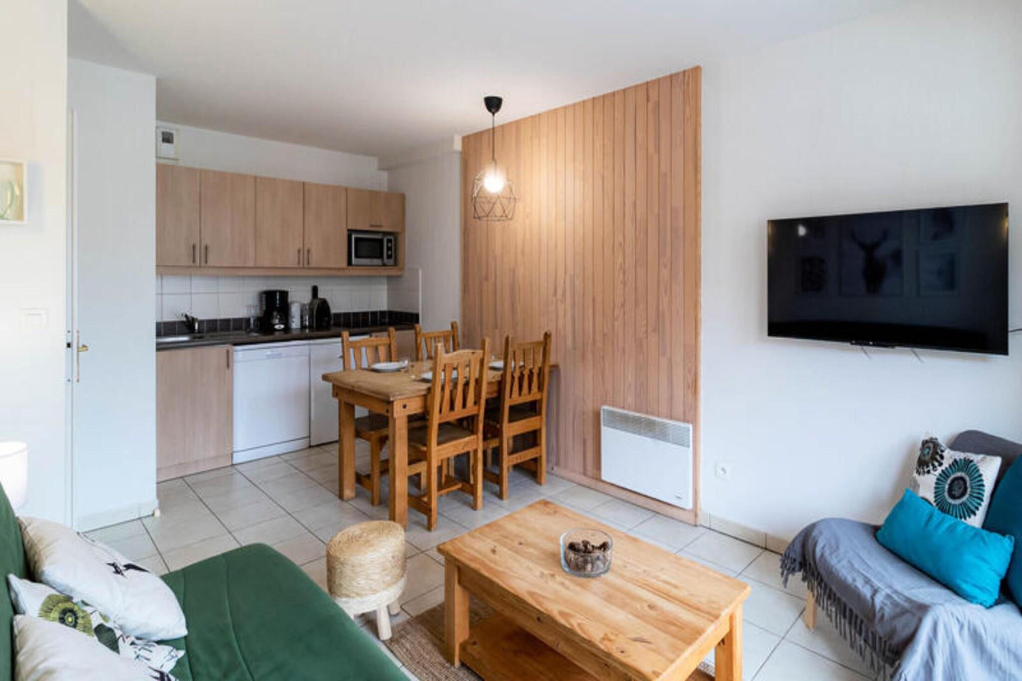 Ejendommen tilbyder sammen med dets charmerende og moderne design en komfortabel lejlighed på 33 m², der kan rumme op til 4 gæster. I stuen er der en 140x190 cm sovesofa, og det separate soveværelse er indrettet med en 140x190 cm dobbeltseng. En nordøstvendt altan giver smuk udsigt over pisterne og den omkringliggende skov, komplet med havemøbler, så gæsterne kan nyde det naturskønne landskab. Lejligheden er udstyret med væsentlige faciliteter såsom et stort fjernsyn, kaffemaskine, elkedel og en opvaskemaskine. Boligen giver også adgang til en opvarmet indendørs swimmingpool i sæsonperioderne, hvilket sikrer afslapning for både skiløbere og ikke-skiløbere. Kæledyr er ikke nævnt, og yderligere tjenester såsom underjordiske parkeringspladser er tilgængelige for udlejning, hvis det kræves. Boligen er ideelt beliggende i hjertet af Orres 1800 resort, lige overfor turistkontoret og i gåafstand fra ESF og ESI skiskoler. Skilifte og vandrestier er kun få skridt væk, hvilket gør det nemt at få adgang til udendørsaktiviteter. For småbørnsfamilier ligger daginstitutionen i kort afstand fra ejendommen. Lejligheden tilbyder også bekvem nærhed til lokale butikker, herunder et minimarked, møntvaskeri og regionale produktbutikker, alt sammen inden for 100 meter. Gæsterne kan nemt udforske resortets tilbud, med både ski- og mountainbikebakker kun få øjeblikke fra deres dørtrin. Lejligheden har et fuldt udstyret køkken, komplet med køkkenredskaber, en opvaskemaskine, kaffemaskine og kedel for at sikre, at gæsterne nemt kan tilberede deres egne måltider. Badeværelset, der er udstyret med et badekar, tilbyder et afslappende sted at slappe af efter en dag med udendørs aktiviteter. Ejendommen har også praktisk opbevaringsplads til gæsternes ejendele, hvilket gør den ideel til dem, der planlægger længere ophold eller medbringer sportsudstyr. Med opvarmning og moderne bekvemmeligheder tilbyder denne lejlighed et hyggeligt og funktionelt tilflugtssted i hjertet af feriestedet Orres.