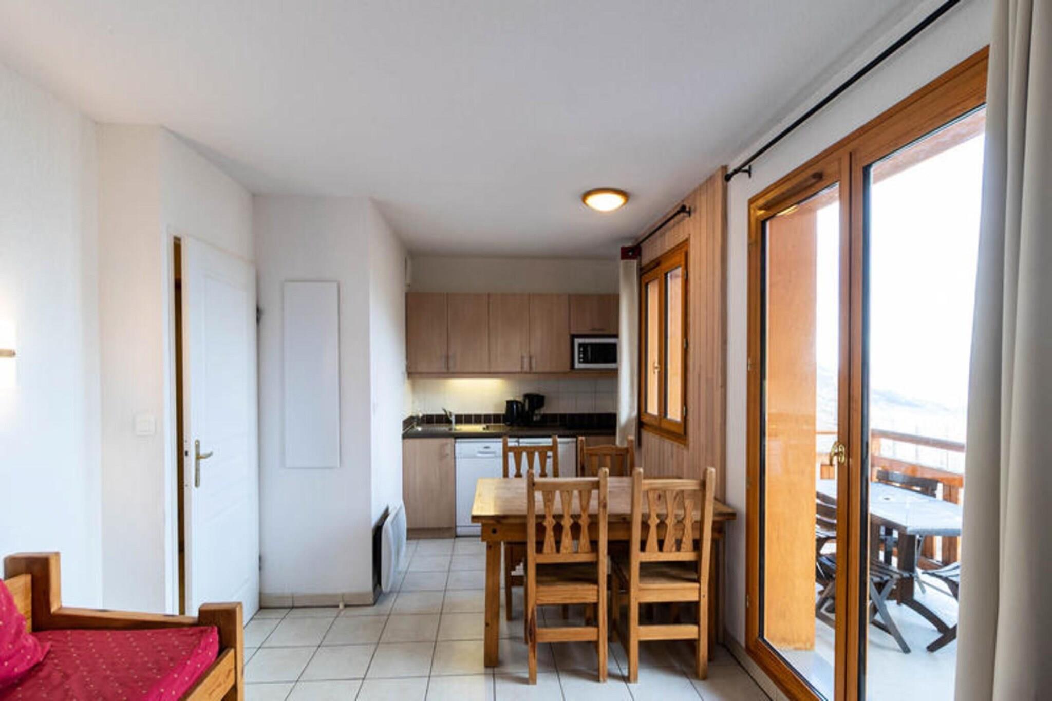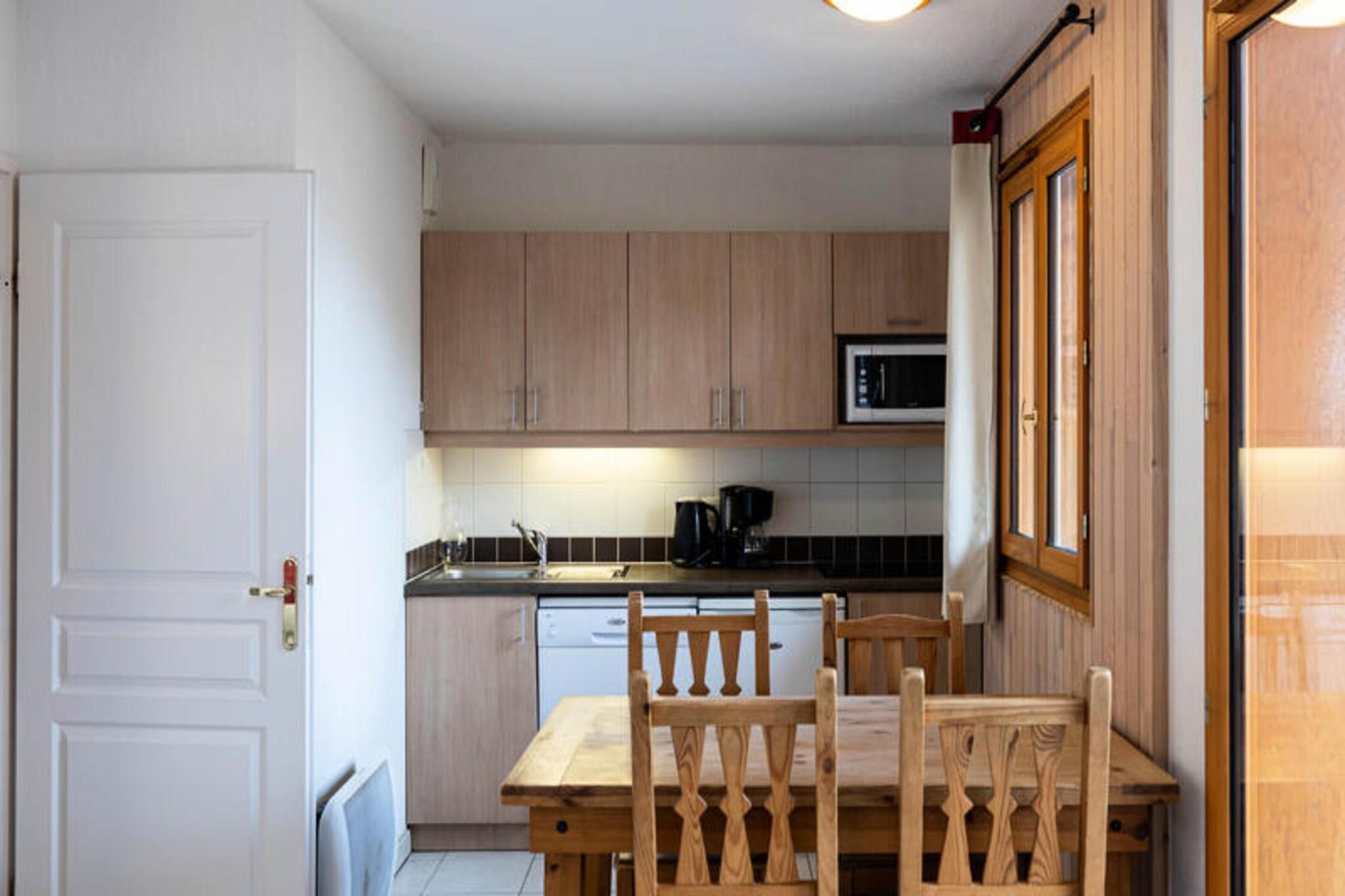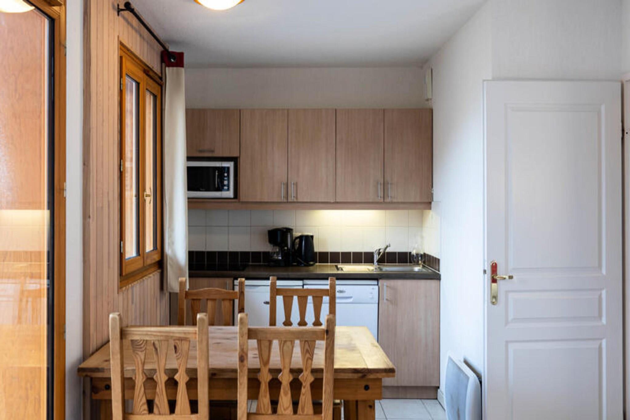 Le Balcon des Airelles er en charmerende træ- og stenbolig beliggende i en højde af 1800 meter og tilbyder en fantastisk udsigt over dalen, lærkeskoven og de omkringliggende bjerge. Boligen byder på moderne og komfortabel indkvartering, der kan rumme 4 til 10 personer, alle udstyret med en balkon med udsigt over det betagende landskab. Hver lejlighed har et opholdsområde med en sovesofa, et fuldt udstyret køkken, et badeværelse med badekar og opbevaring for din bekvemmelighed. For dem, der søger ekstra komfort, er underjordiske parkeringspladser tilgængelige til leje, og der er en privat skiboks til skiudstyr. Kæledyr er ikke angivet som tilladte. Beliggende i hjertet af feriestedet Orres 1800, er boligen bekvemt overfor turistkontoret, med ESF- og ESI-kontorerne i nærheden, hvilket gør det ideelt for familier og skiløbere. Resortets skråninger og vandrestier er kun en kort gåtur væk, hvilket sikrer nem adgang til udendørs aktiviteter. Daginstitutionen, også i gåafstand, er perfekt til familier med små børn. Med en rolig beliggenhed lidt tilbagetrukket fra shoppingpladsen kan gæsterne nyde et fredeligt tilflugtssted, mens de er tæt på feriestedets hjerte. Gæsterne kan slappe af i den smukke opvarmede indendørs swimmingpool, som er tilgængelig på sæsonen i både vinter- og sommermånederne. Boligen tilbyder alt det nødvendige for et behageligt ophold, herunder et fuldt udstyret køkken med essentielle apparater og et skiskab til din bekvemmelighed. Den naturskønne udsigt fra den vestvendte balkon gør det til et ideelt sted at nyde solnedgange, uanset om det er med familie eller venner.
